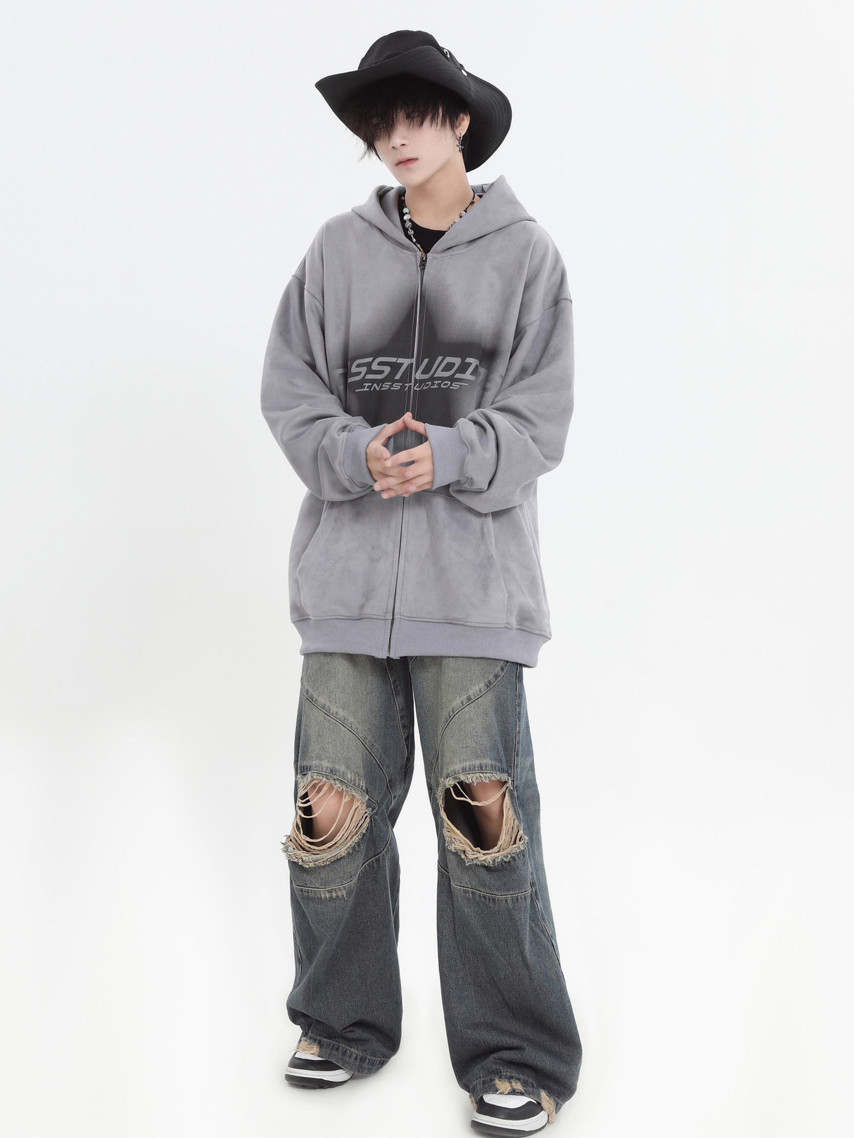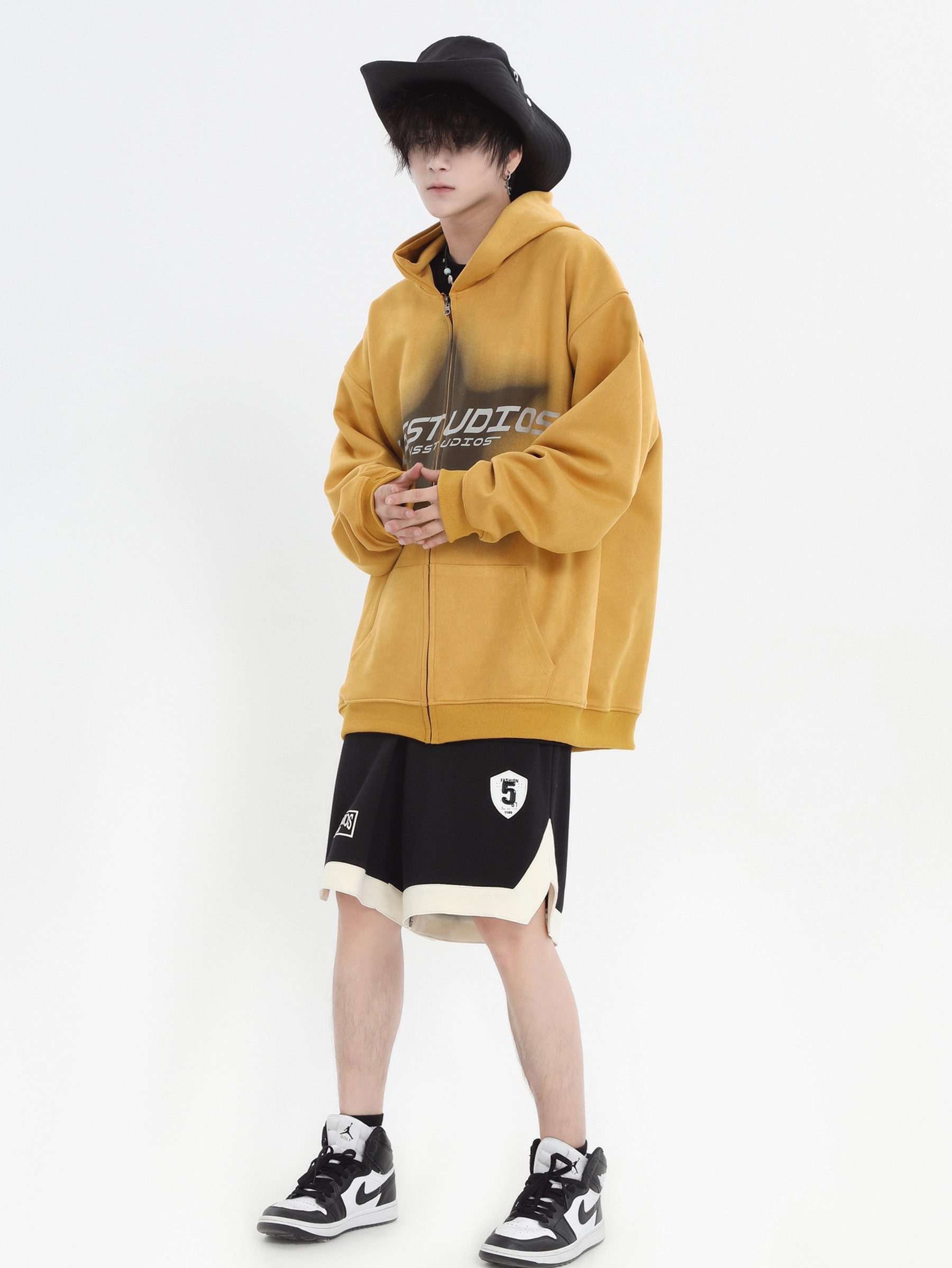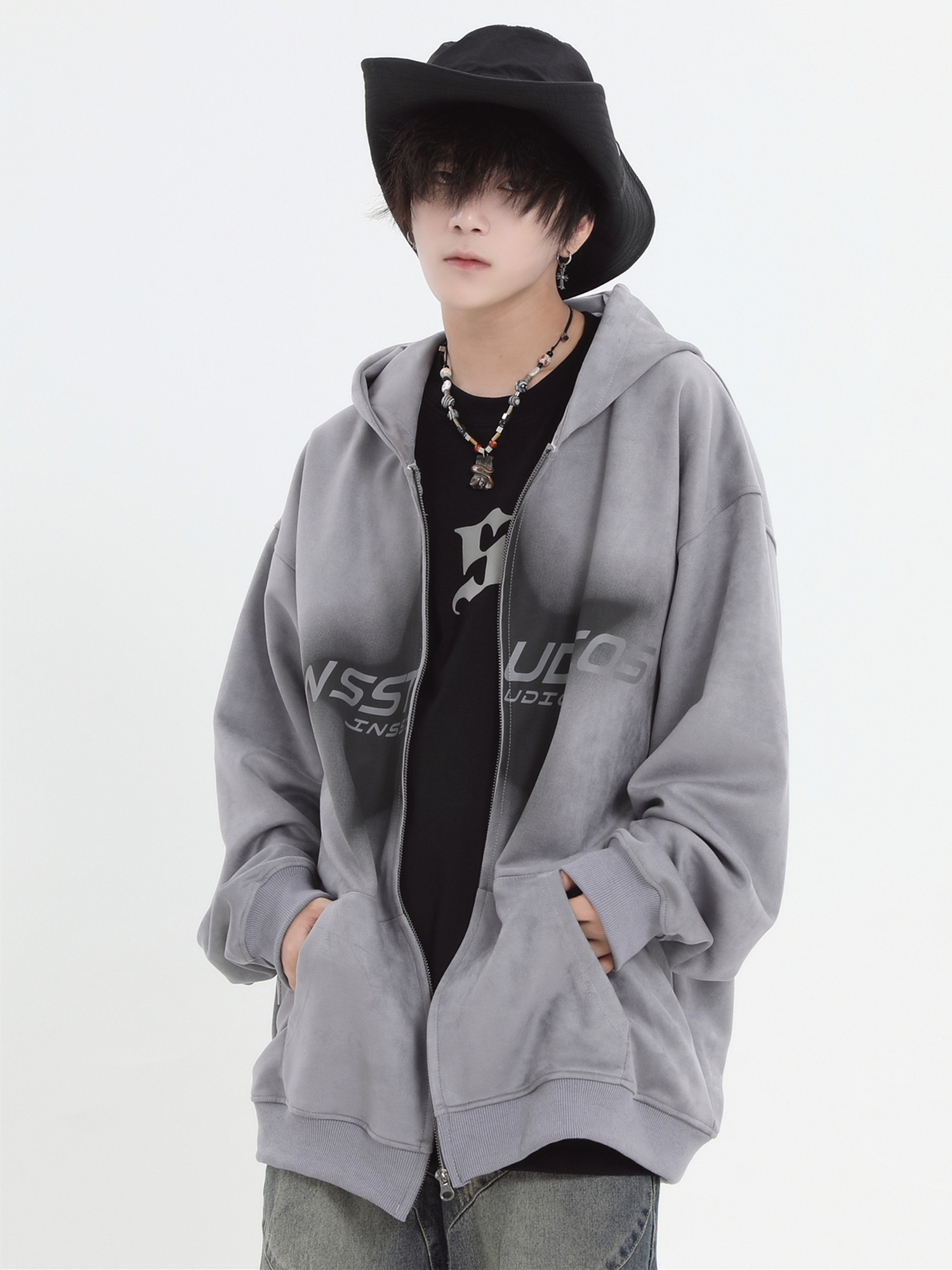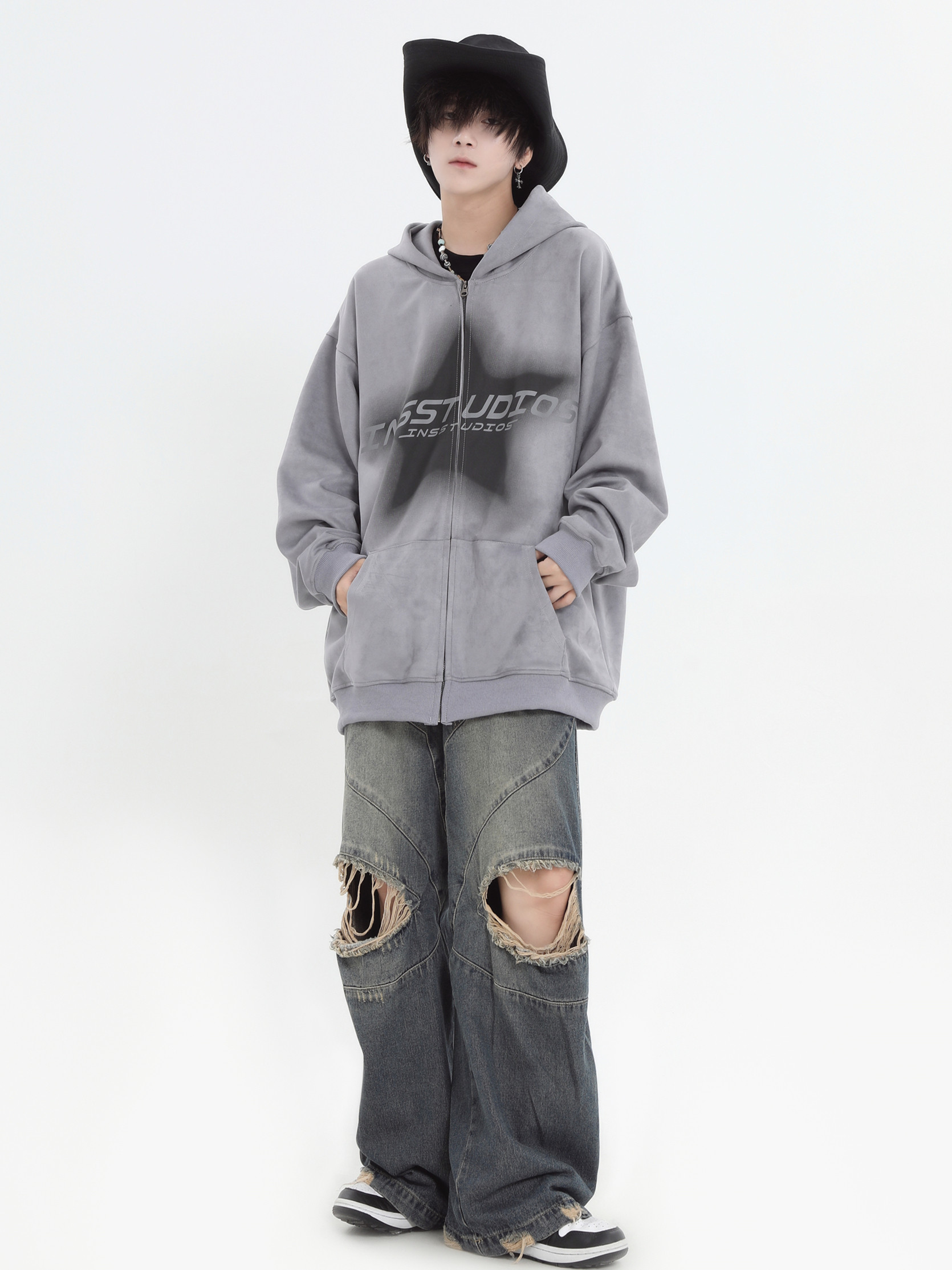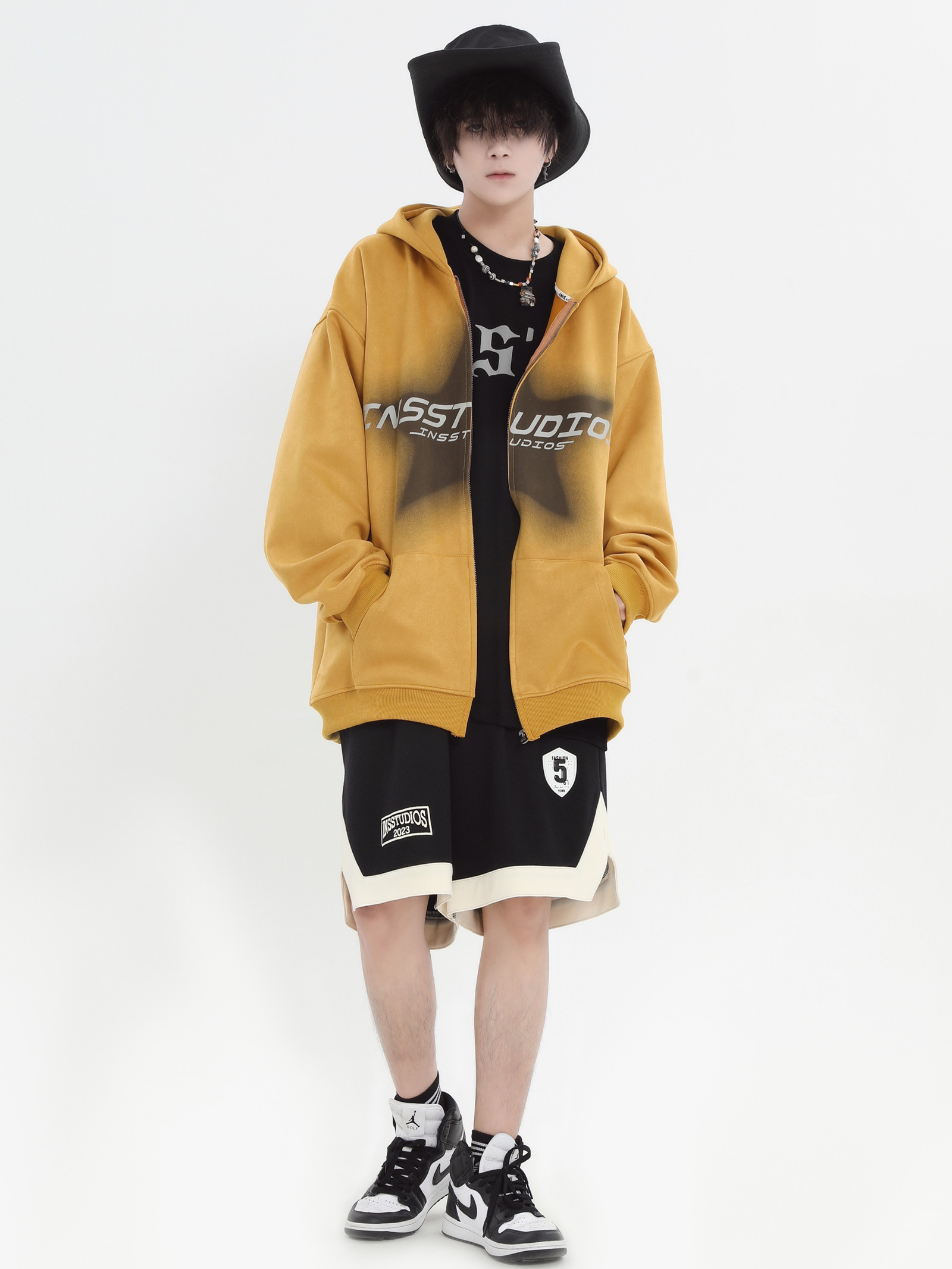 【INSKR】國潮牌情侶美式星星LOGO麂皮絨粉色衛衣拉鍊開衫外套男