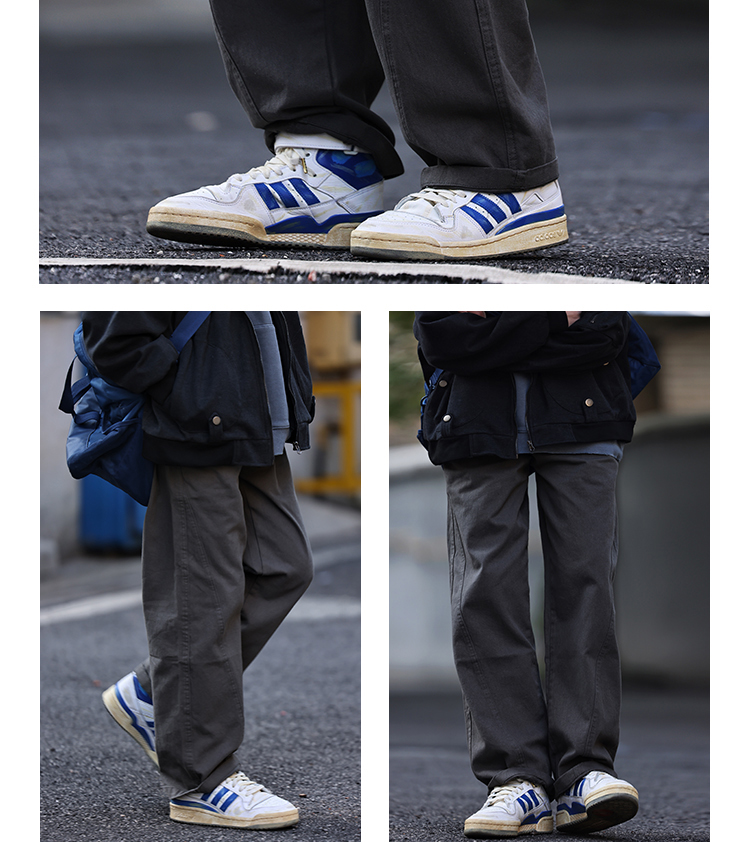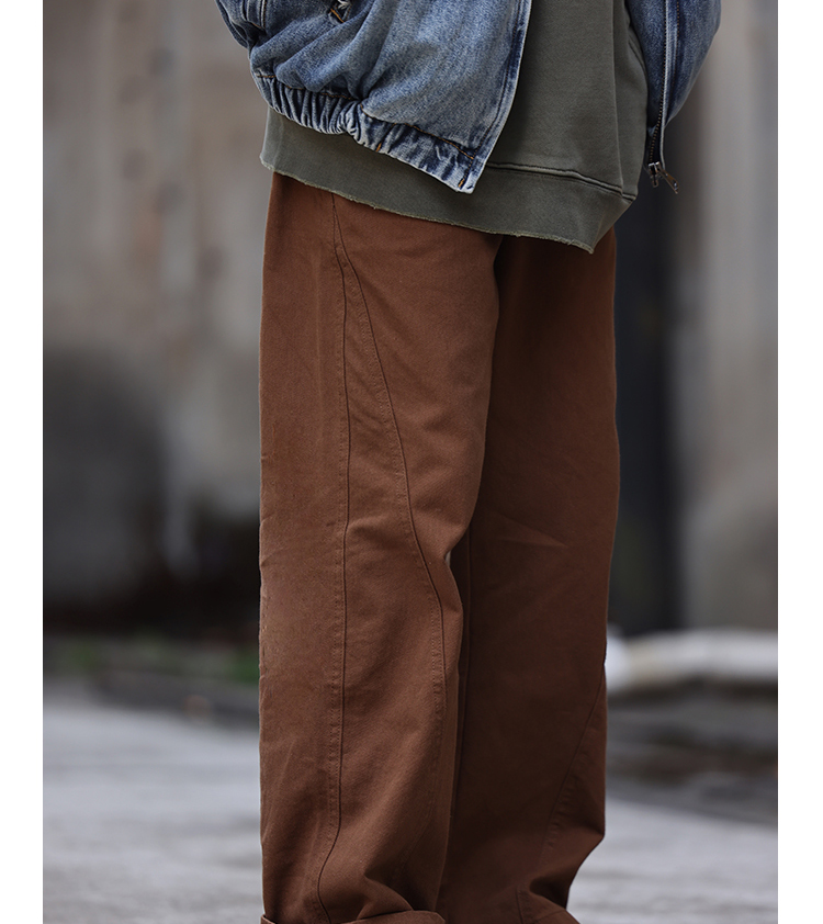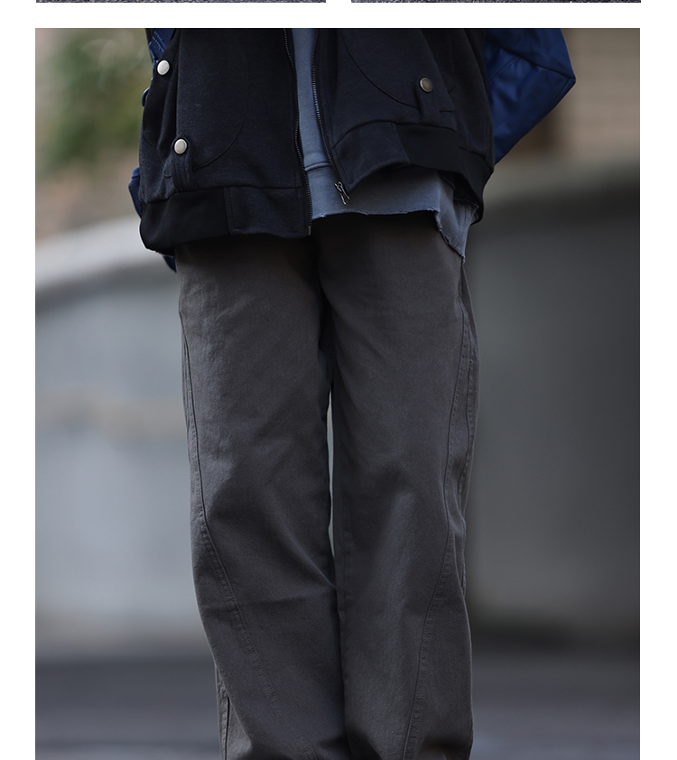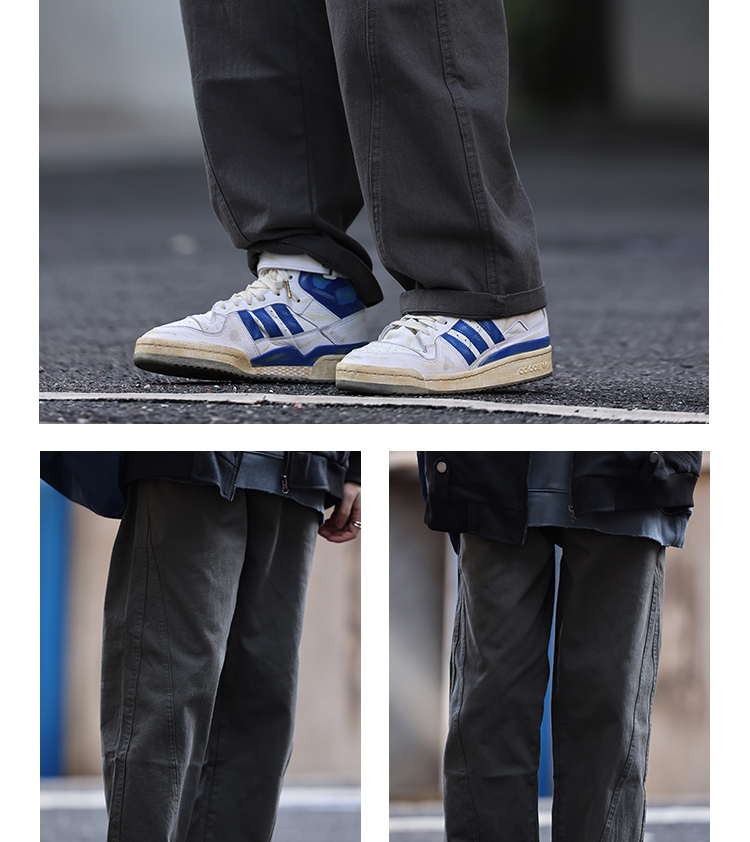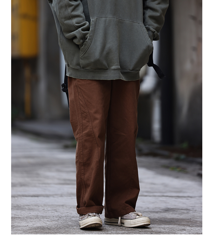 Nobodyknows美式復古純色立體裁剪工裝褲直筒休閒百搭男女潮長褲