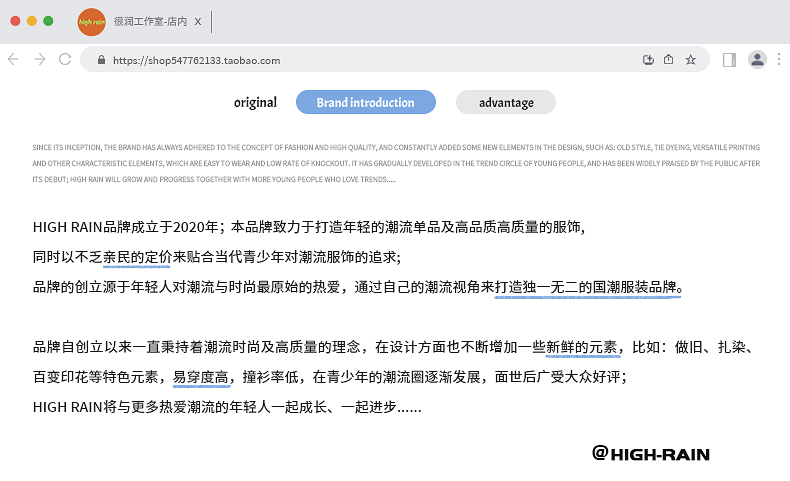 品牌 HIGH RAIN