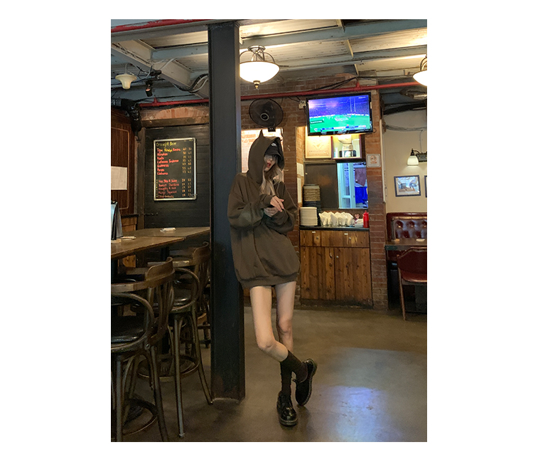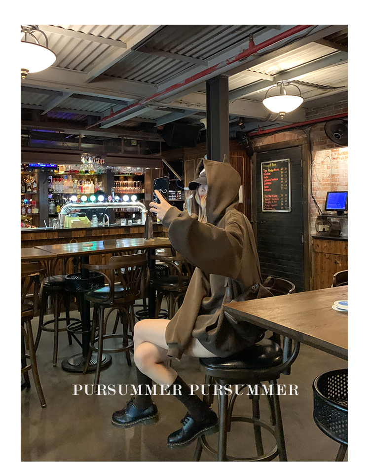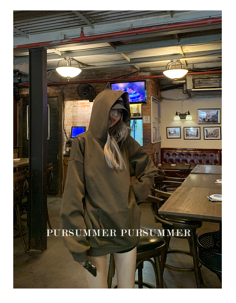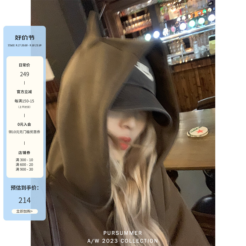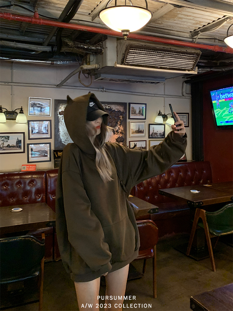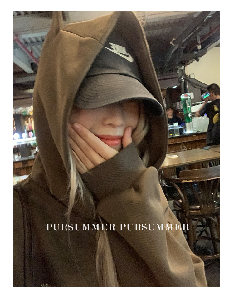 帽子区别于其他卫衣帽 帽顶上有两个猫耳朵