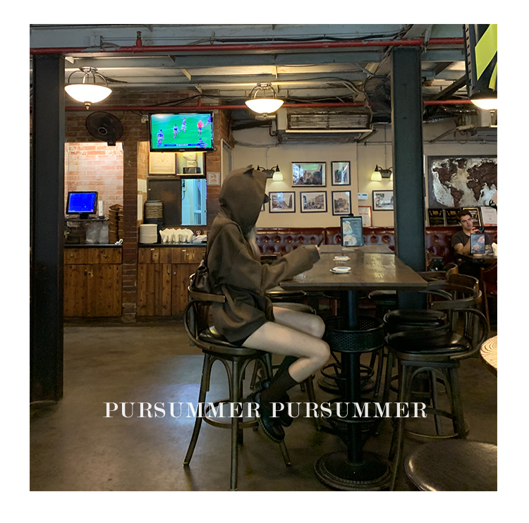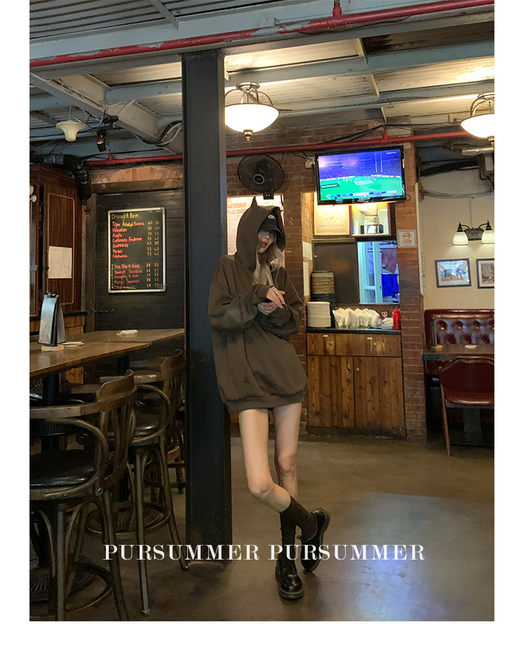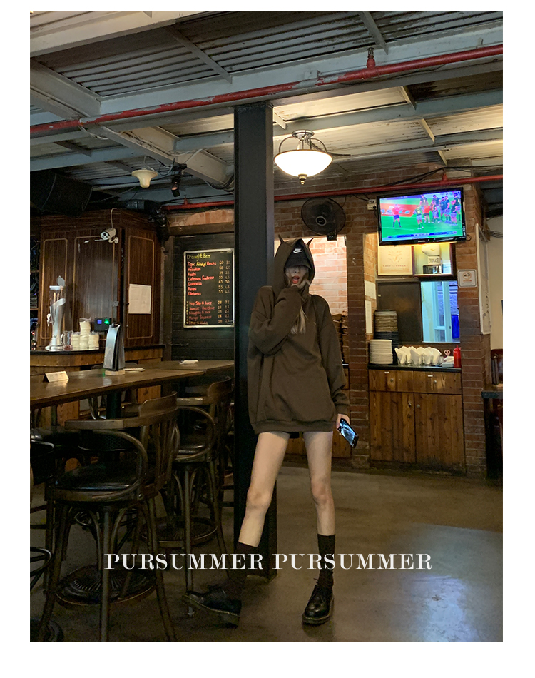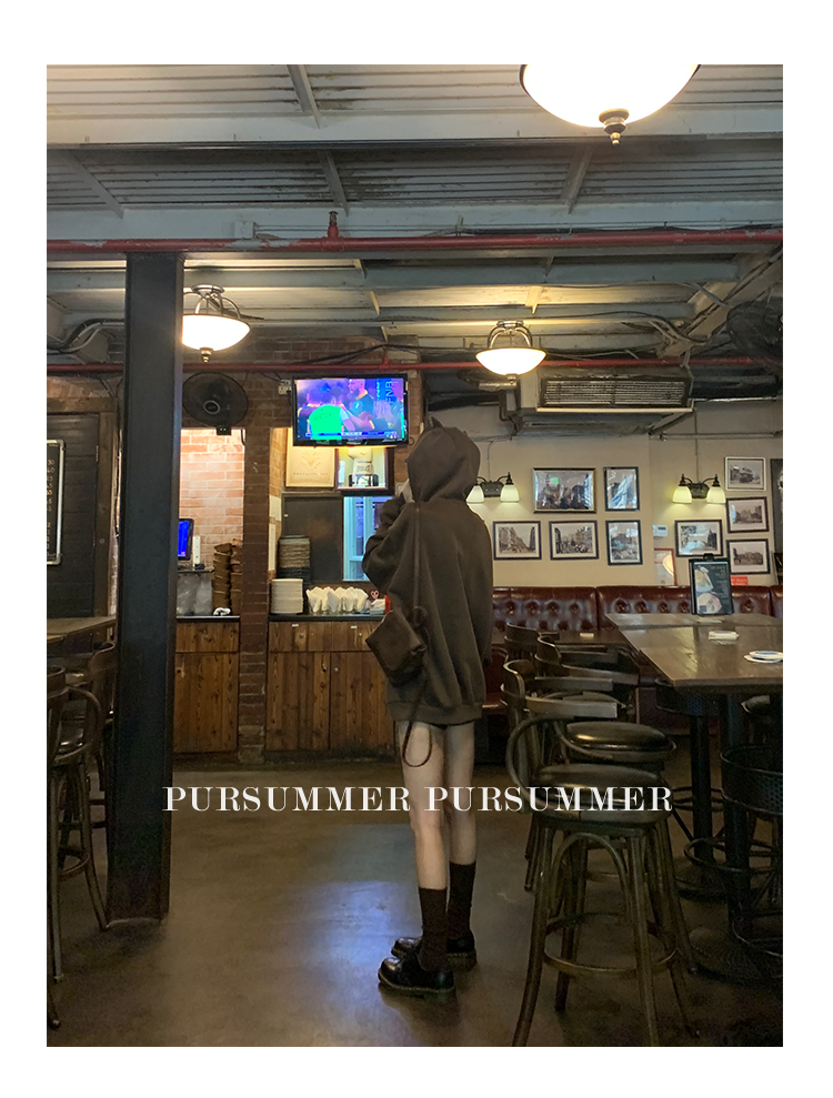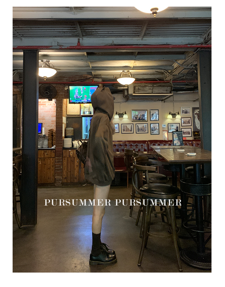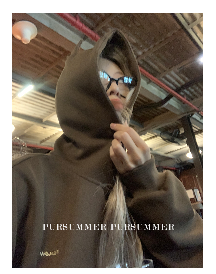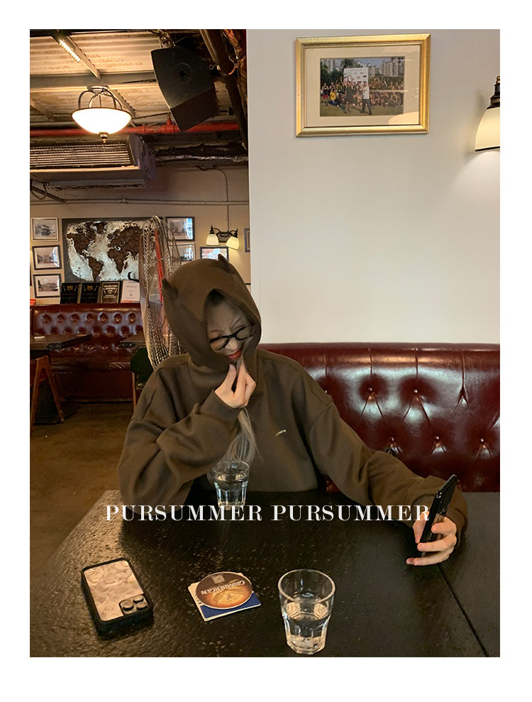 樸夏Pursummer 棕色小惡魔連帽繡花男女同款寬鬆衛衣