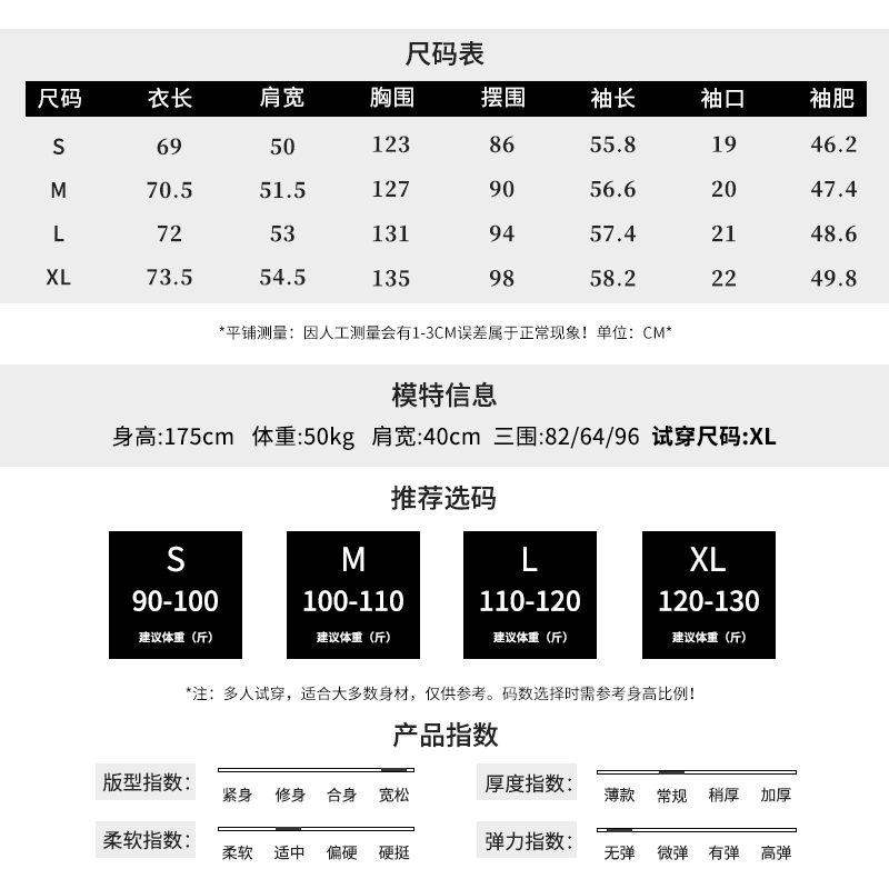 重磅面料 克重450G双面含棉材质 上身舒适亲肤 挺阔有型