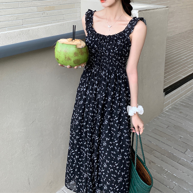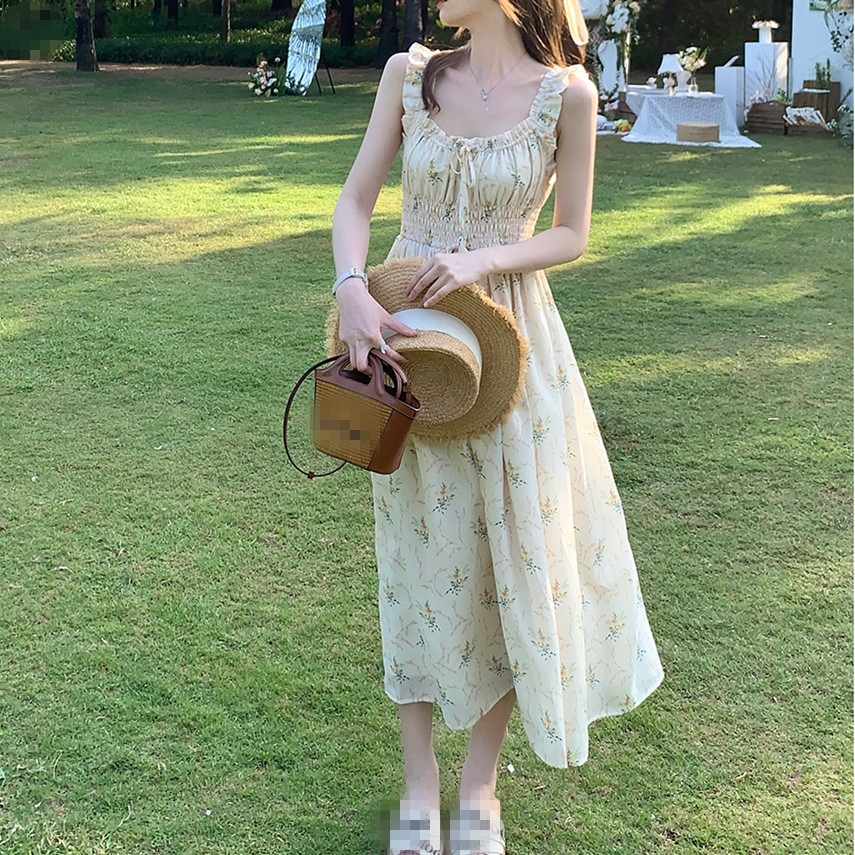 温柔风甜美连衣裙女2023故事里的小黄花/法式庄园千金碎花连衣裙