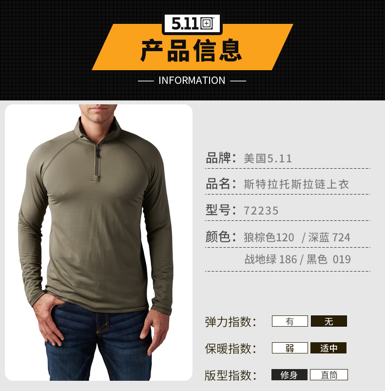 5.11斯特拉託斯1/4拉鍊衛衣511春秋戶外休閒保暖男【新品】72235