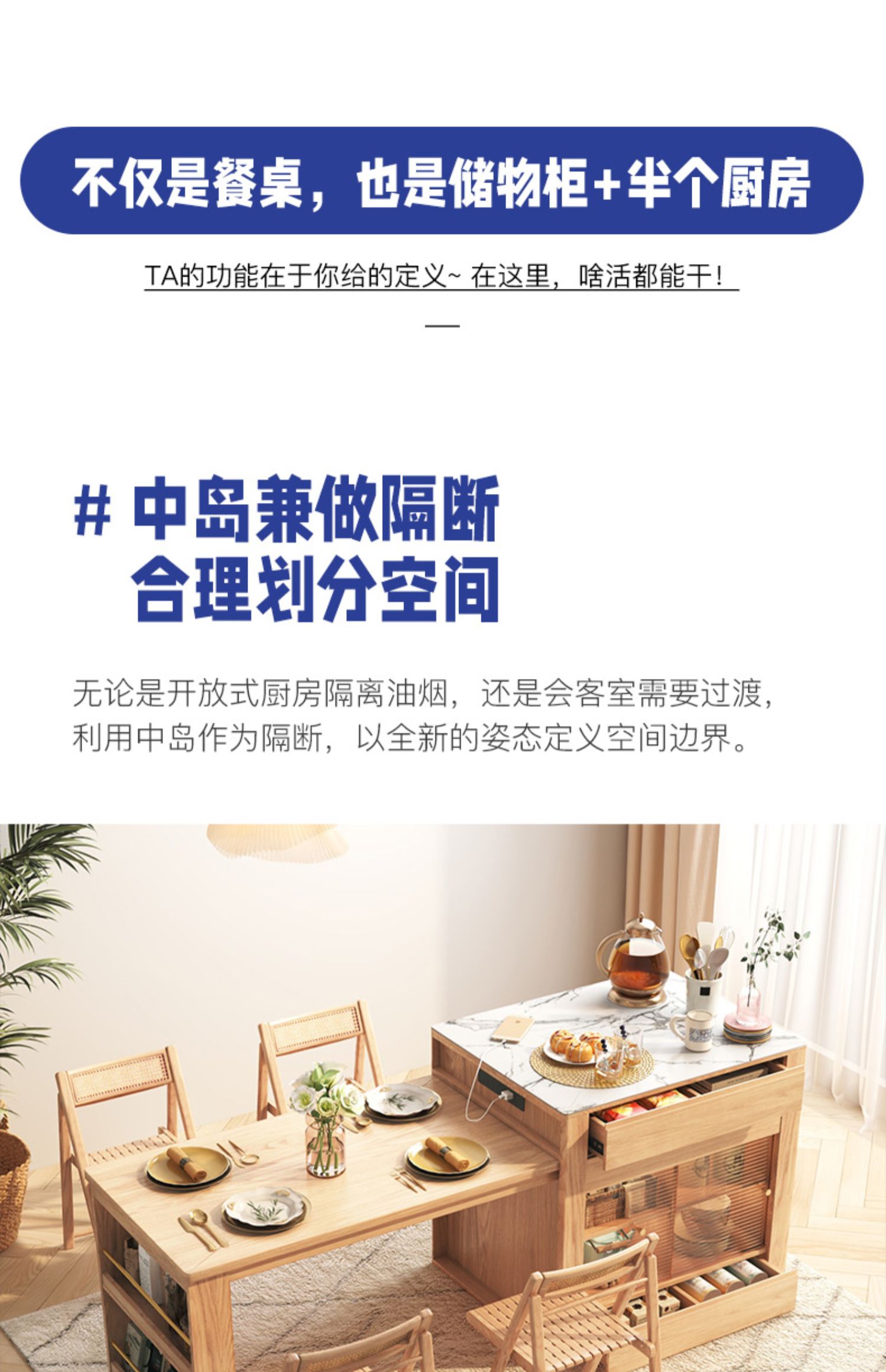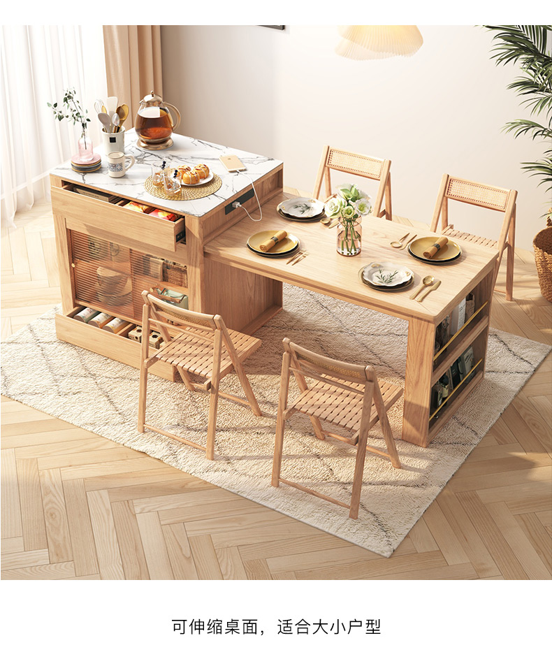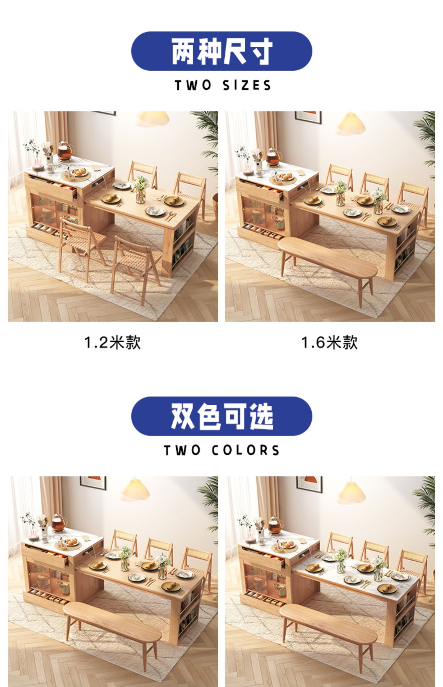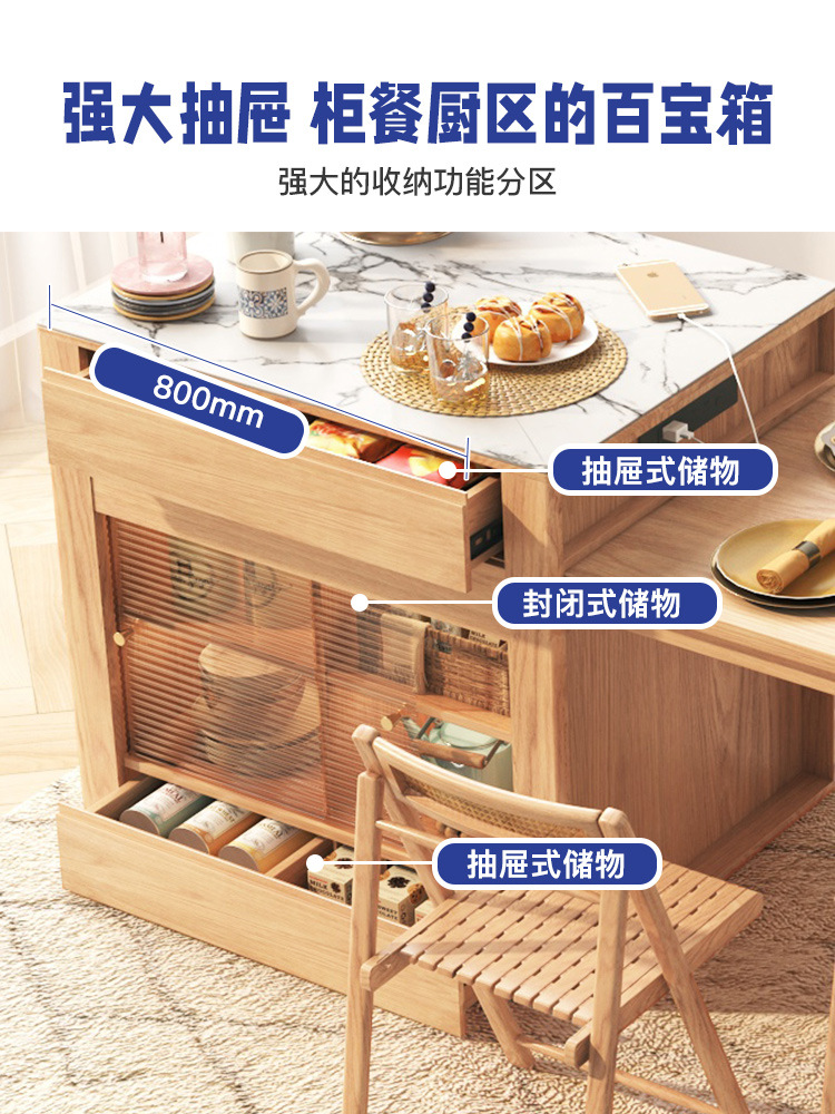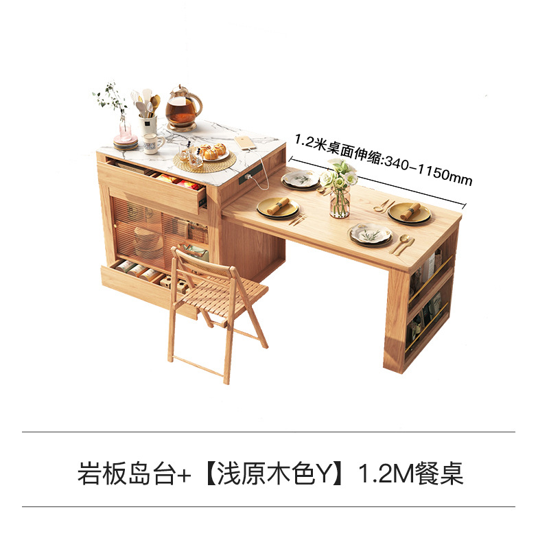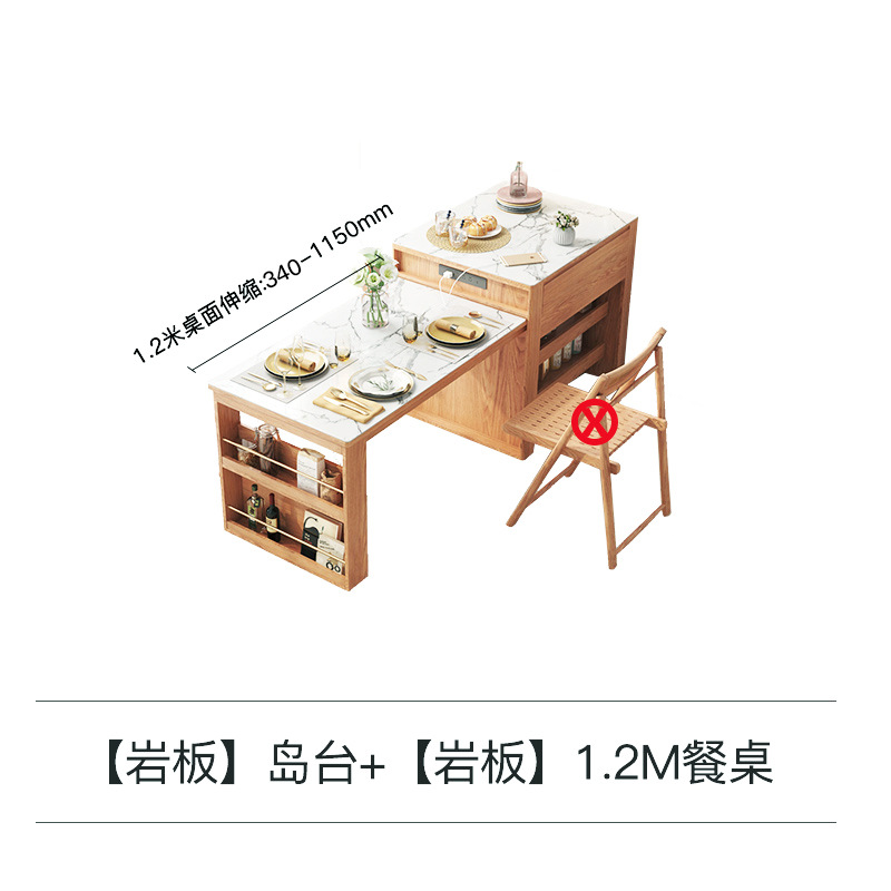 3TBW批发岛台餐桌一体抽拉可伸缩家用小户型现代简约岩板厨房吧台