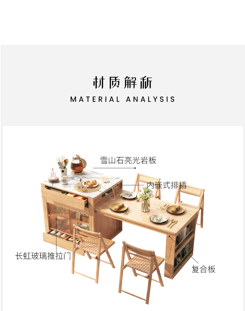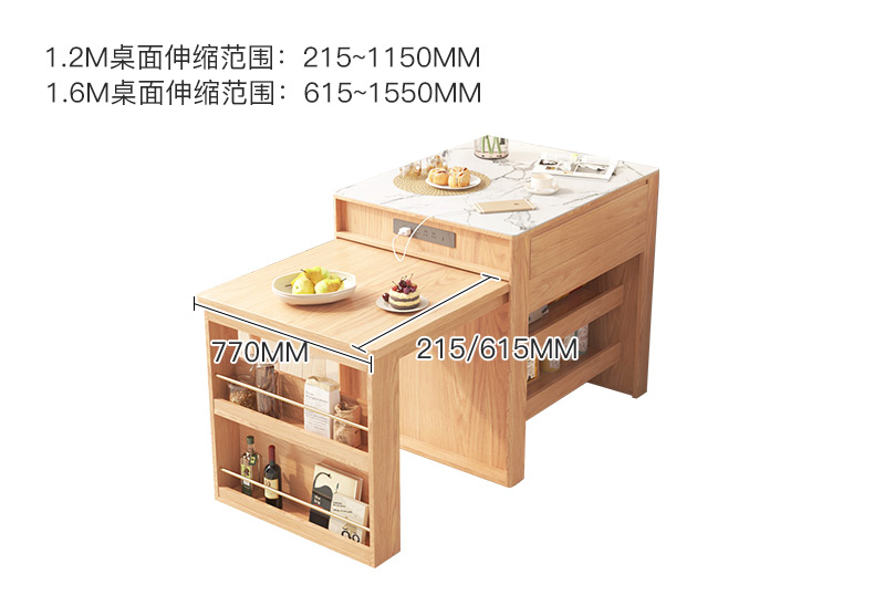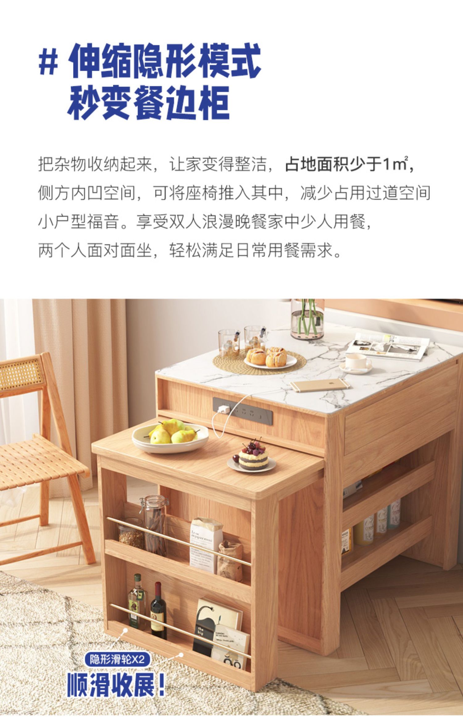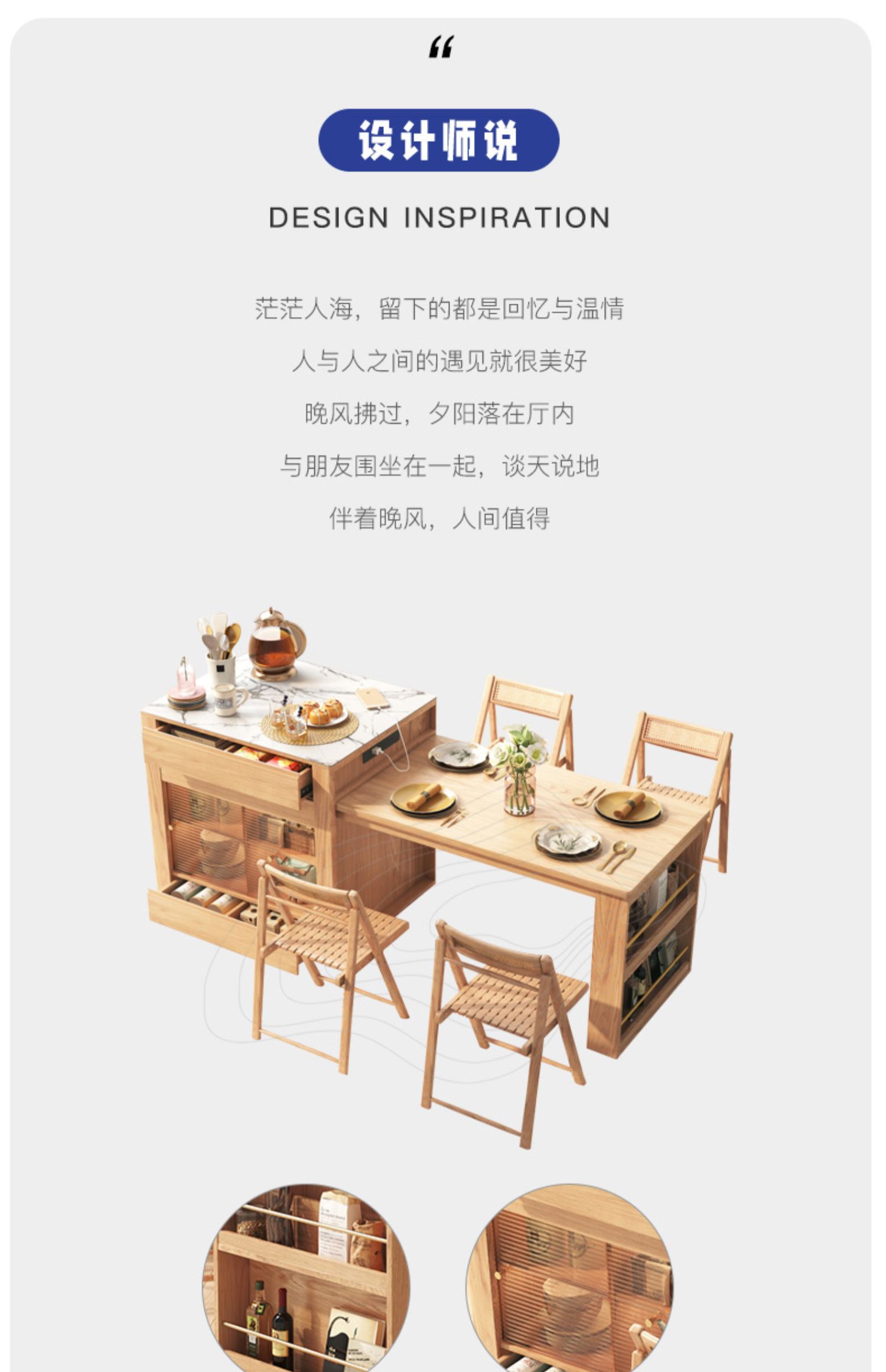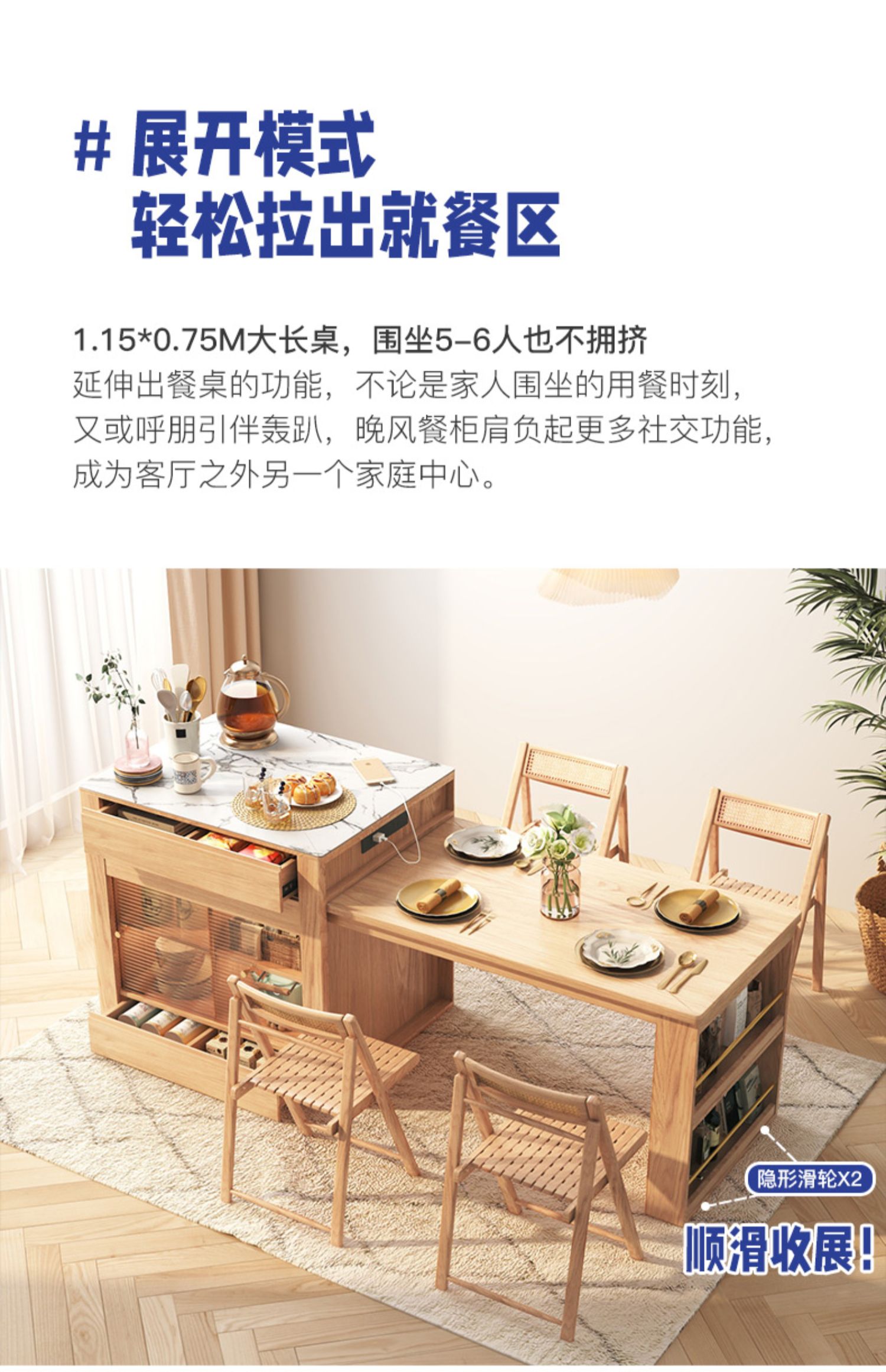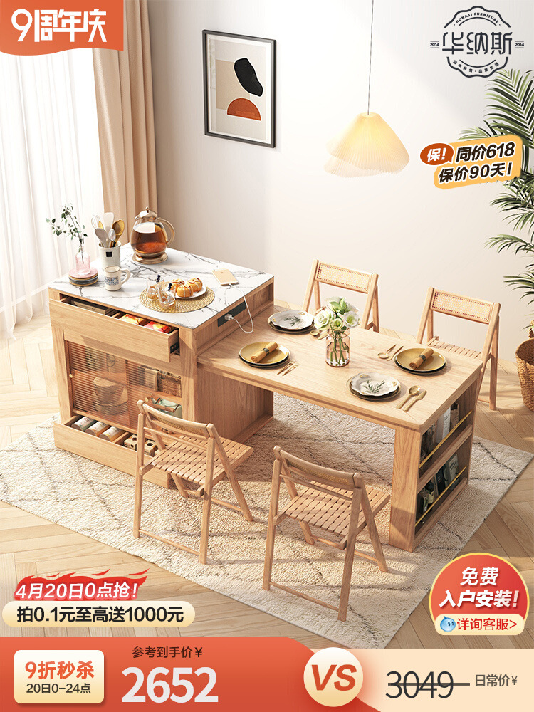 3TBW批发岛台餐桌一体抽拉可伸缩家用小户型现代简约岩板厨房吧台