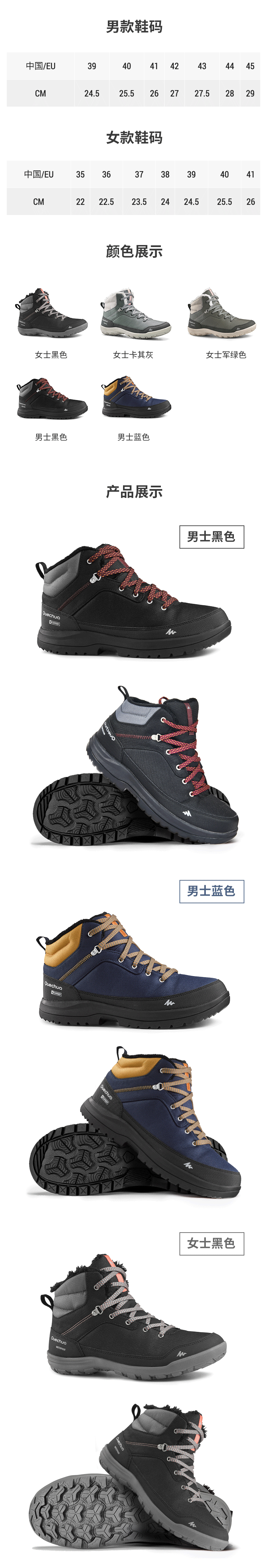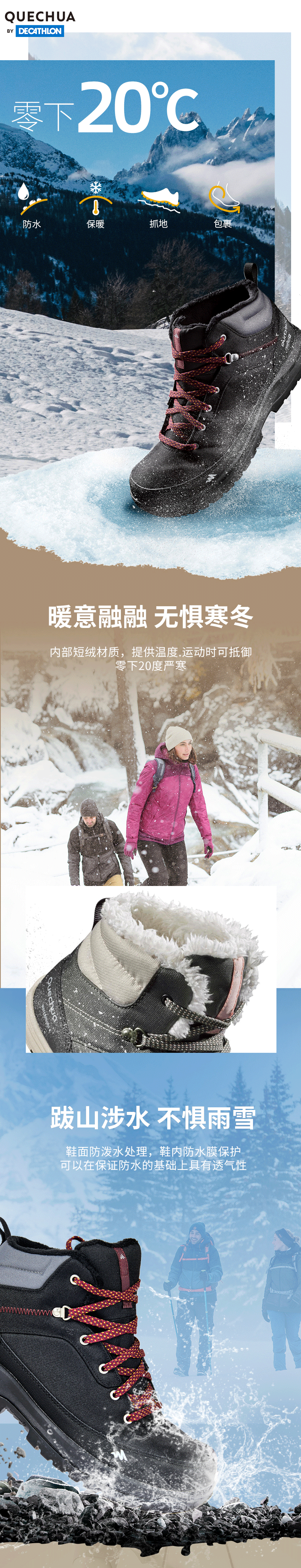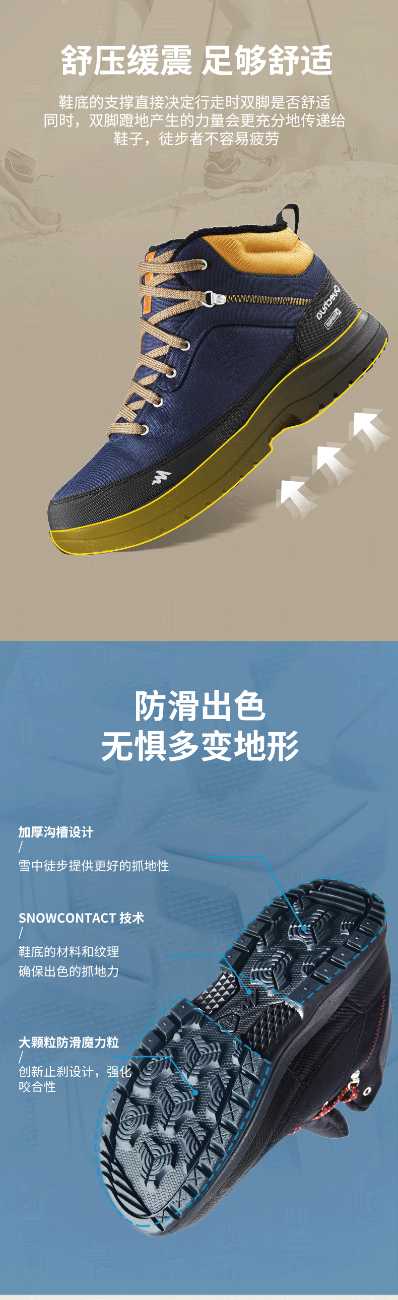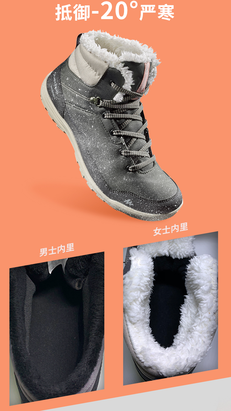 迪卡儂旗艦店官方登山鞋男戶外滑雪保暖棉鞋防水秋冬雪地靴女ODS
