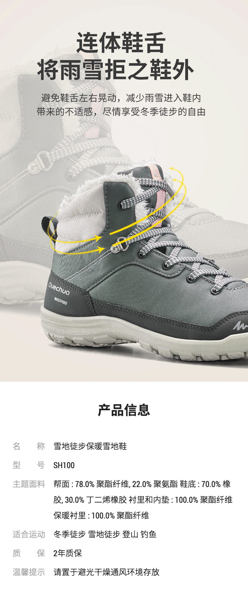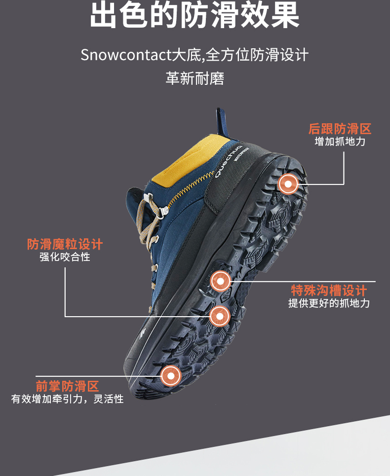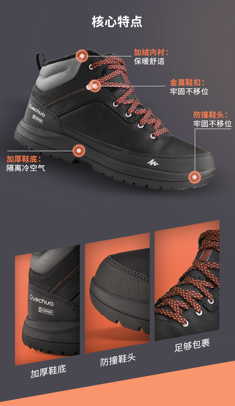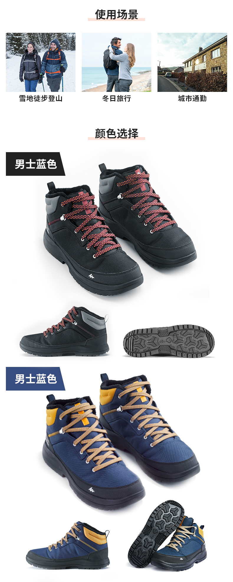 迪卡儂旗艦店官方登山鞋男戶外滑雪保暖棉鞋防水秋冬雪地靴女ODS