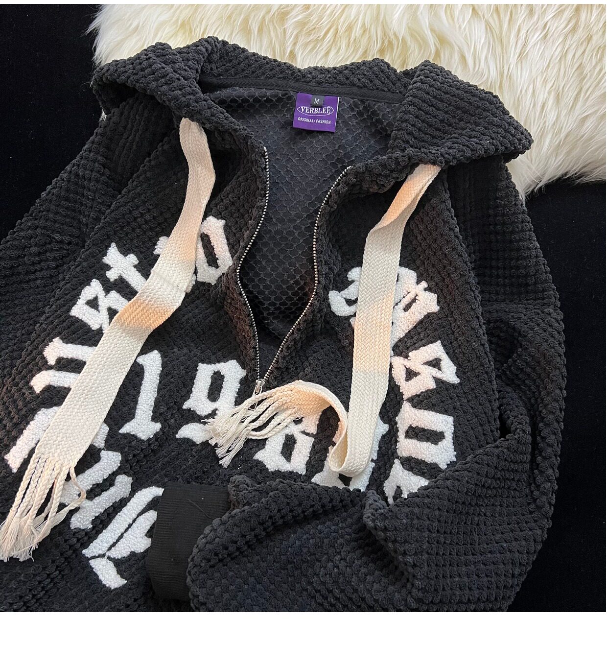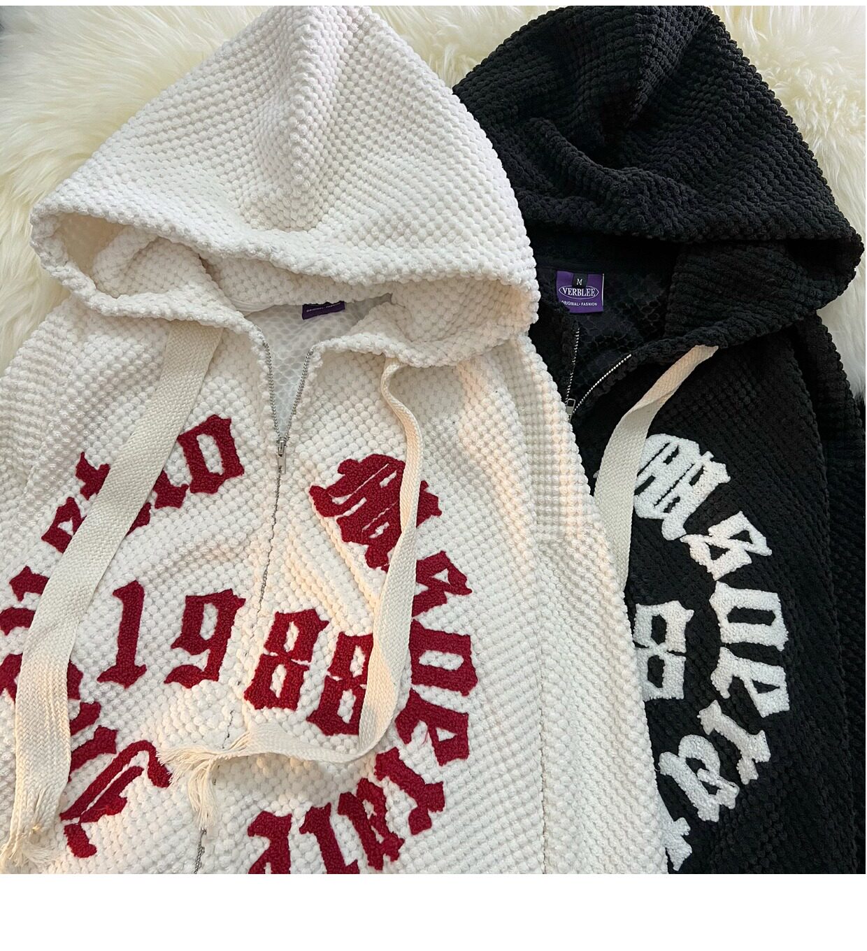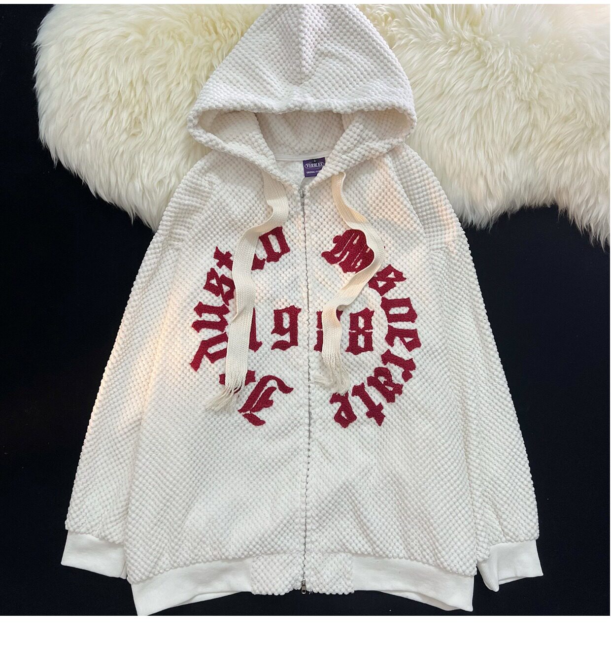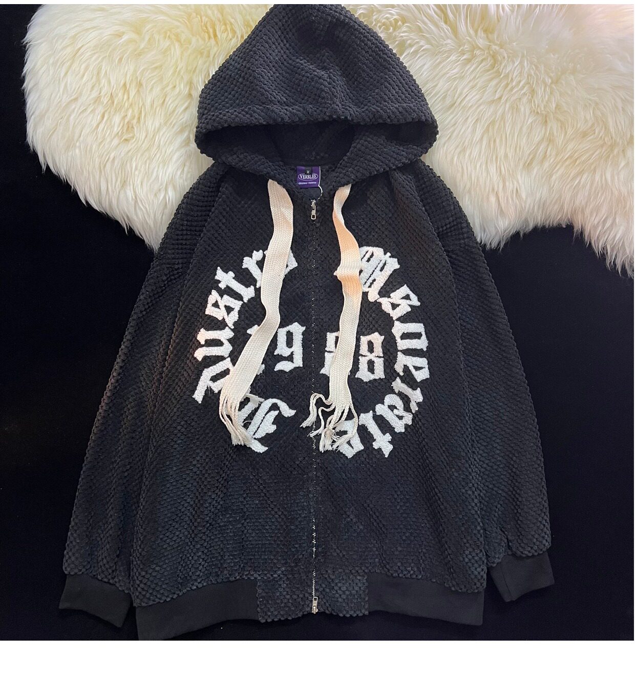 Jianyinz甜酷風植絨連帽開衫衛衣男女寬鬆軟糯慵懶風情侶拉鍊外套