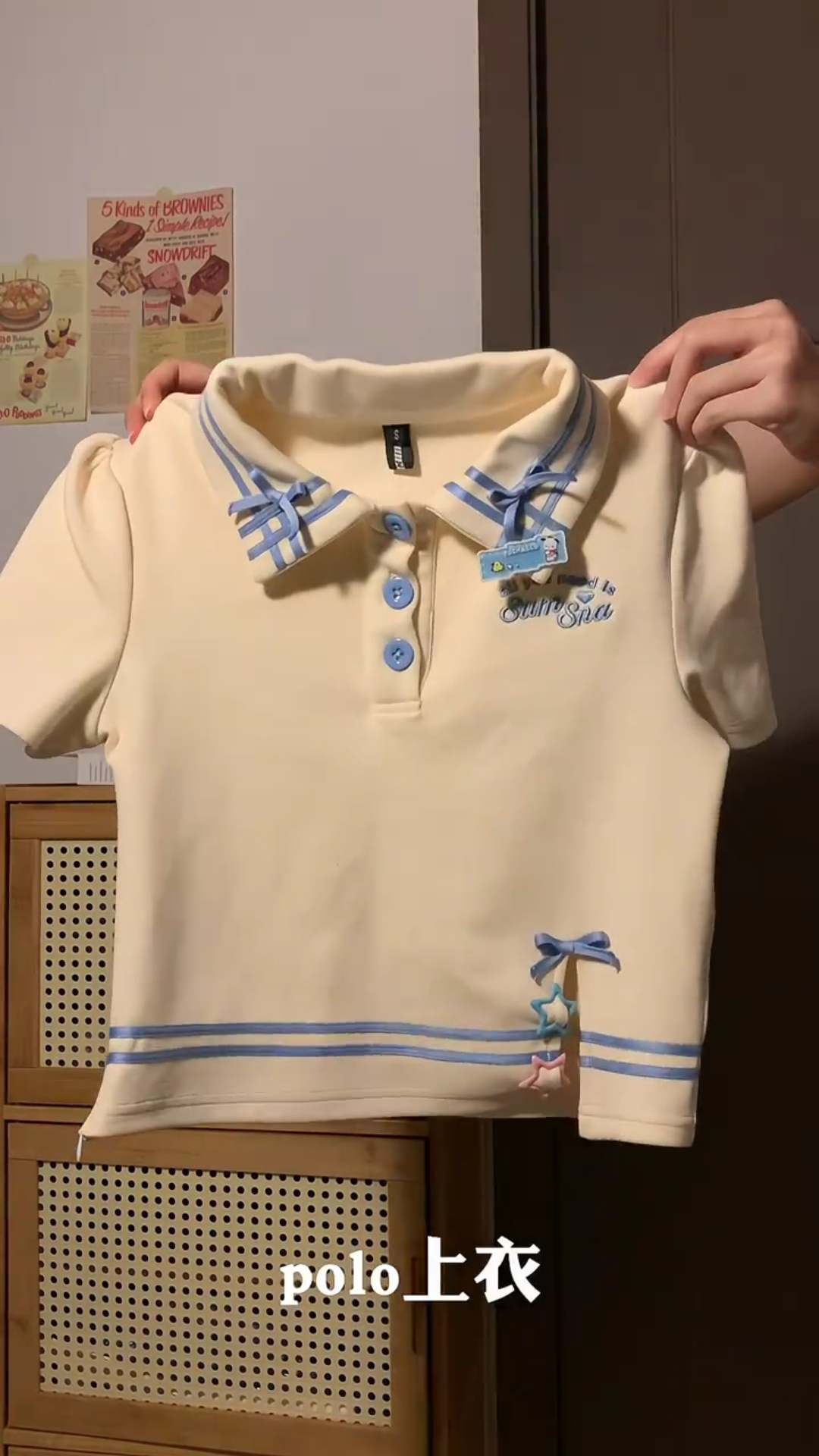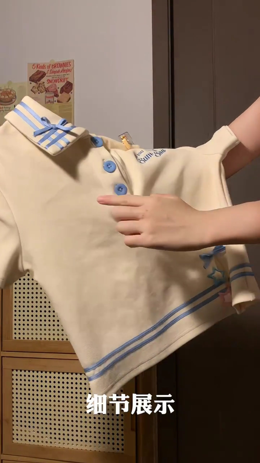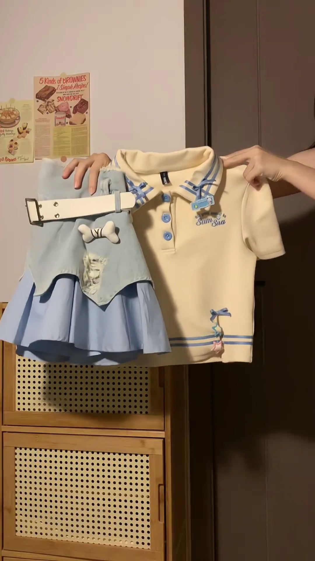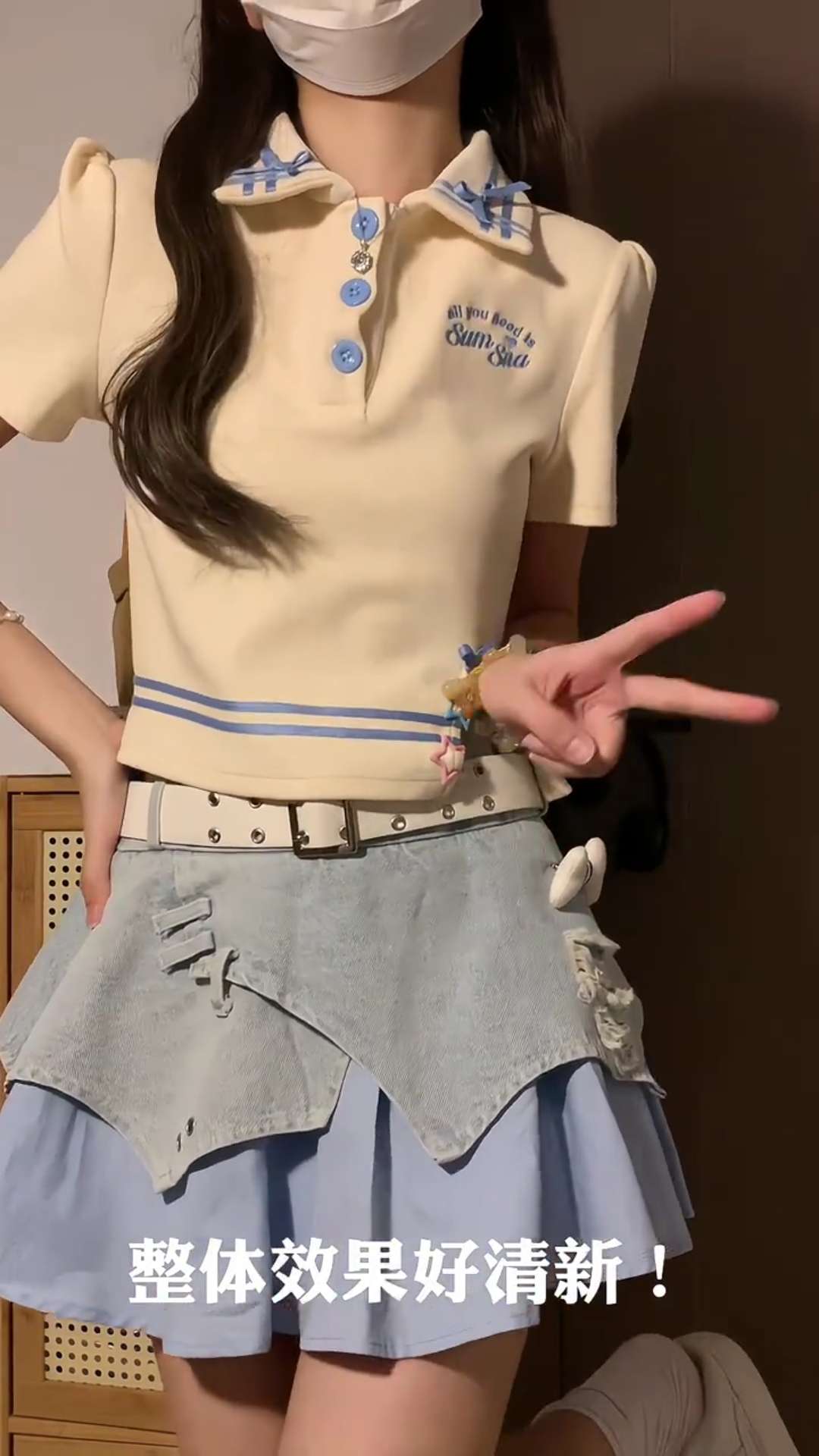 顏色分類 杏色短袖,藍色短裙,白色短袖