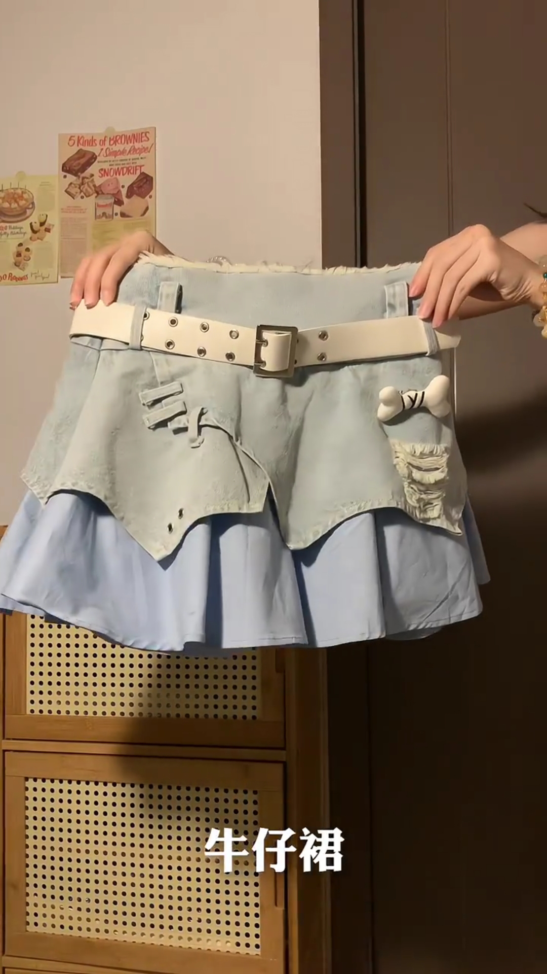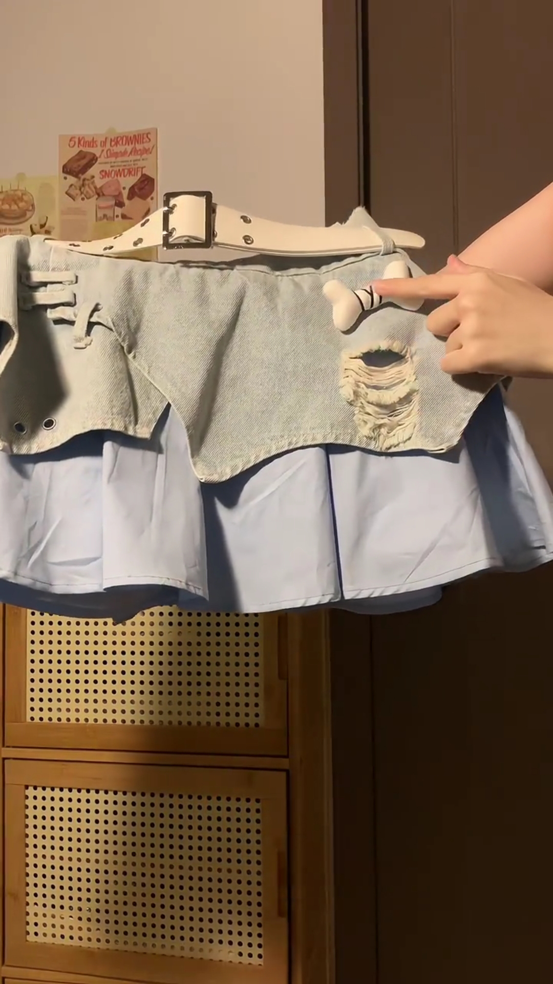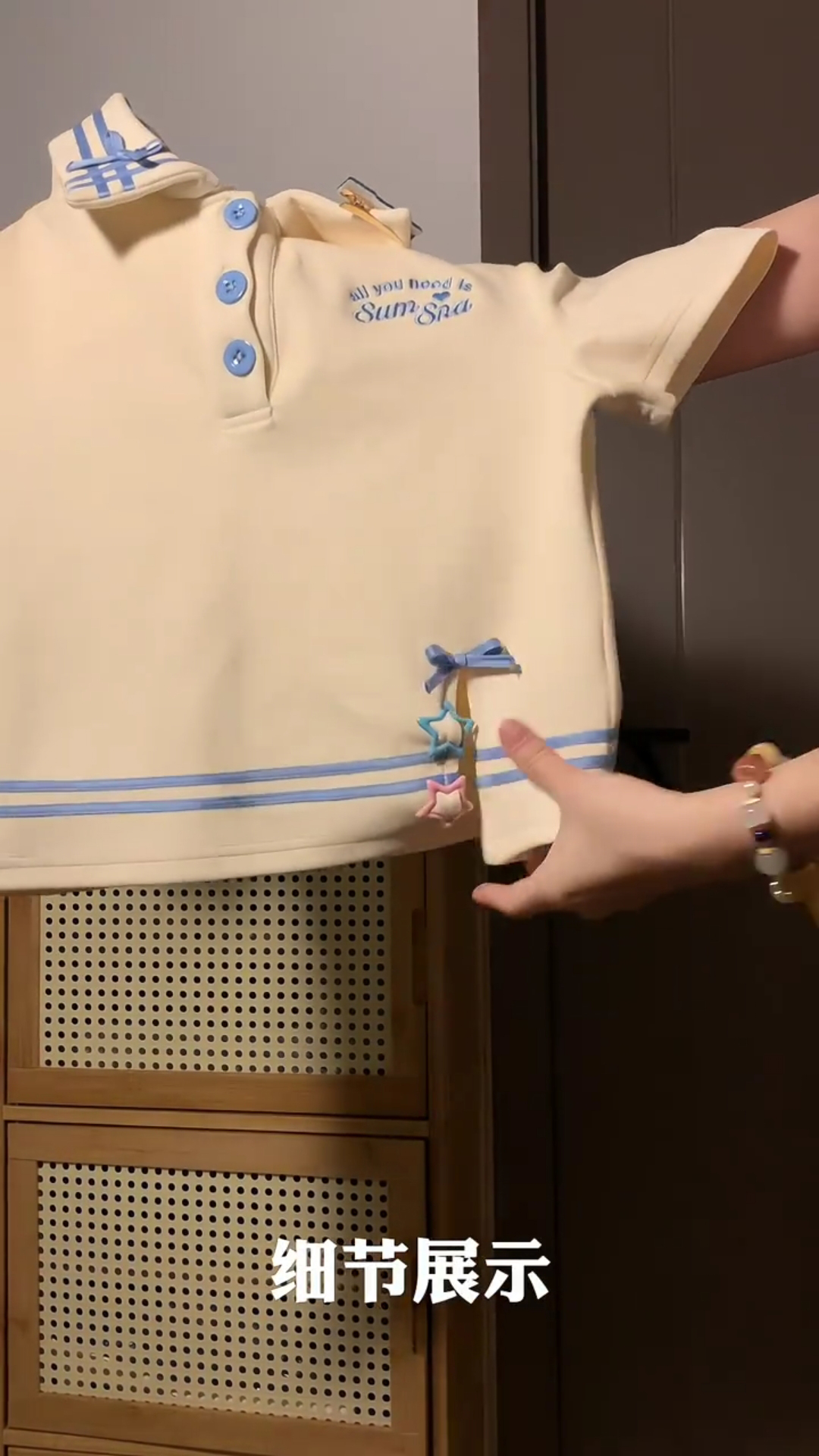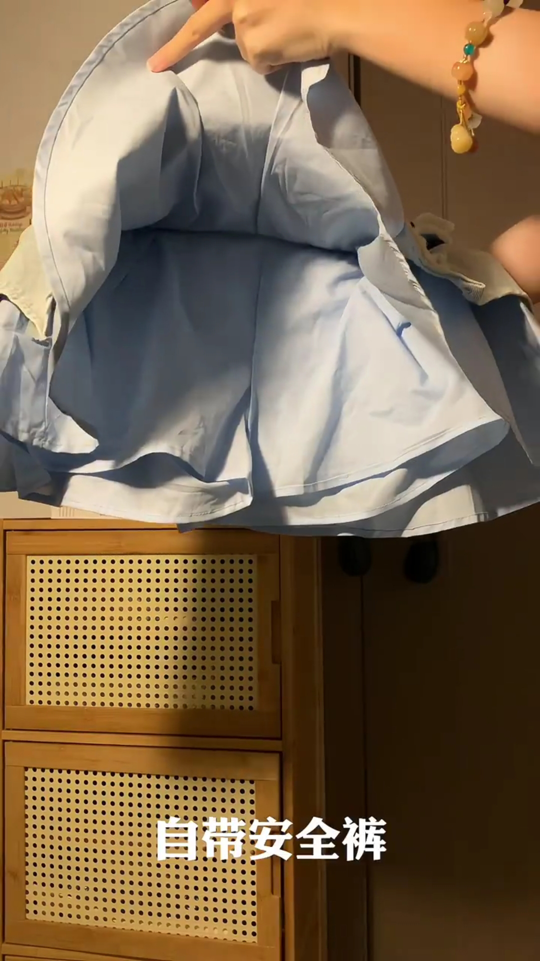 顏色分類 杏色短袖,藍色短裙,白色短袖