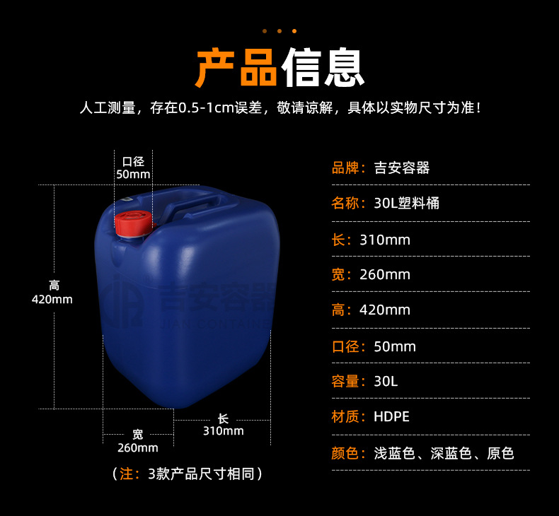 现货30L化工水桶加厚小口塑料桶堆码桶食品包装桶30kg农药肥料胶