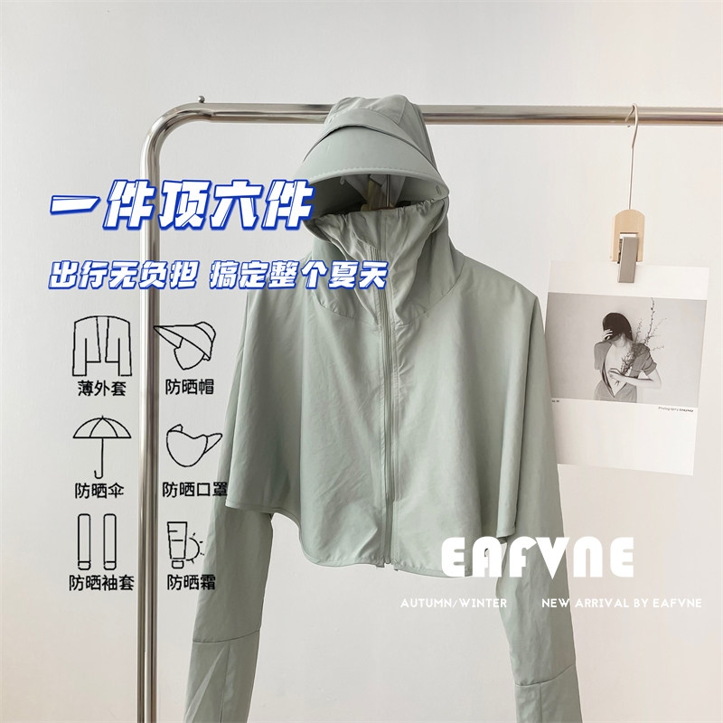 夏秋可拆卸連帽防曬服寬鬆薄款外套休閒百搭透氣設計感鬥篷防曬衣