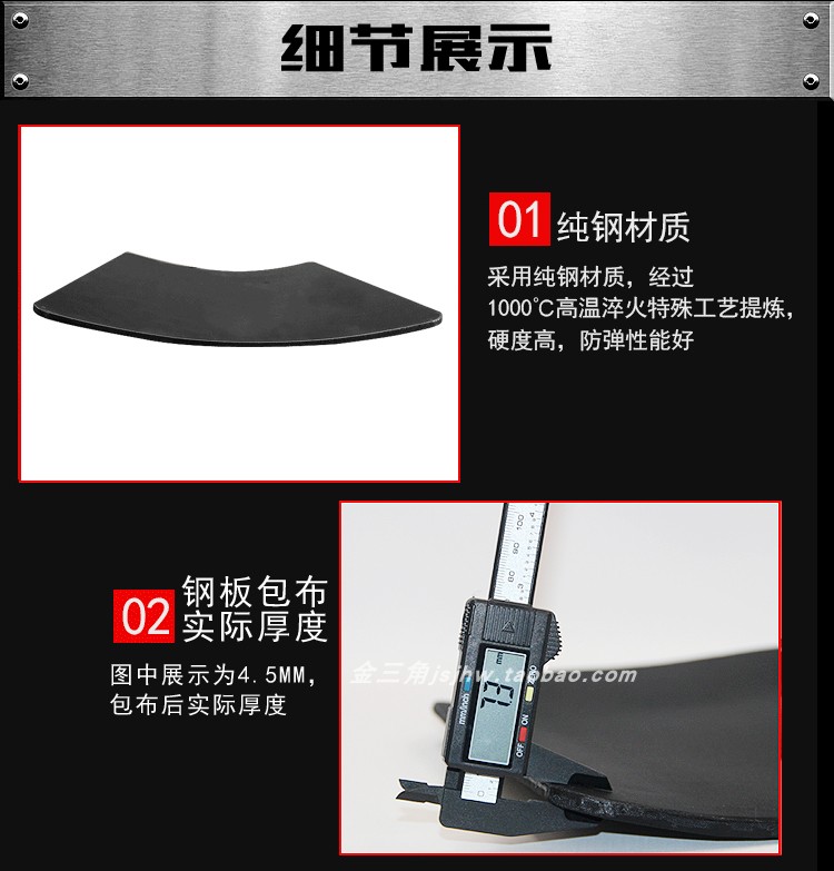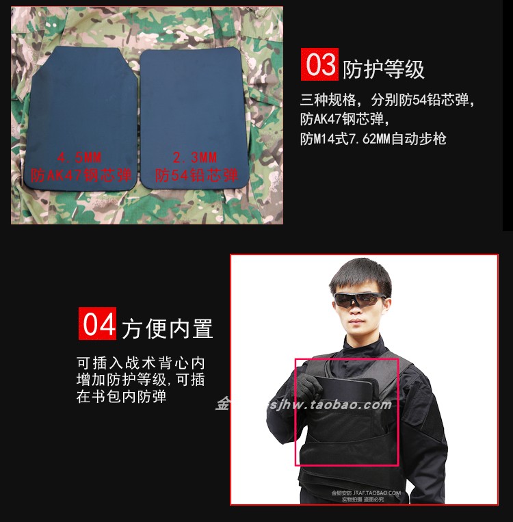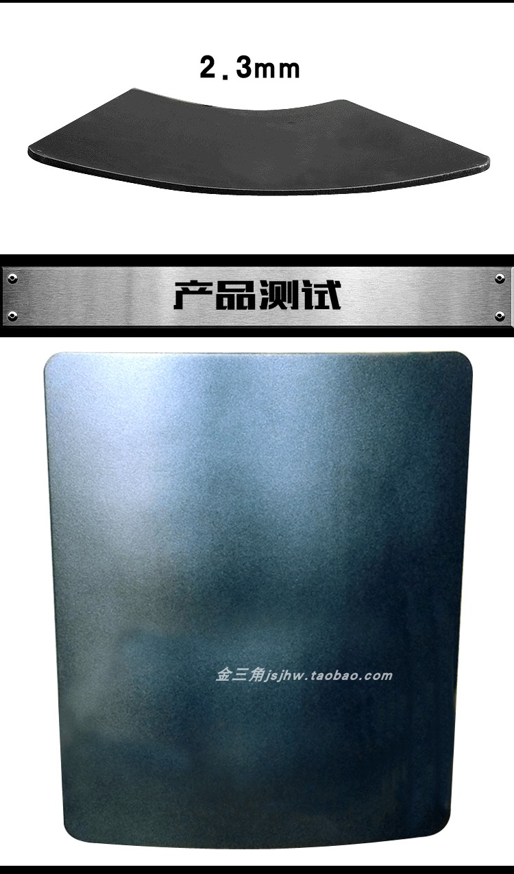 顏色 2.3mm鋼板(沒印字長方形),2.3mm防彈鋼板(印字切角梯形),4.5mm鋼板(印字長方形),4.5mm鋼板(印字切角梯形),6.0mm鋼板(印字切角梯形),三級陶瓷板(印字切角梯形),四級陶瓷板(印字切角梯形),3A防護純PE板(0.46KG),注:以上價格都是單塊的價格