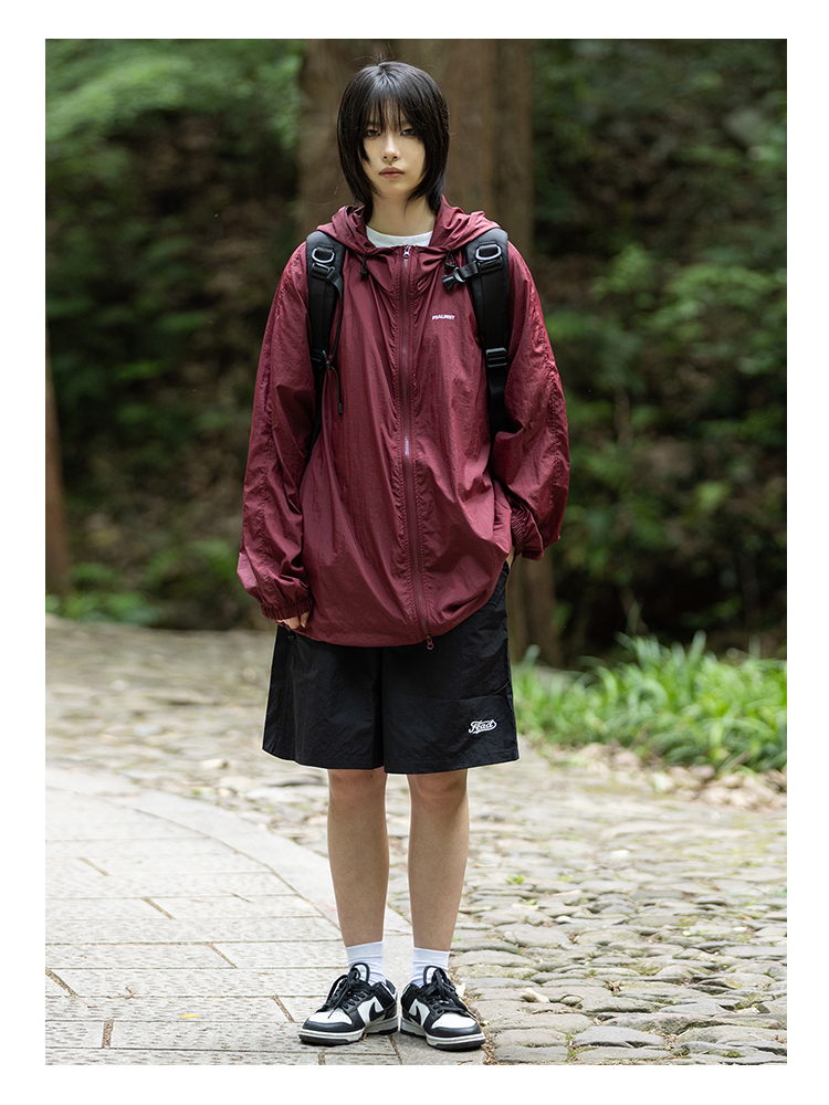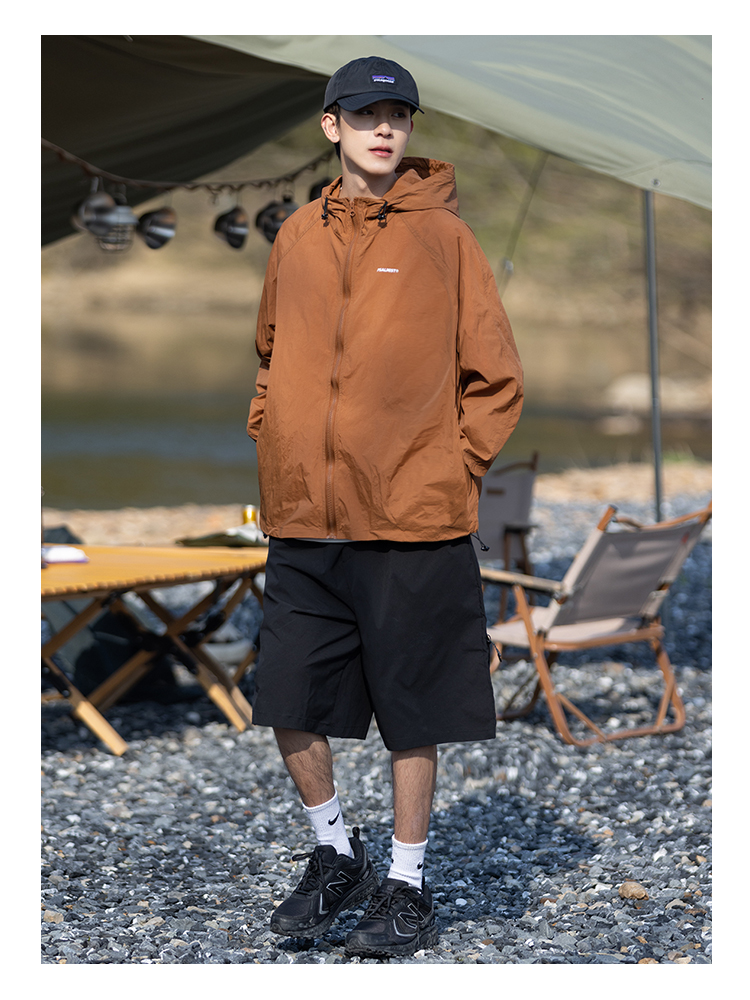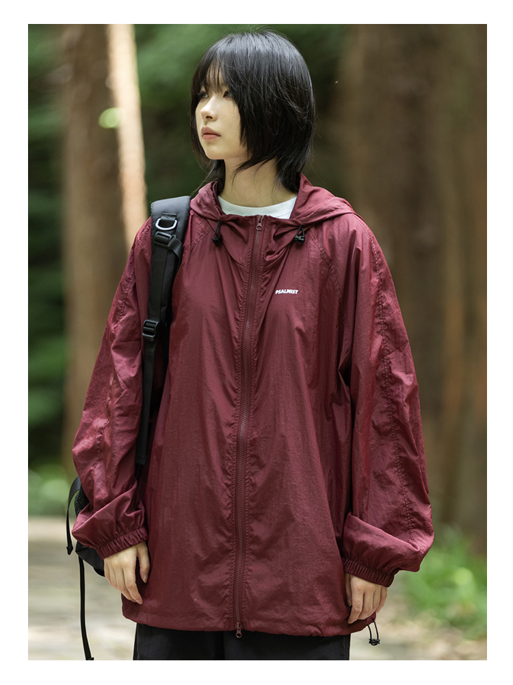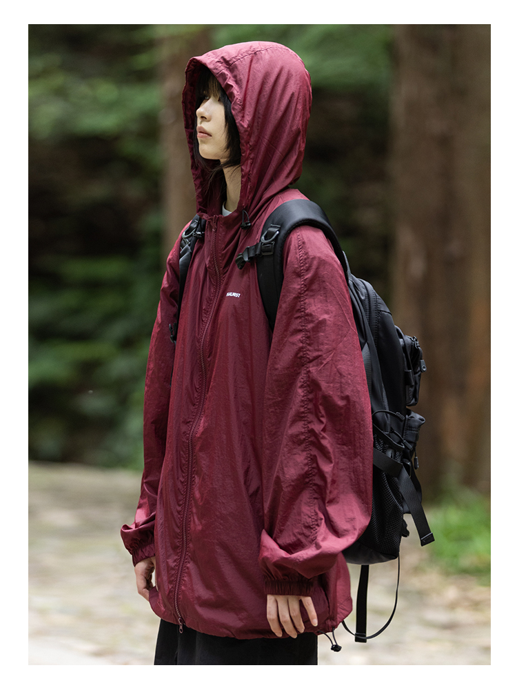 UPF+50 日系輕薄透氣防曬衣ins潮男女休閒連帽防曬服寬鬆釣魚服裝