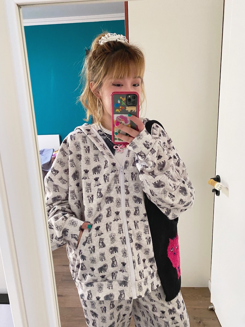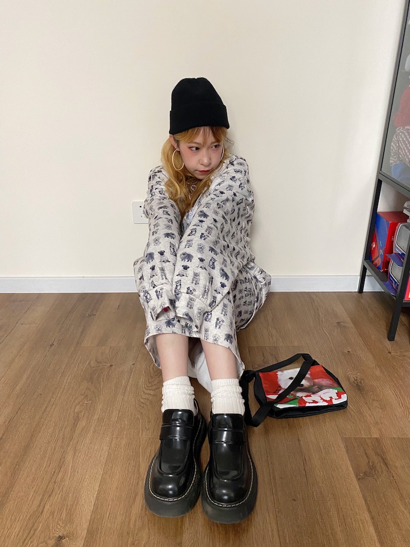bunnybunnygun原創設計 薄絨款復古可愛超寬大慵懶感拉鍊帽衫衛衣