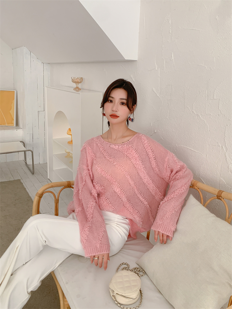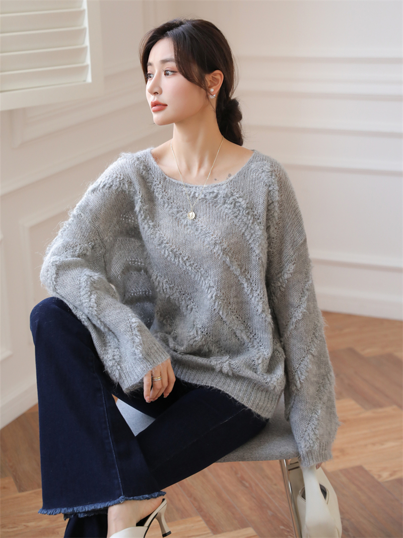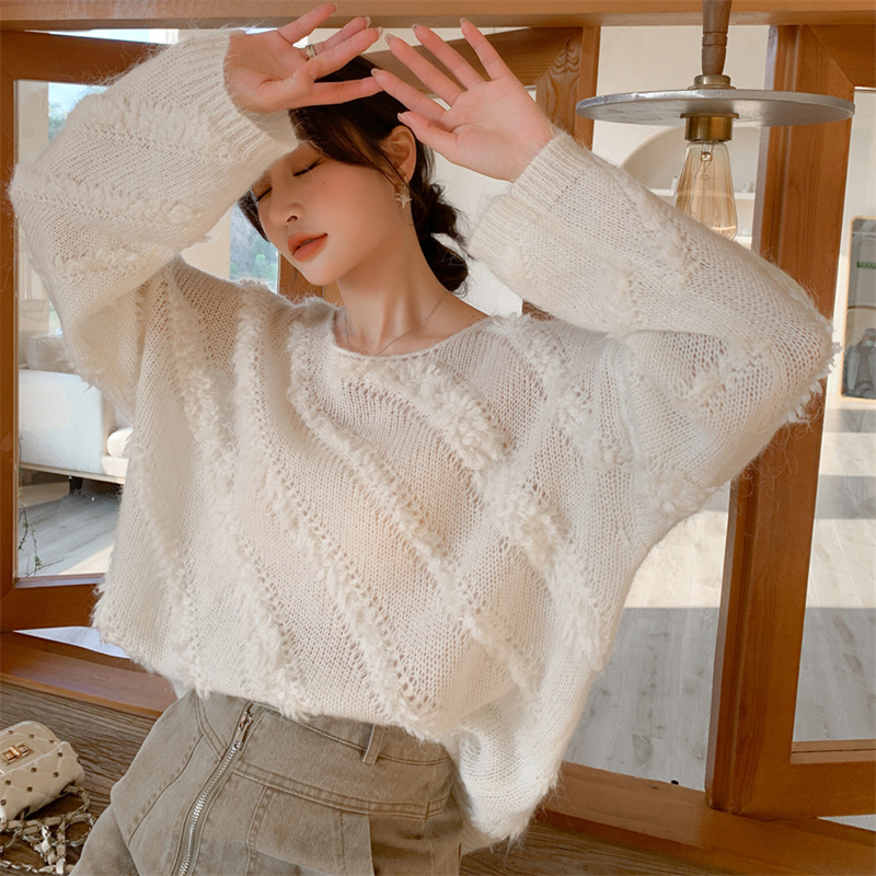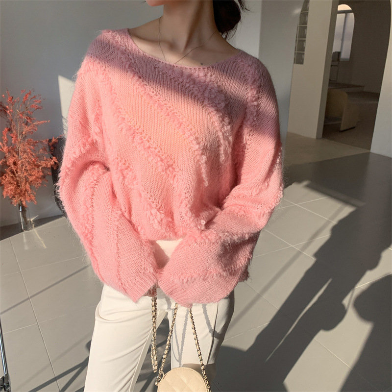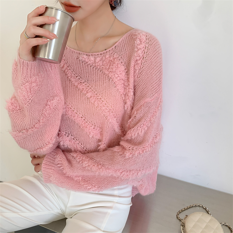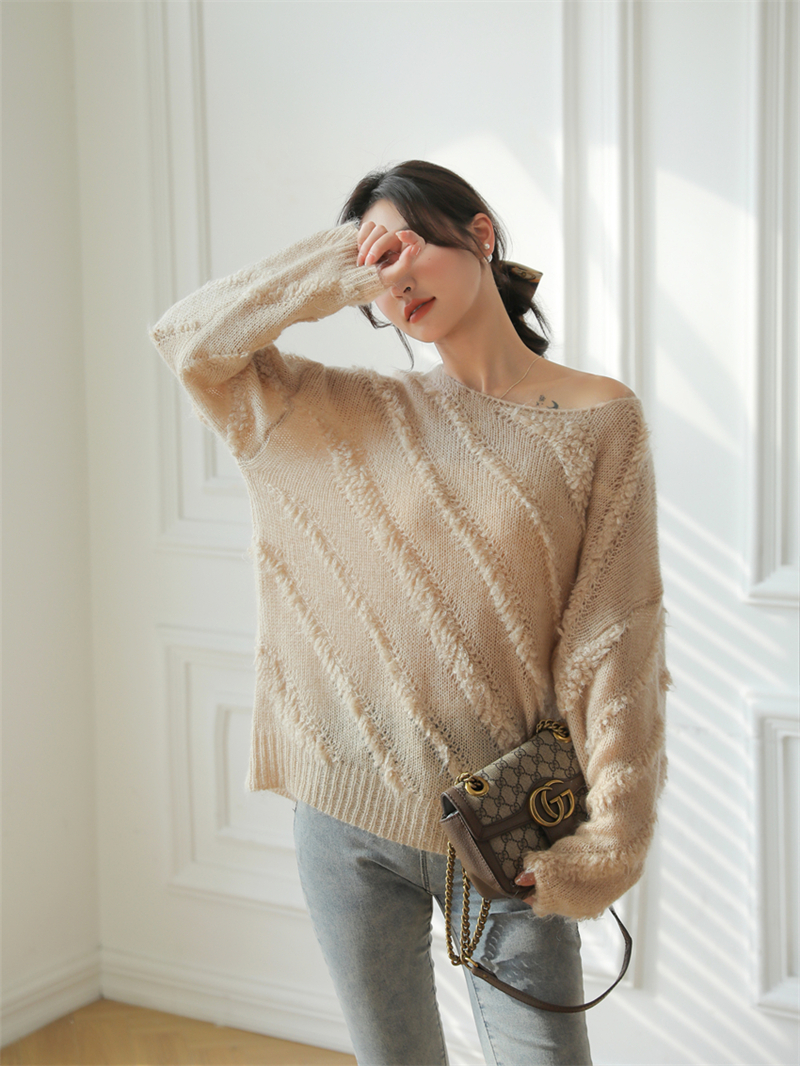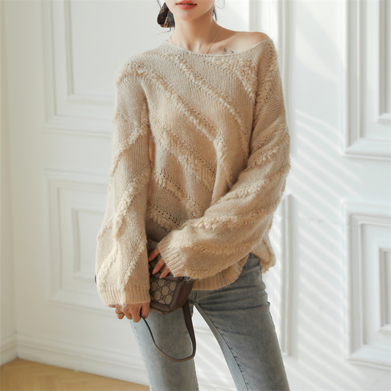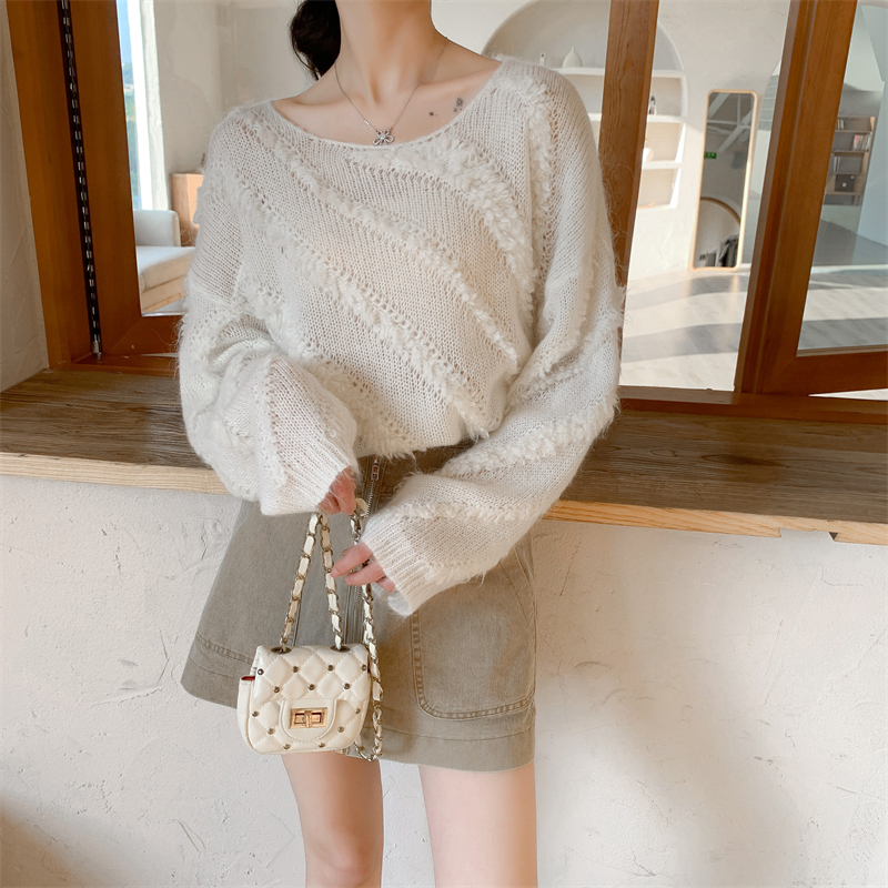 【自制实拍】高比例马海毛衣女露肩设计感春秋宽松慵懒羊毛针织衫