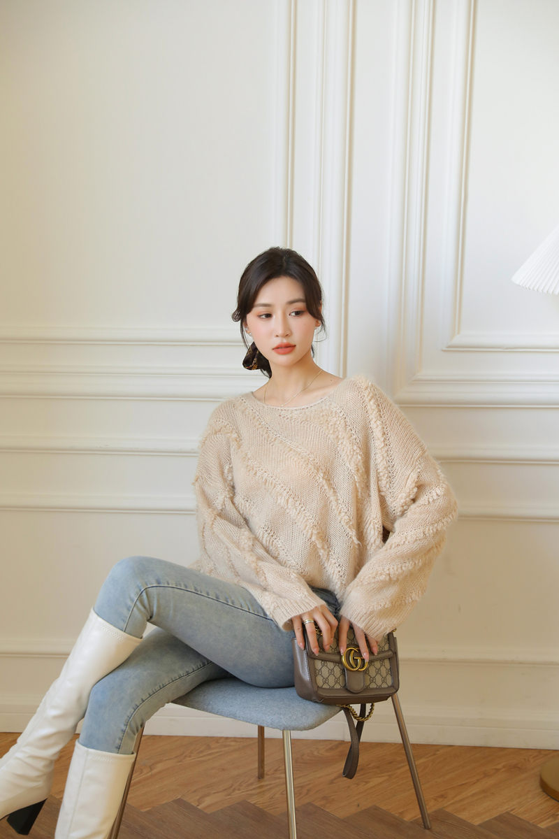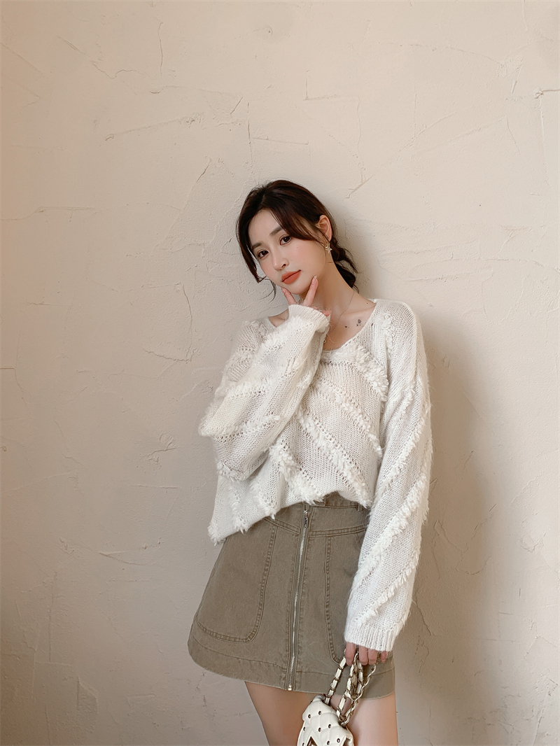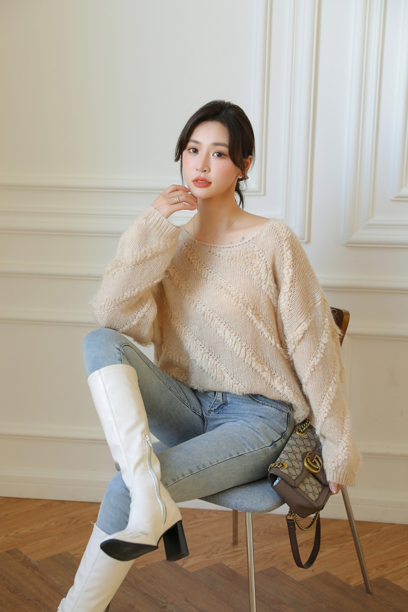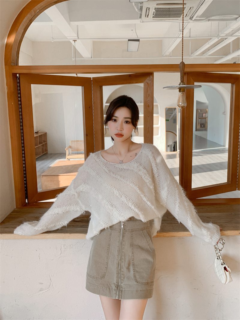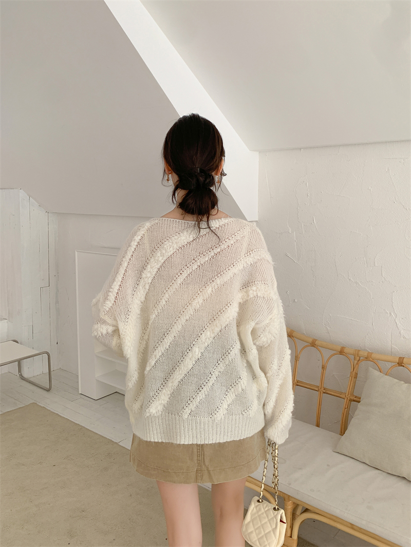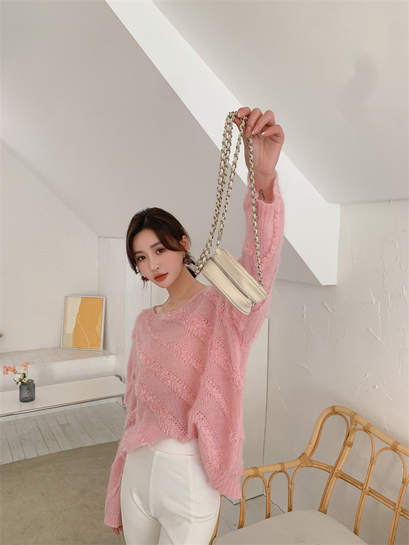 【自制实拍】高比例马海毛衣女露肩设计感春秋宽松慵懒羊毛针织衫