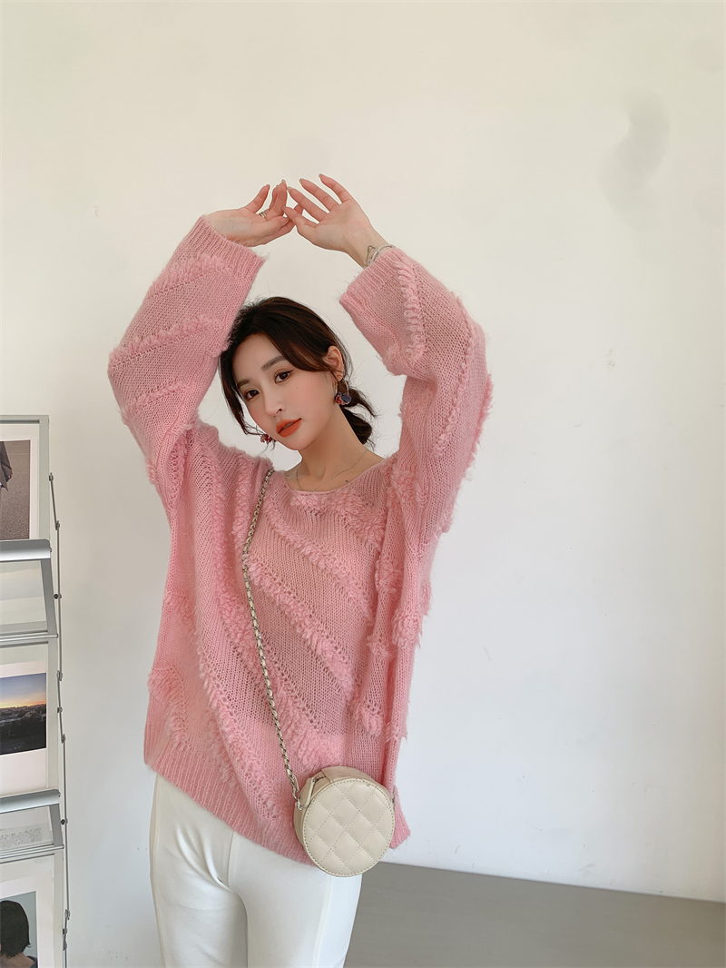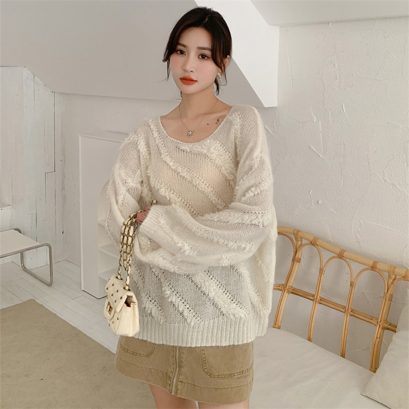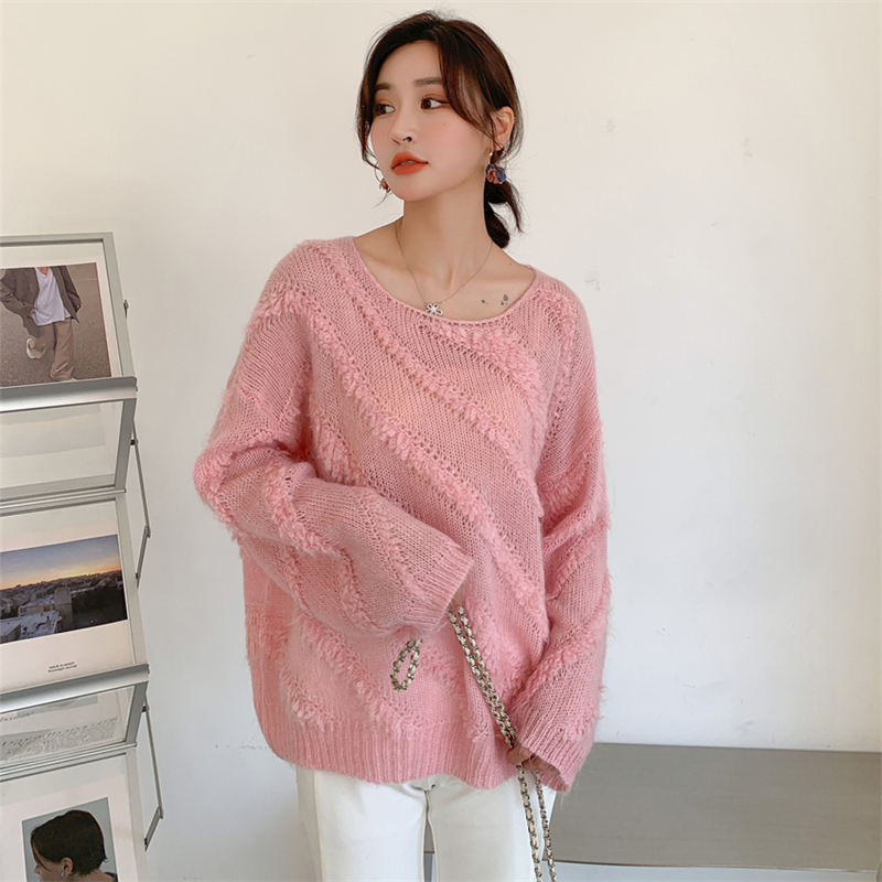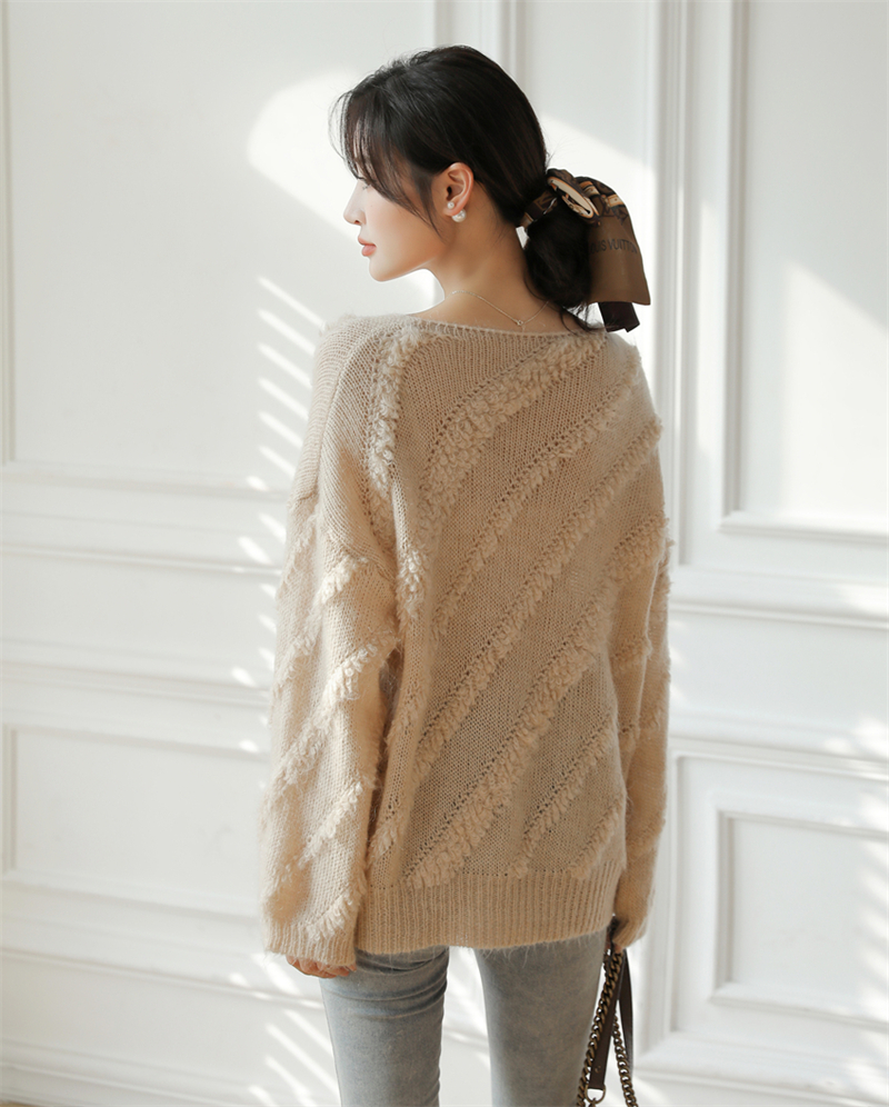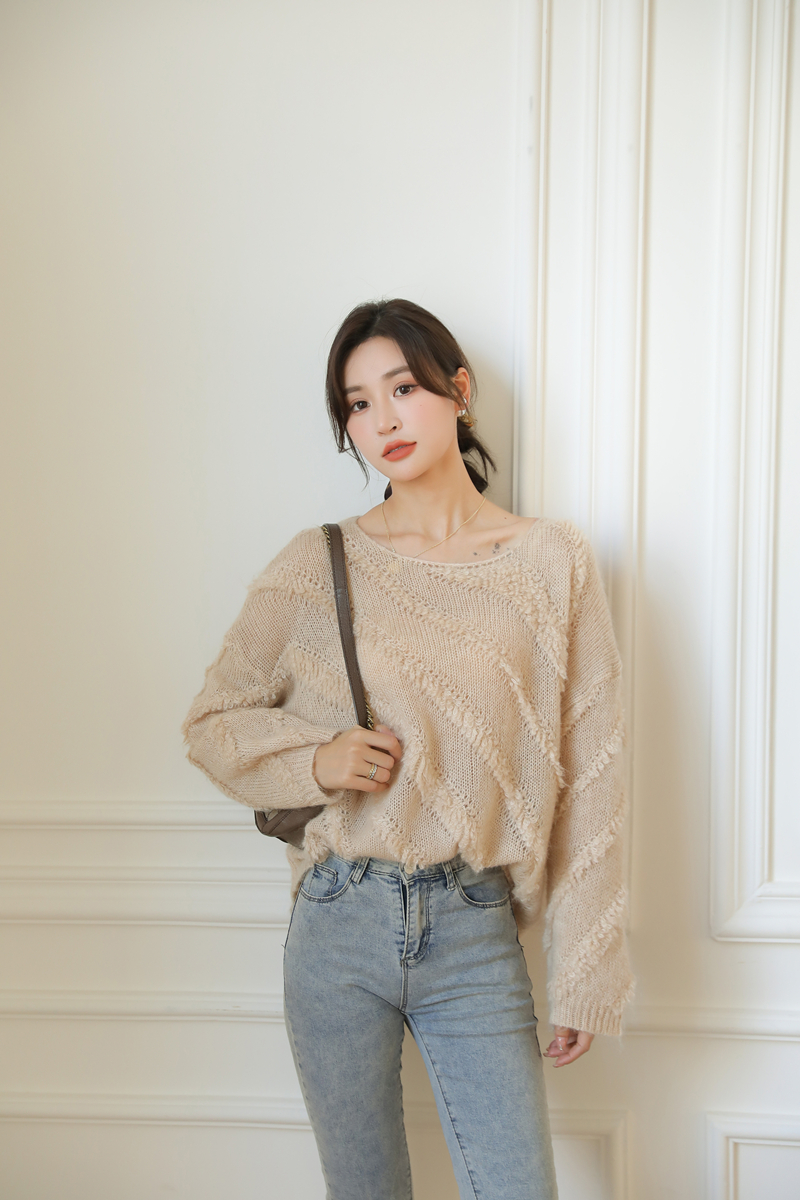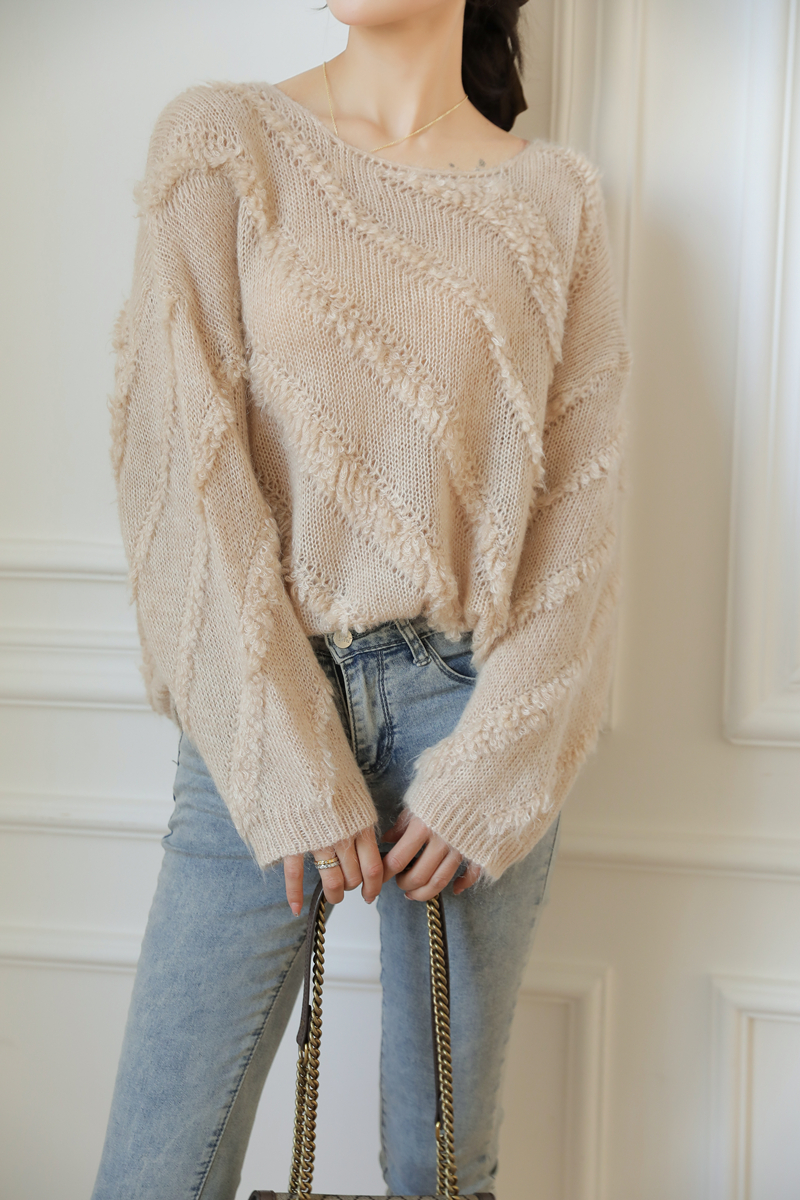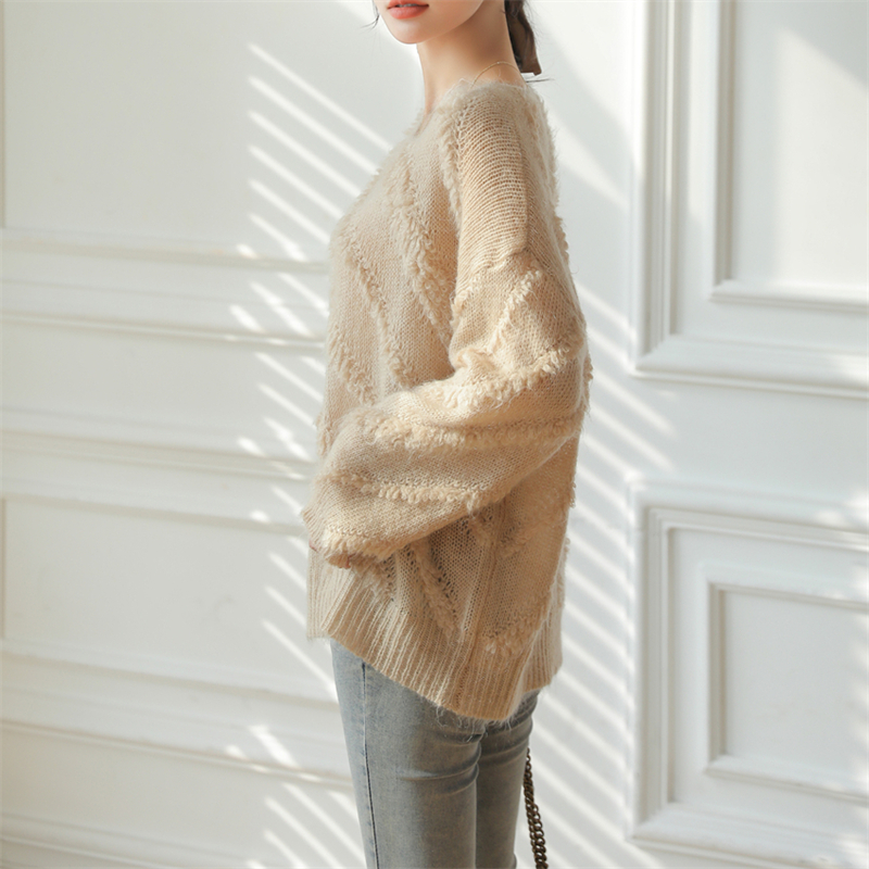 【自制实拍】高比例马海毛衣女露肩设计感春秋宽松慵懒羊毛针织衫