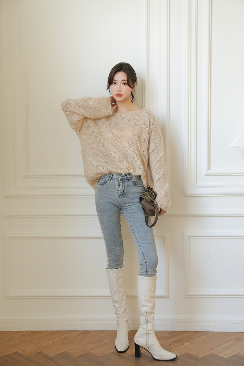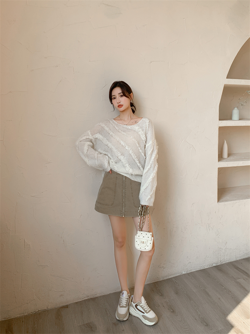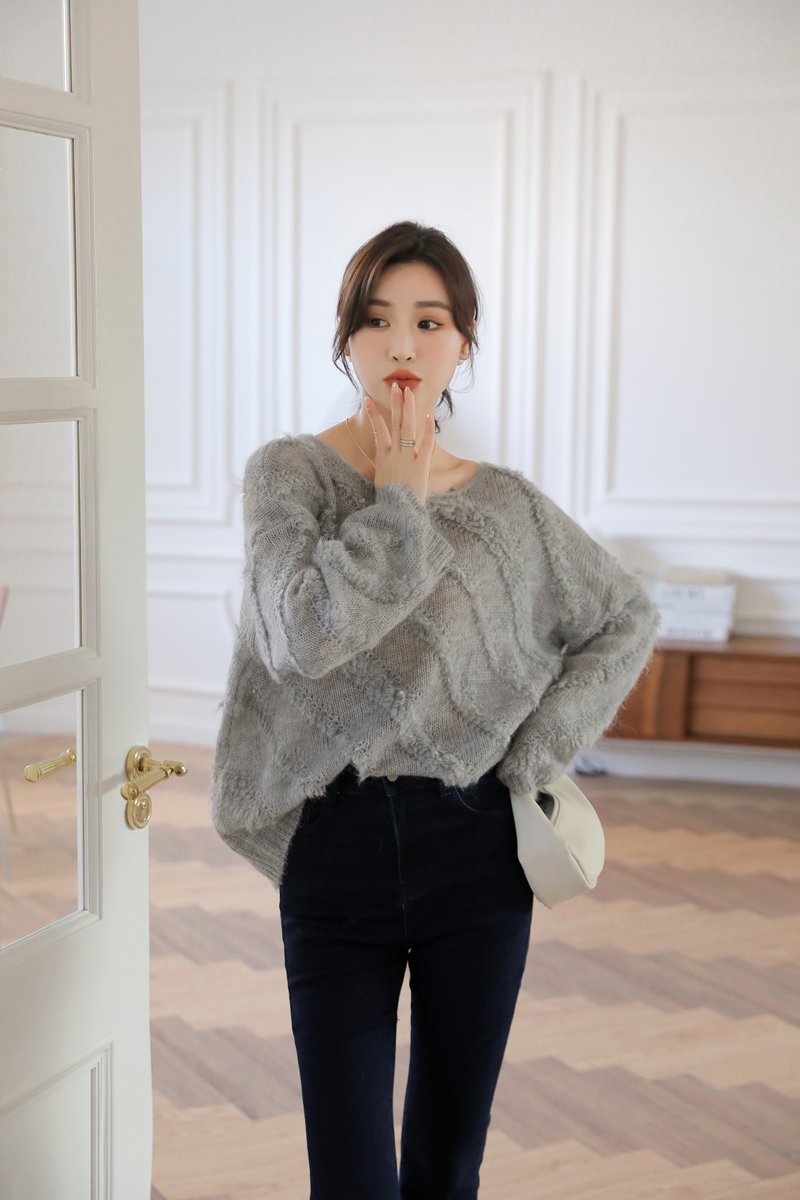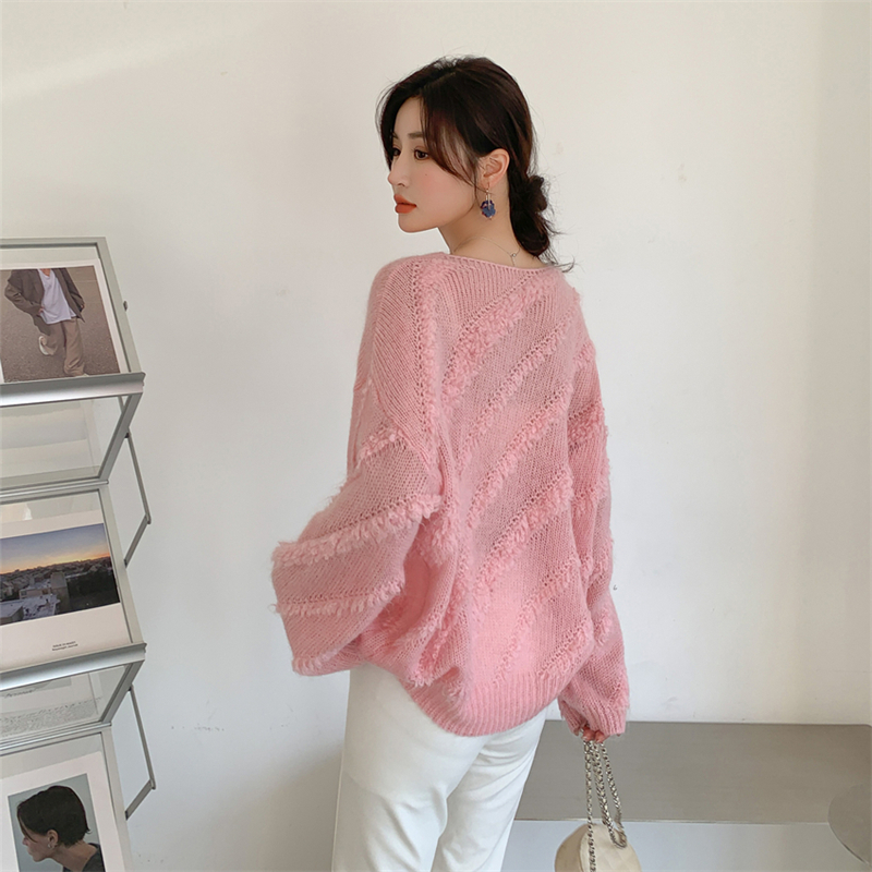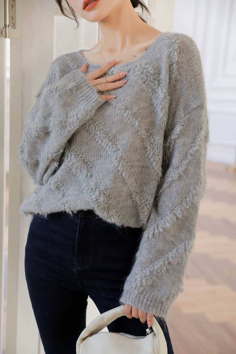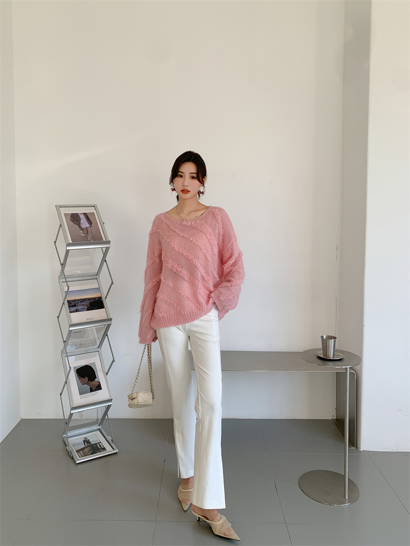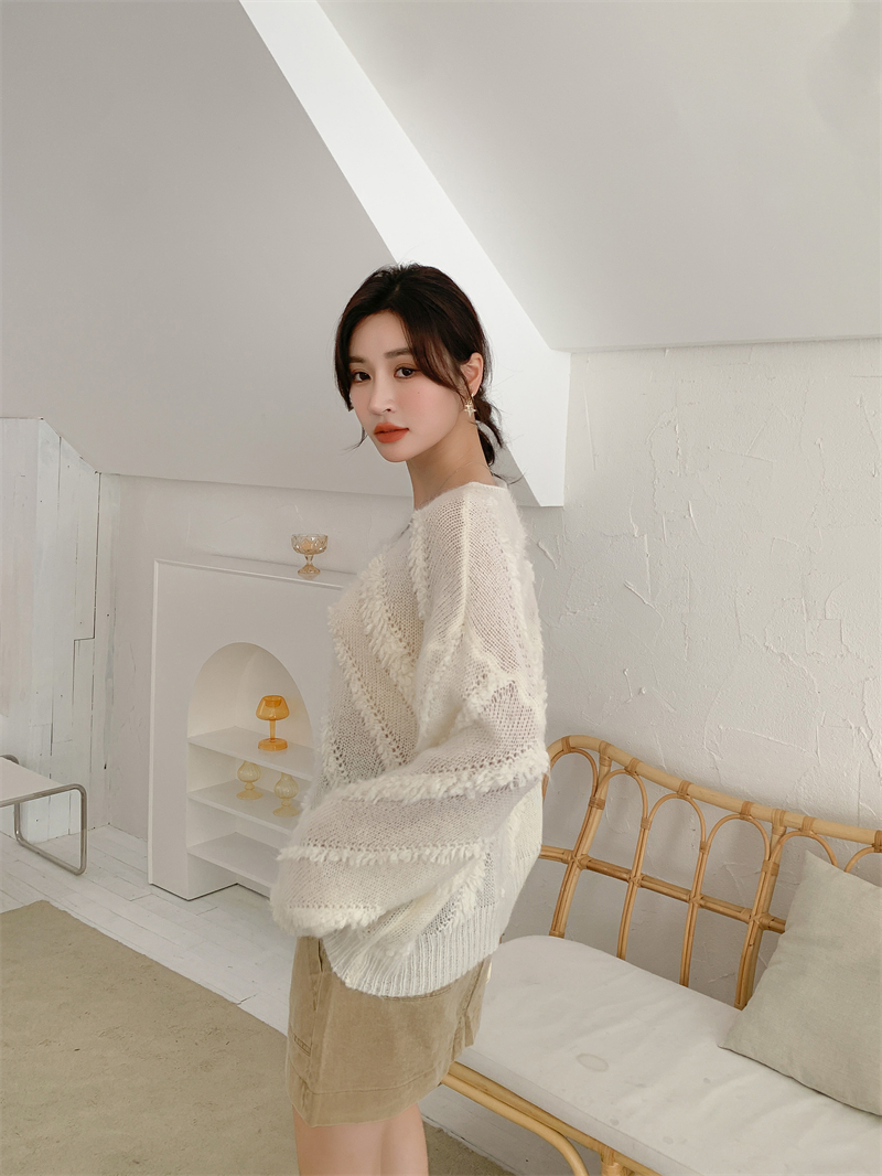 【自制实拍】高比例马海毛衣女露肩设计感春秋宽松慵懒羊毛针织衫