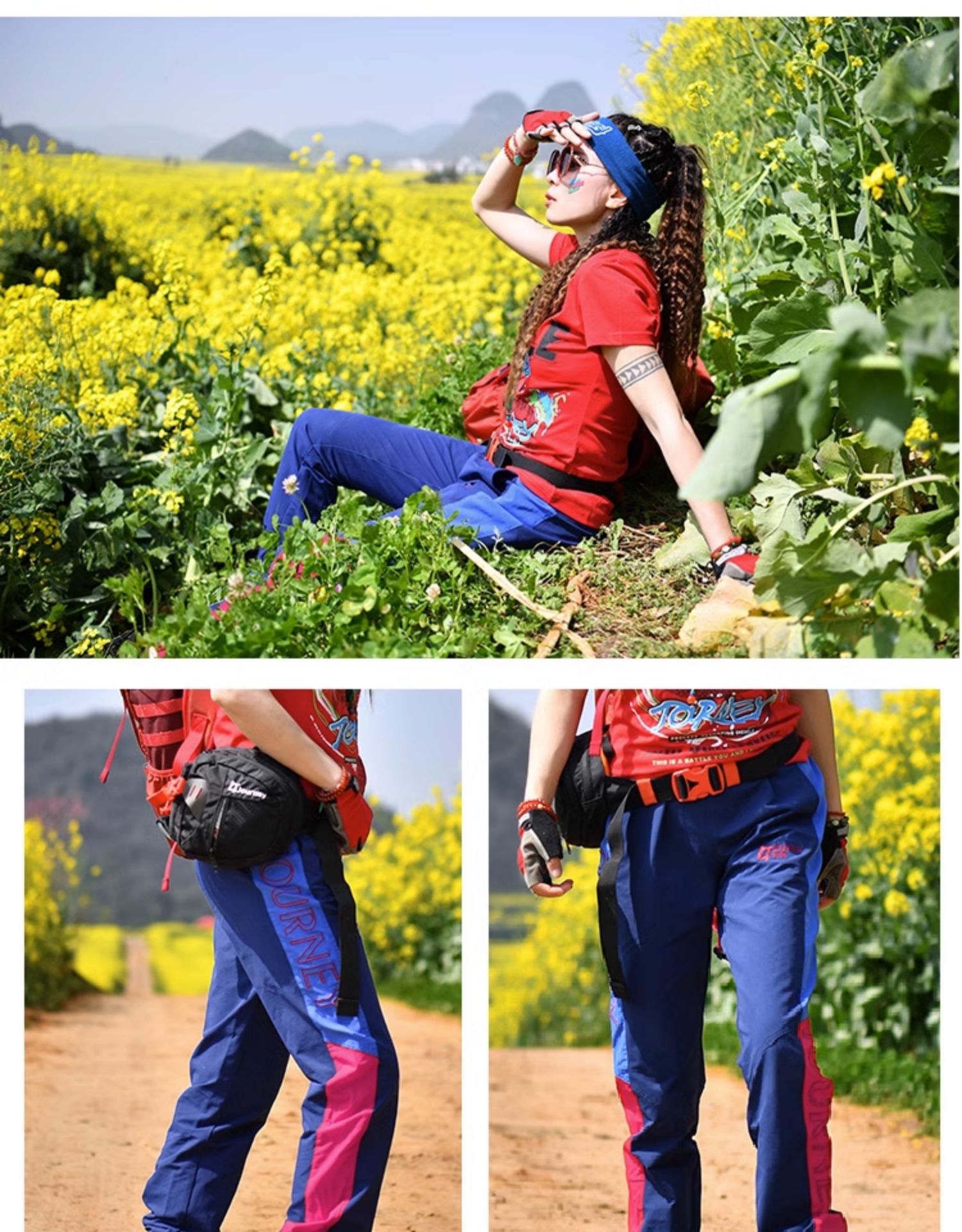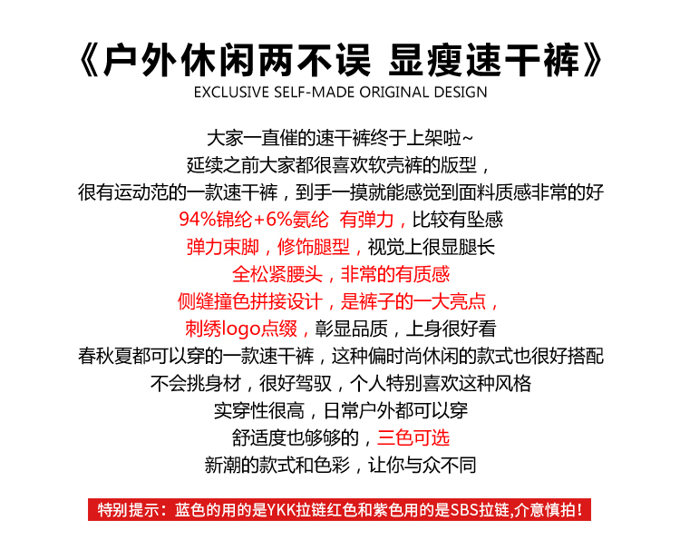 北京森林戶外2023春夏新品原創拼色合身登山旅行彈力透氣速乾褲女
