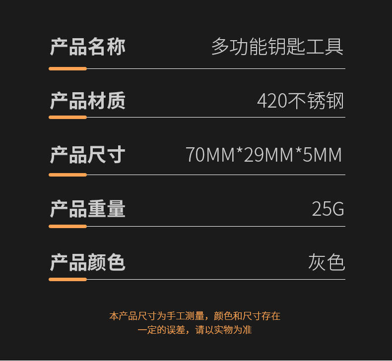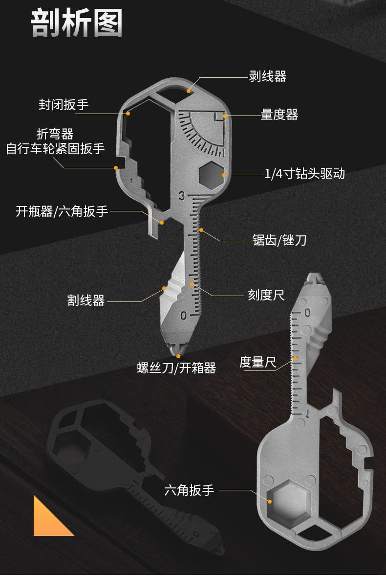 附加功能 開瓶器,指甲銼,尺子,螺絲刀,比例尺,開罐器,量角器