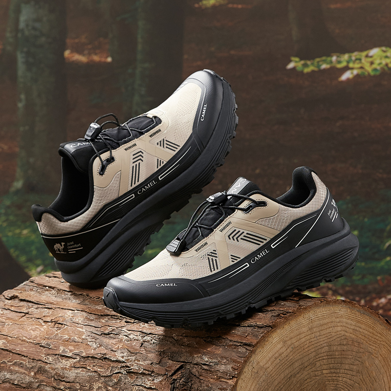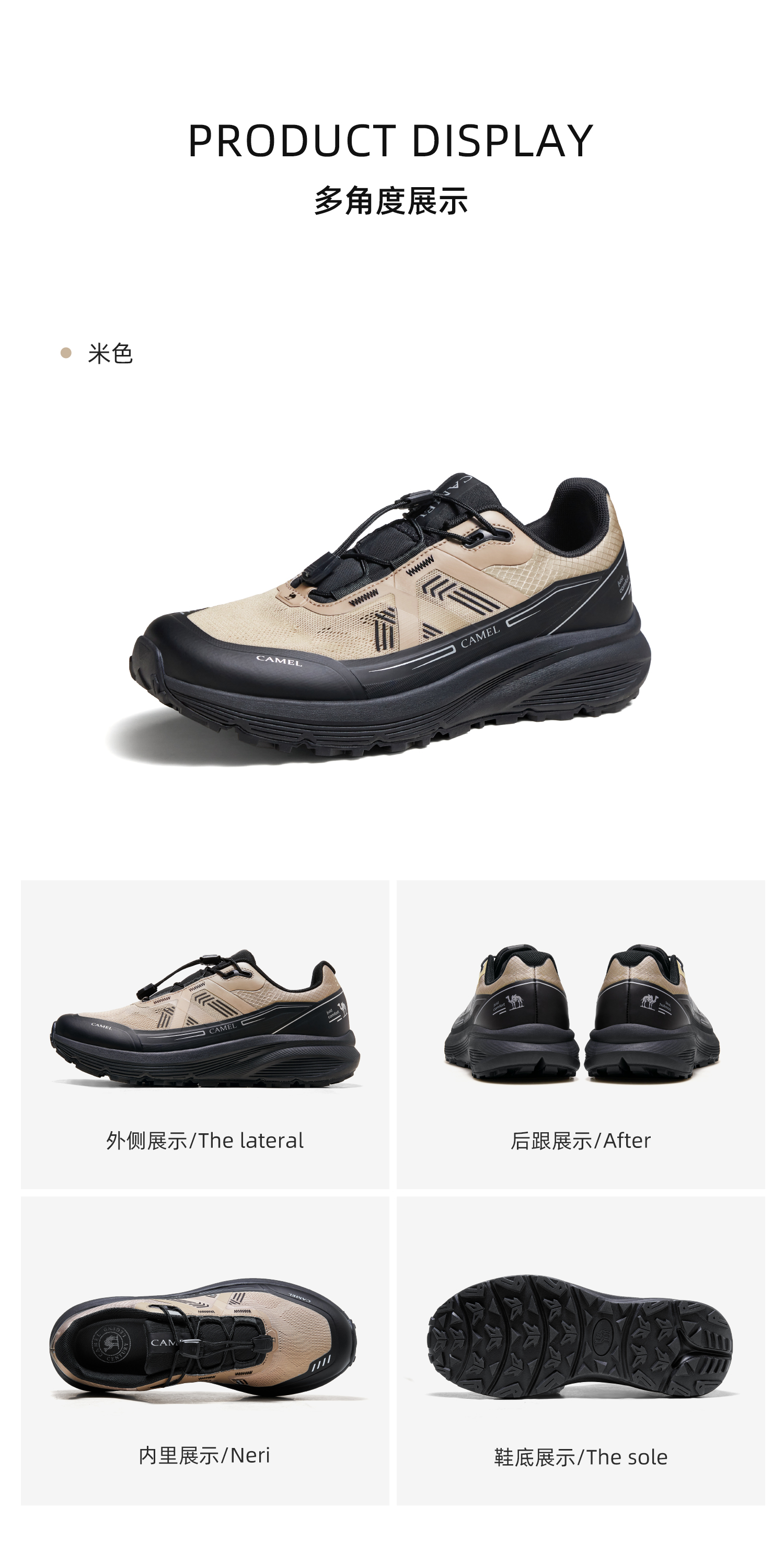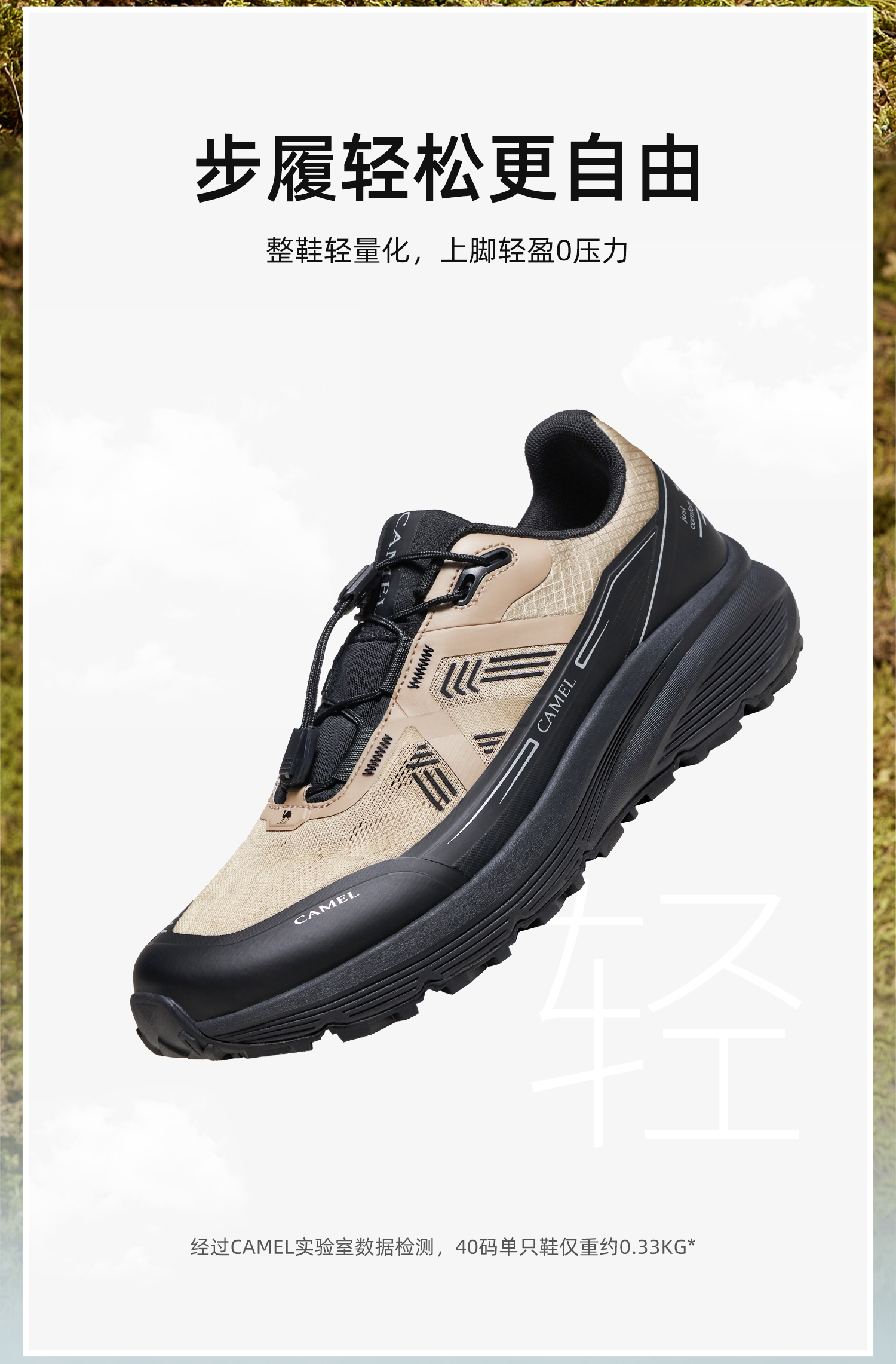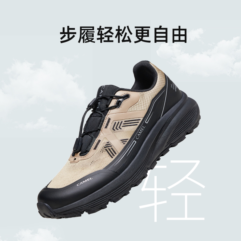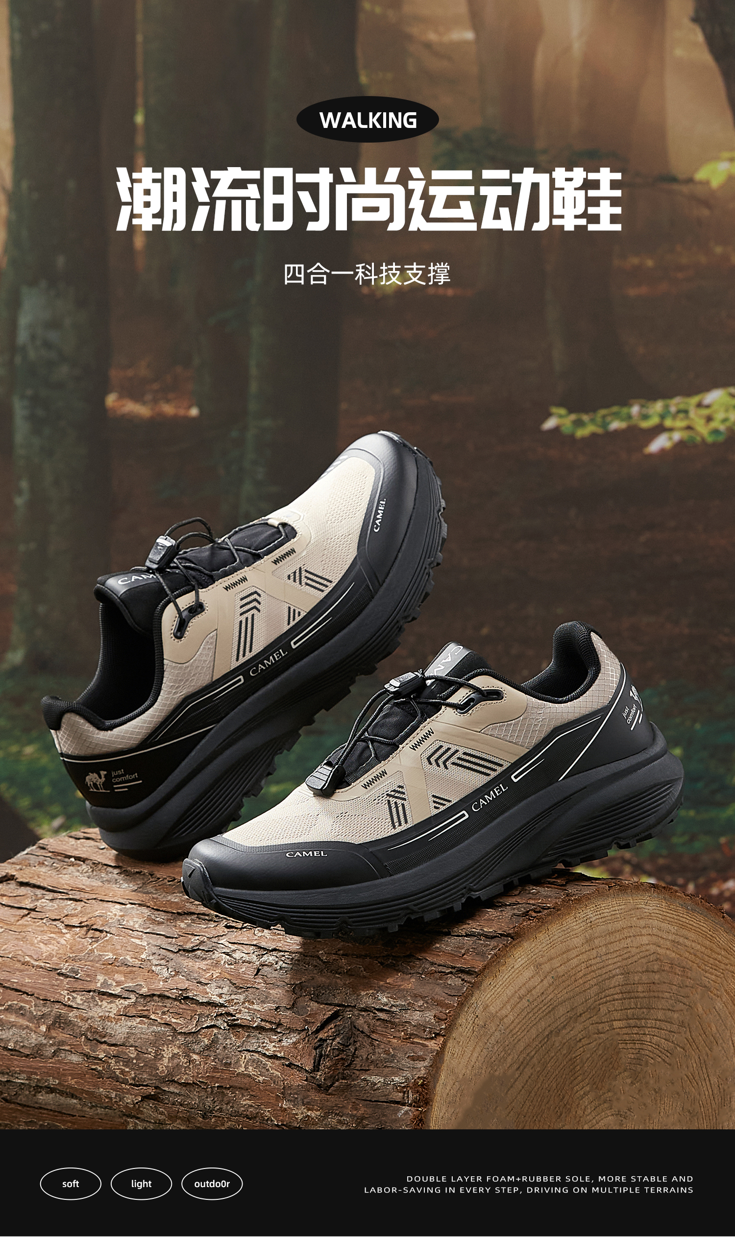駱駝男鞋2023秋季新款時尚軟底運動男士跑步鞋拼接網面透氣休閒鞋