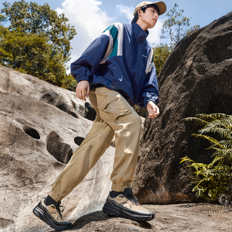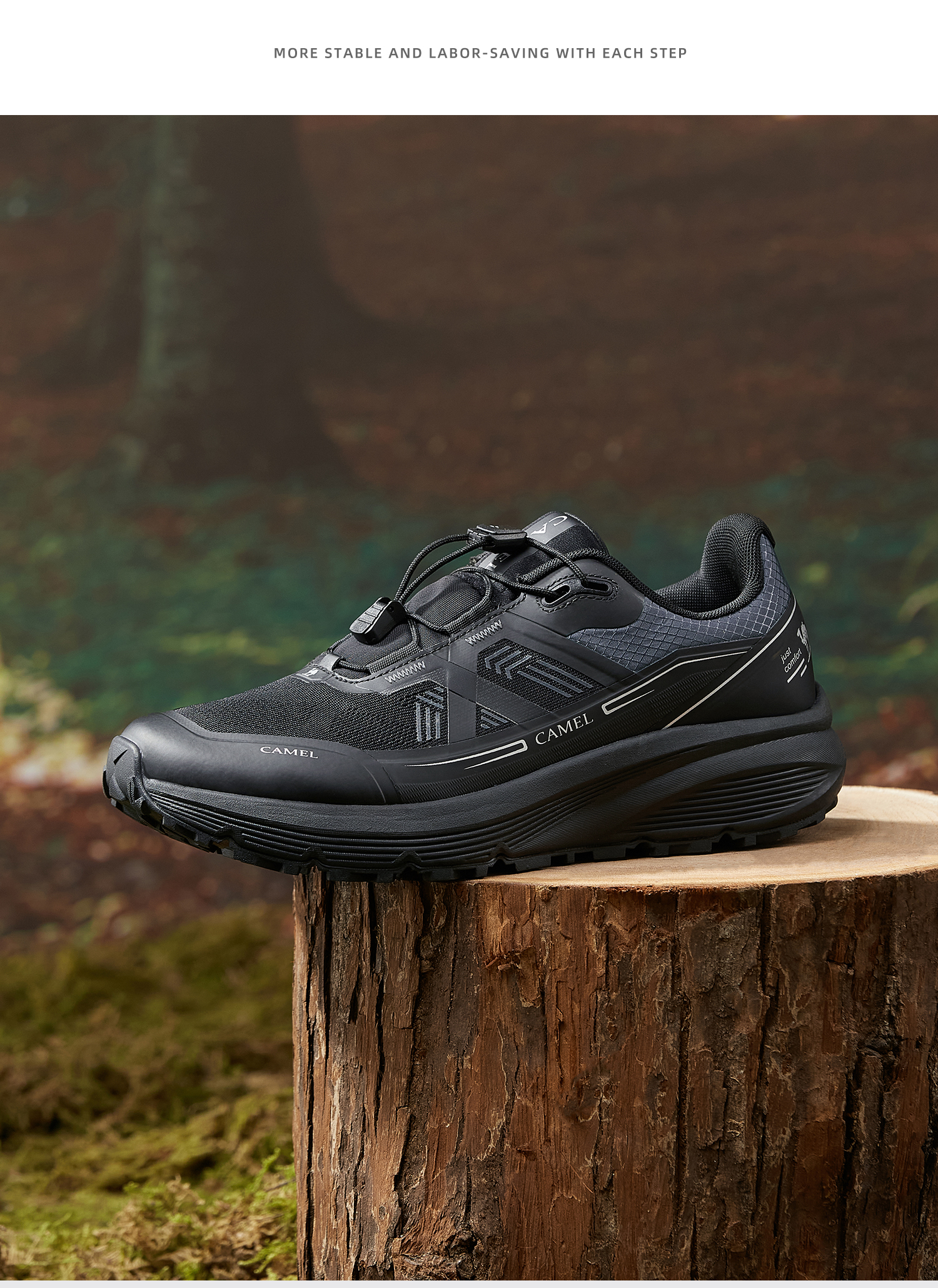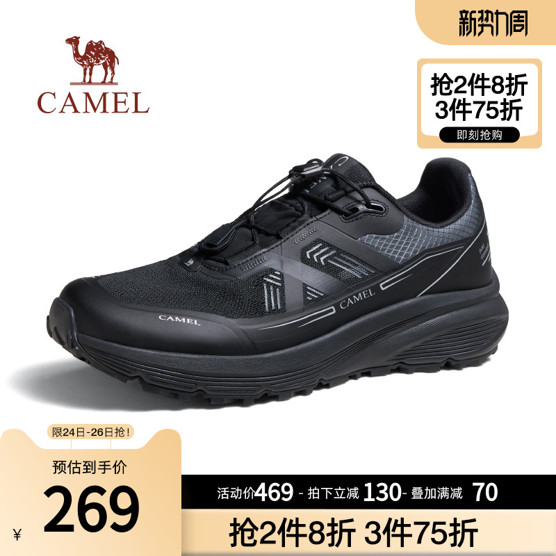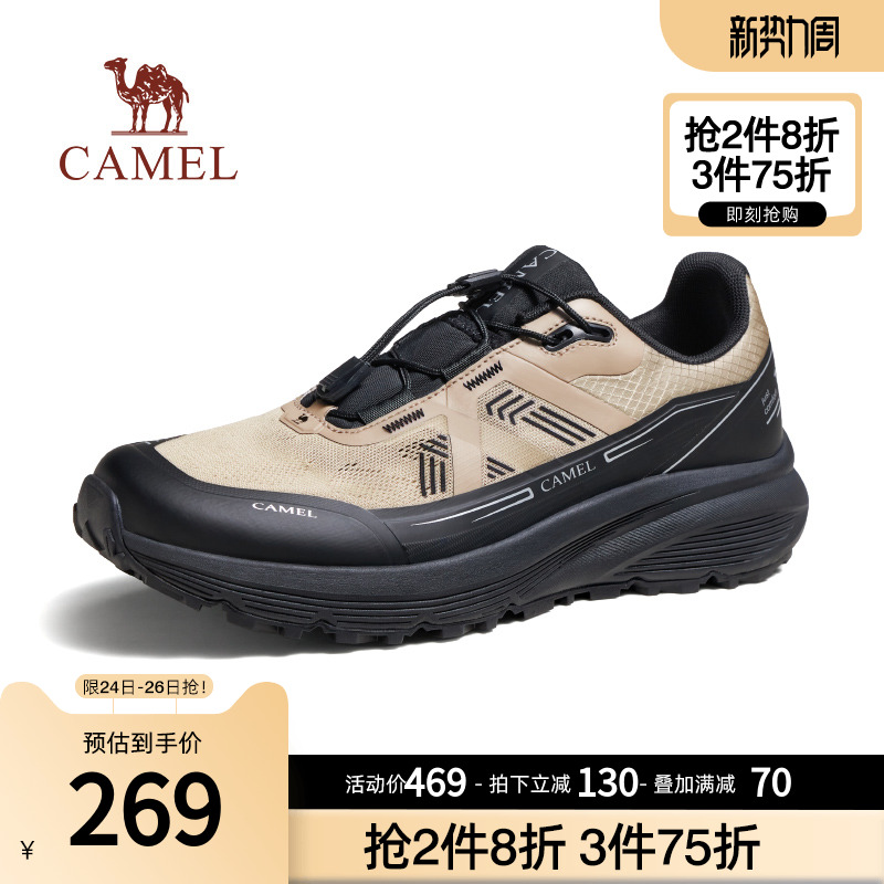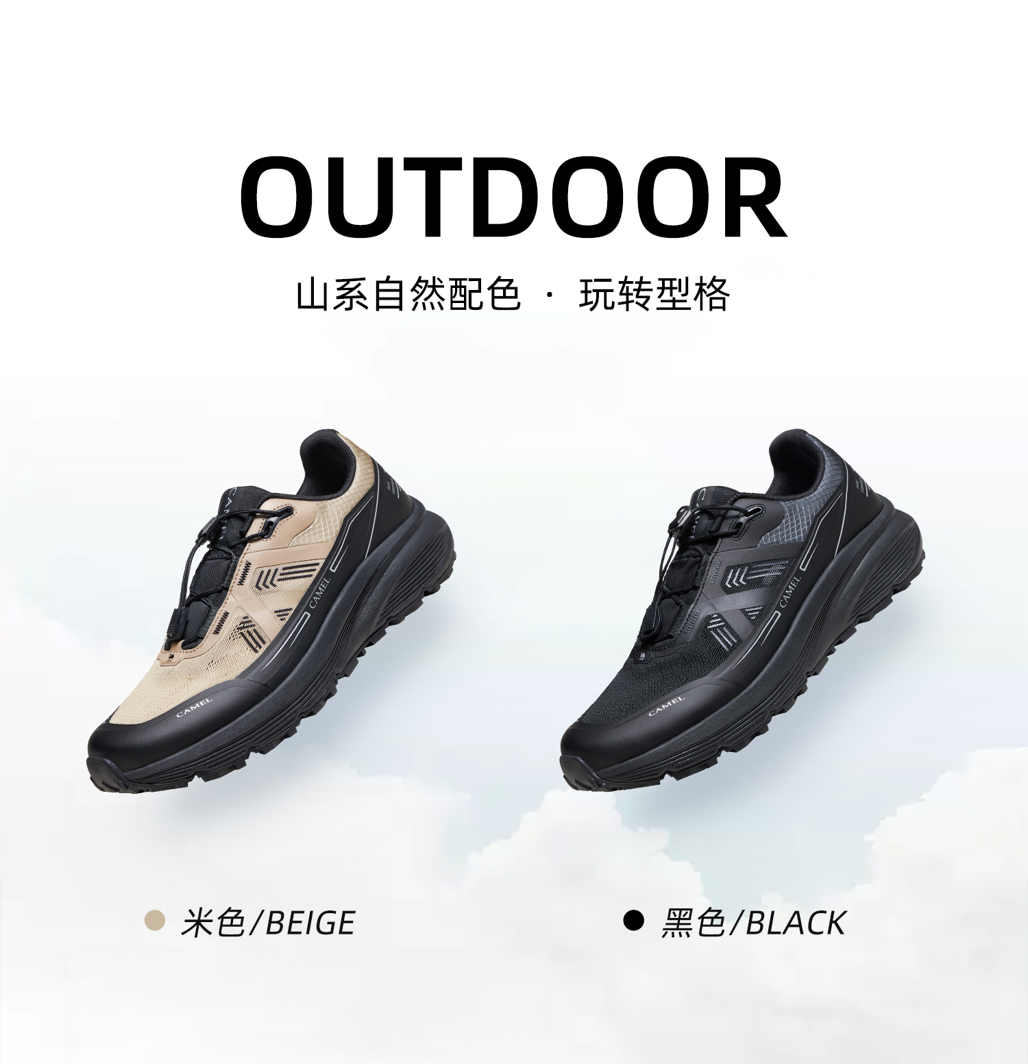 駱駝男鞋2023秋季新款時尚軟底運動男士跑步鞋拼接網面透氣休閒鞋