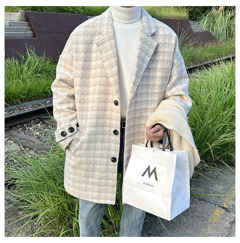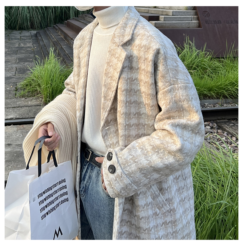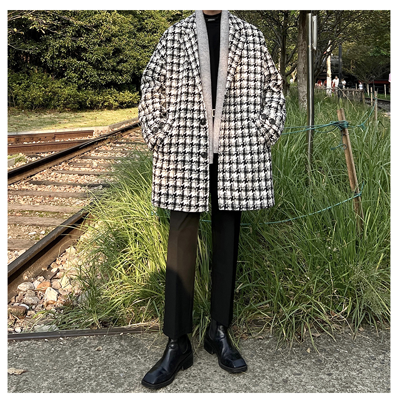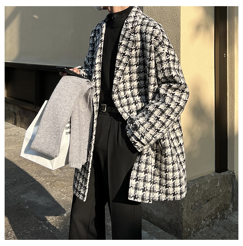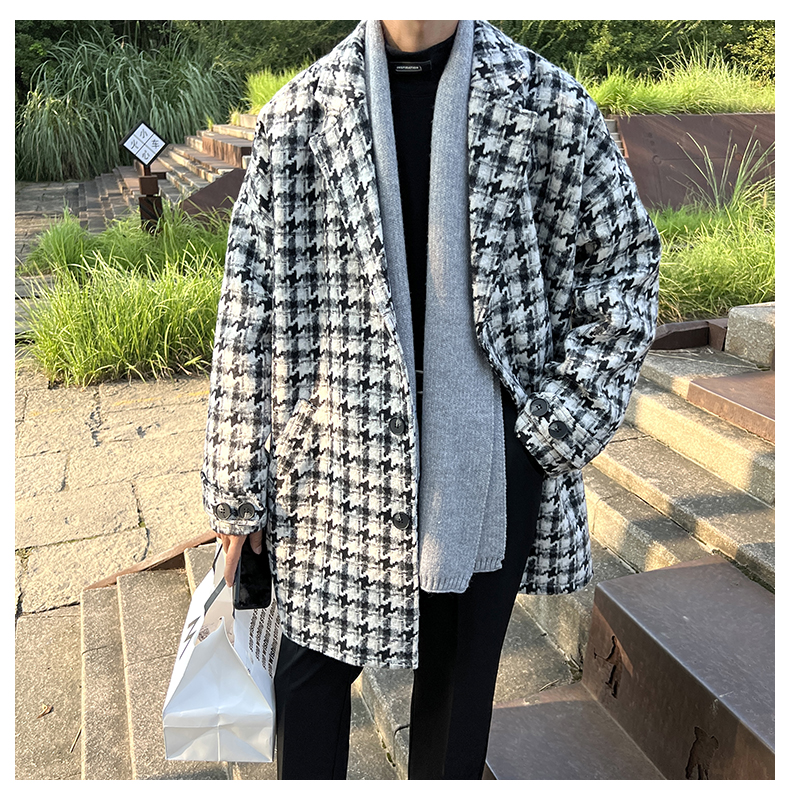 千鳥格中古vintage外套潮牌高級感毛呢子大衣cityboy風衣美式復古