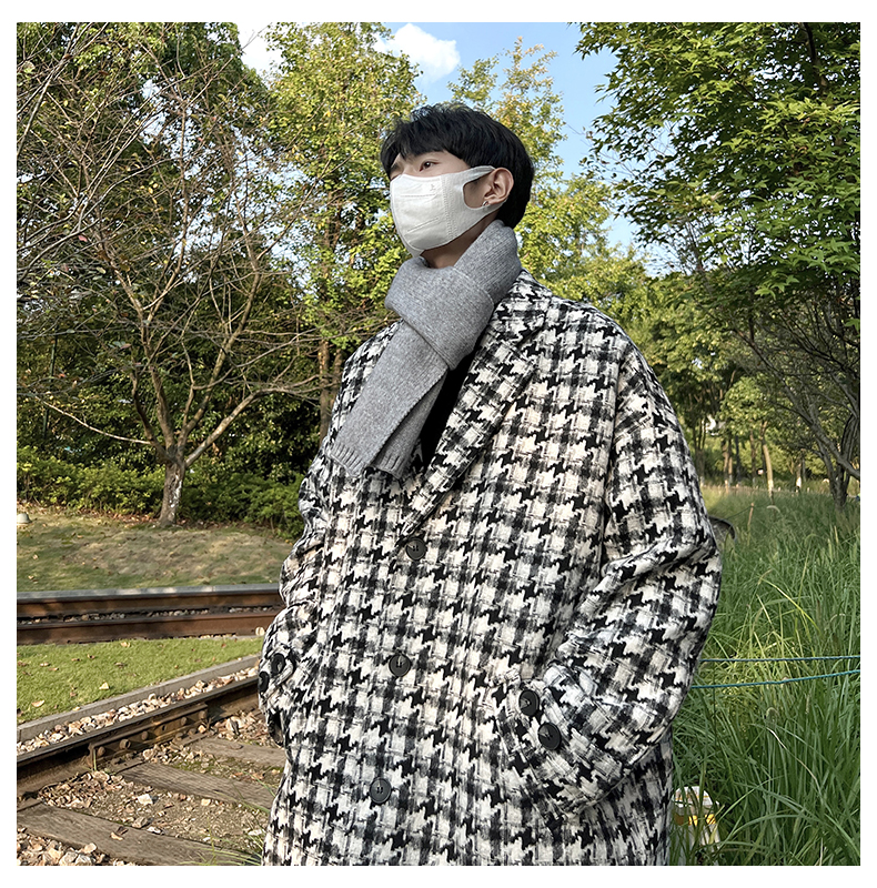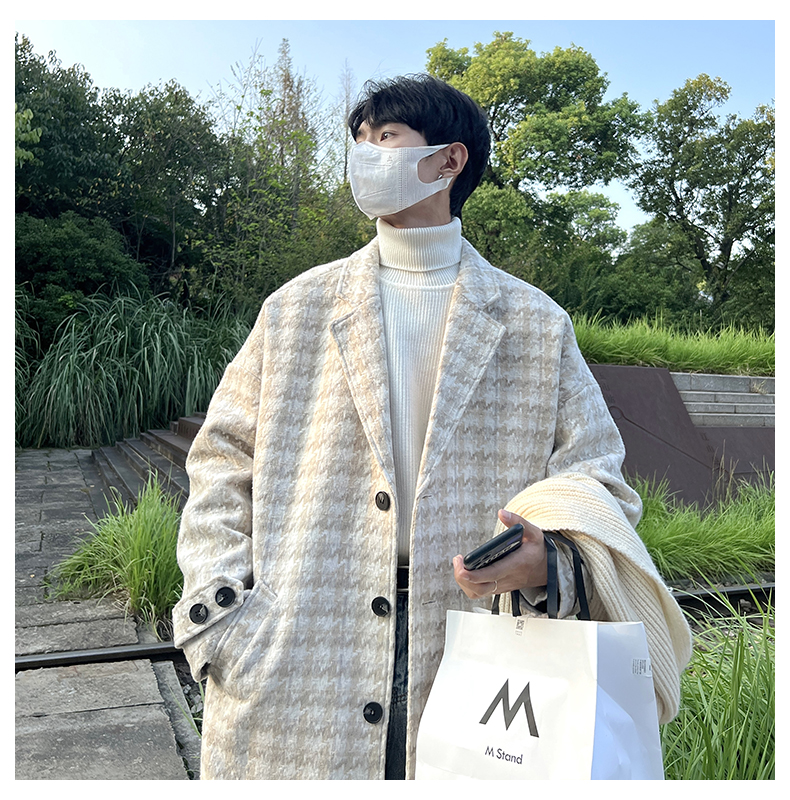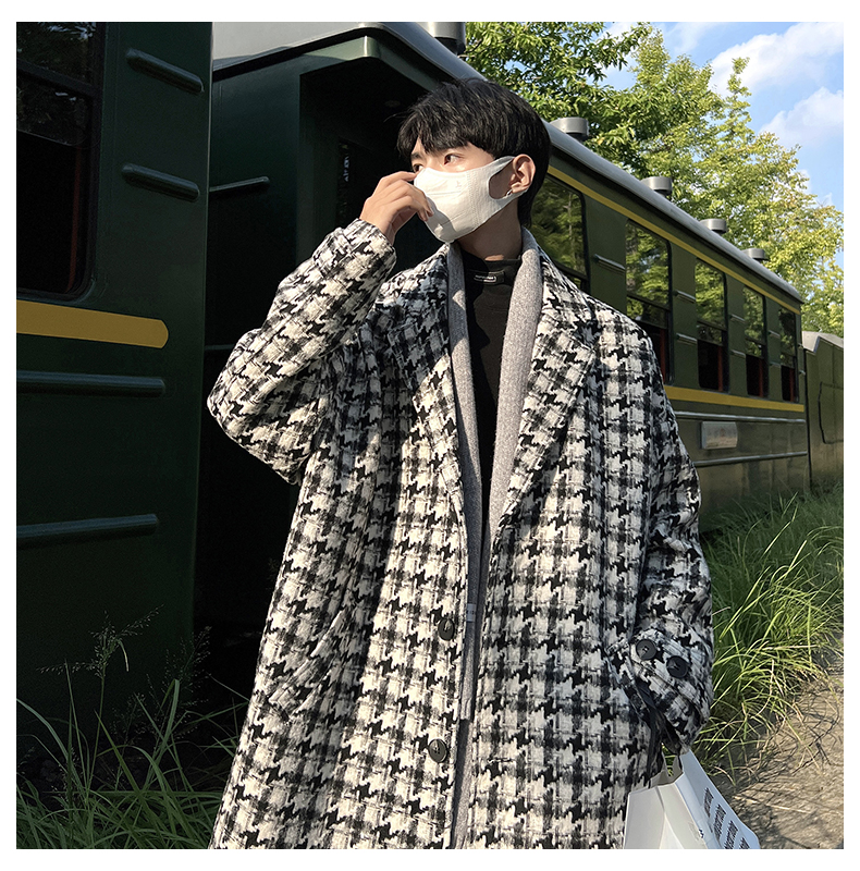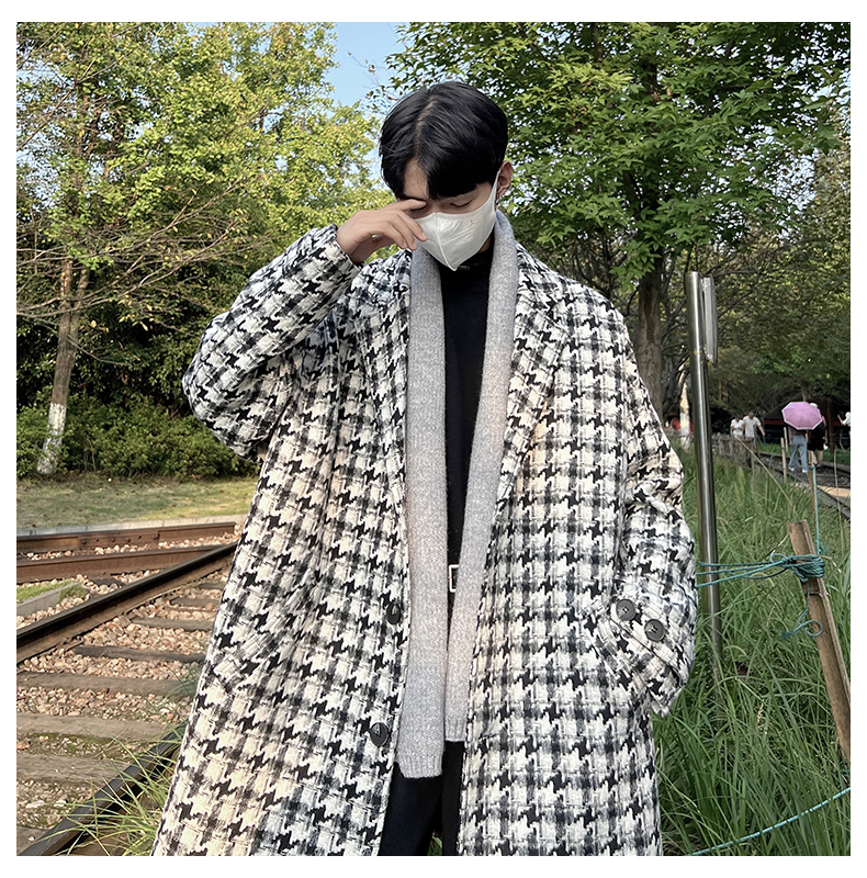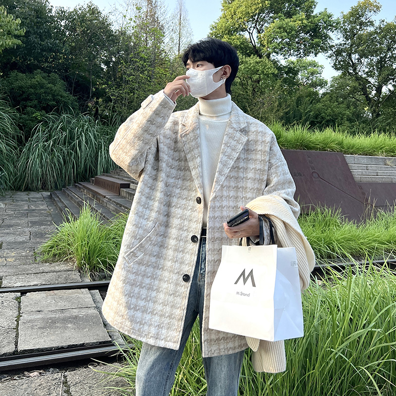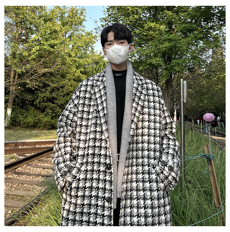 千鳥格中古vintage外套潮牌高級感毛呢子大衣cityboy風衣美式復古