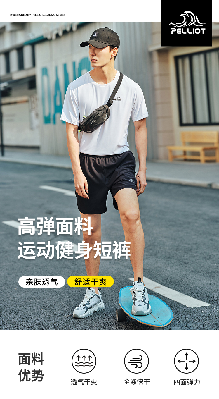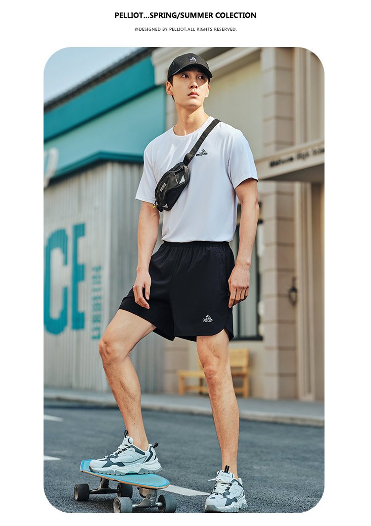 伯希和新款運動短褲男夏季寬鬆透氣休閒五分褲訓練健身跑步速乾褲
