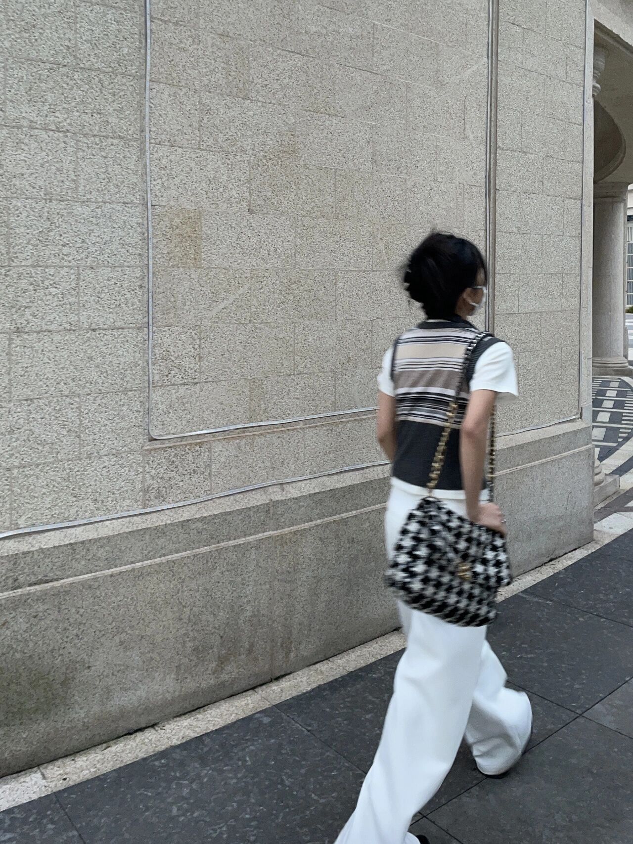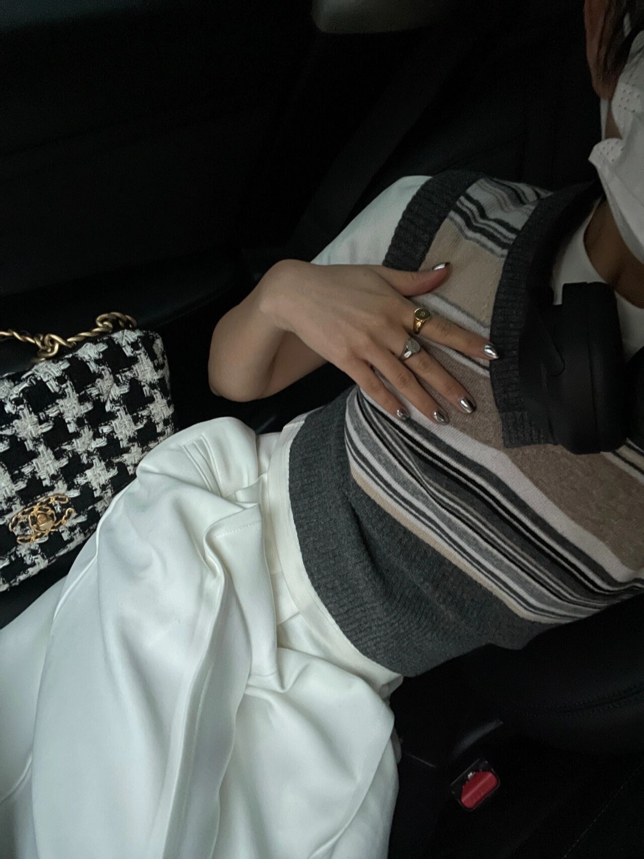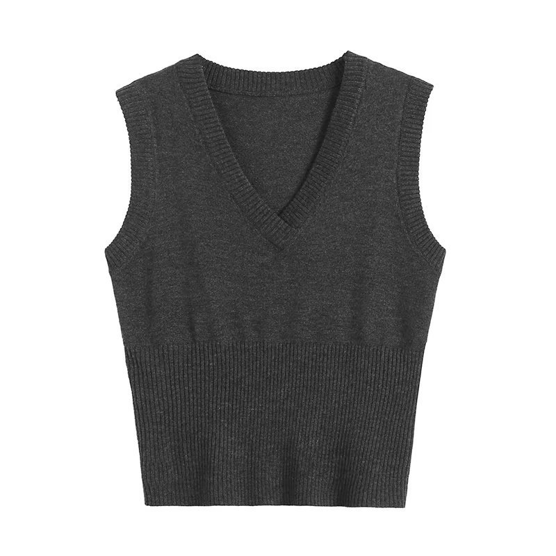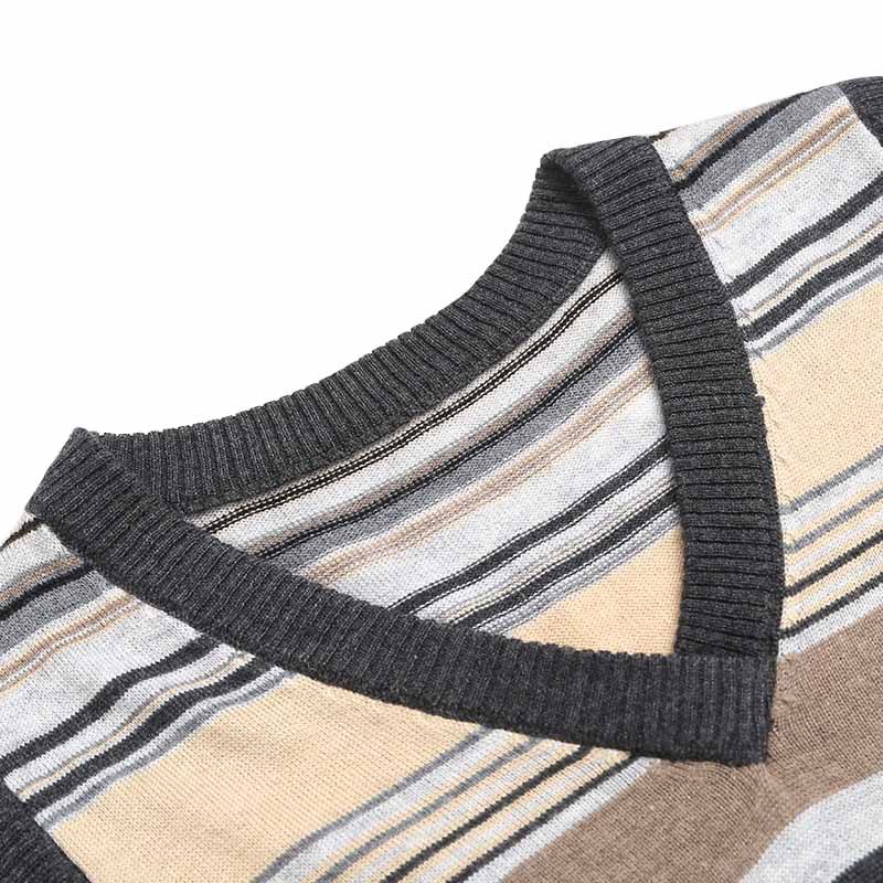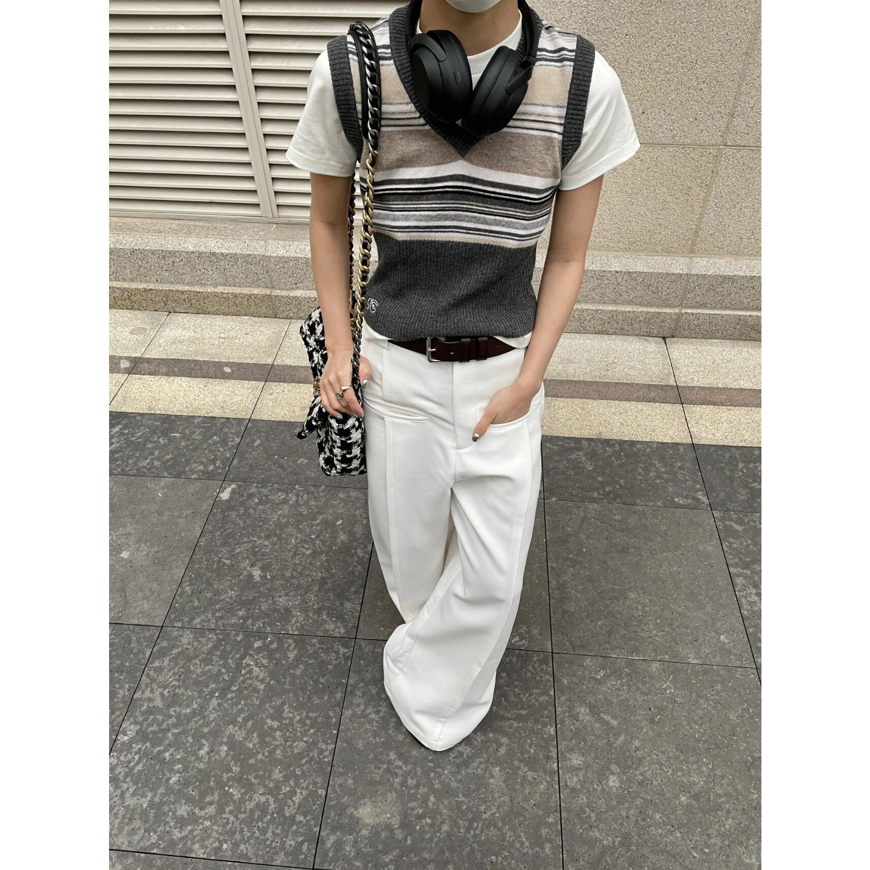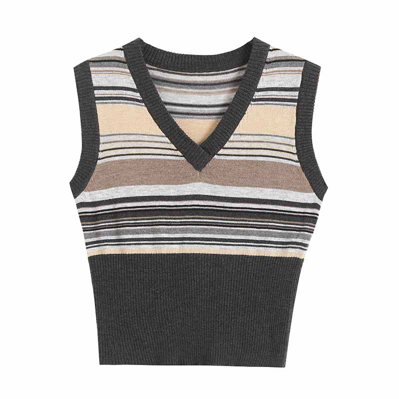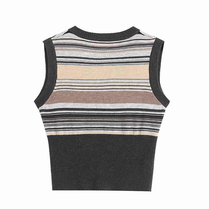V领条纹针织马甲 设计风直角肩修身薄款羊毛马甲短款背心