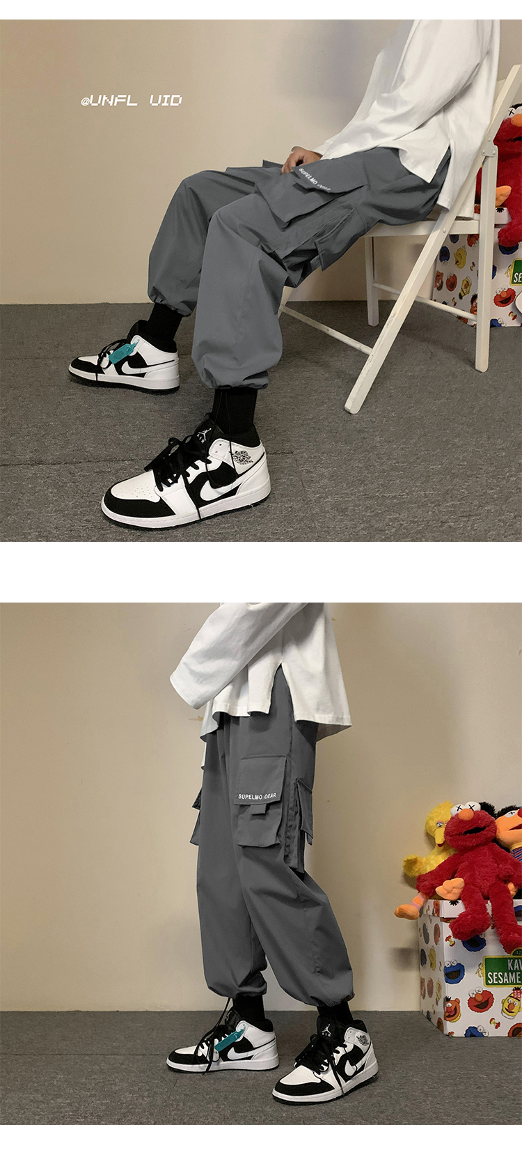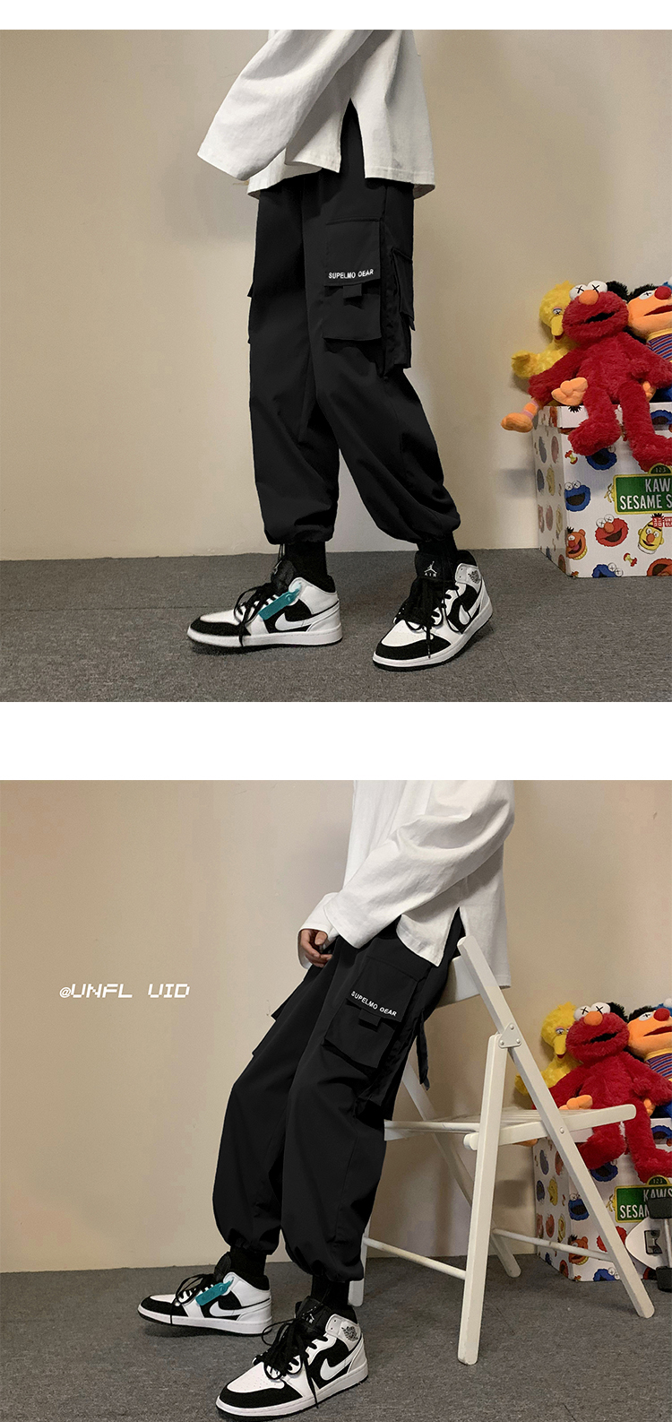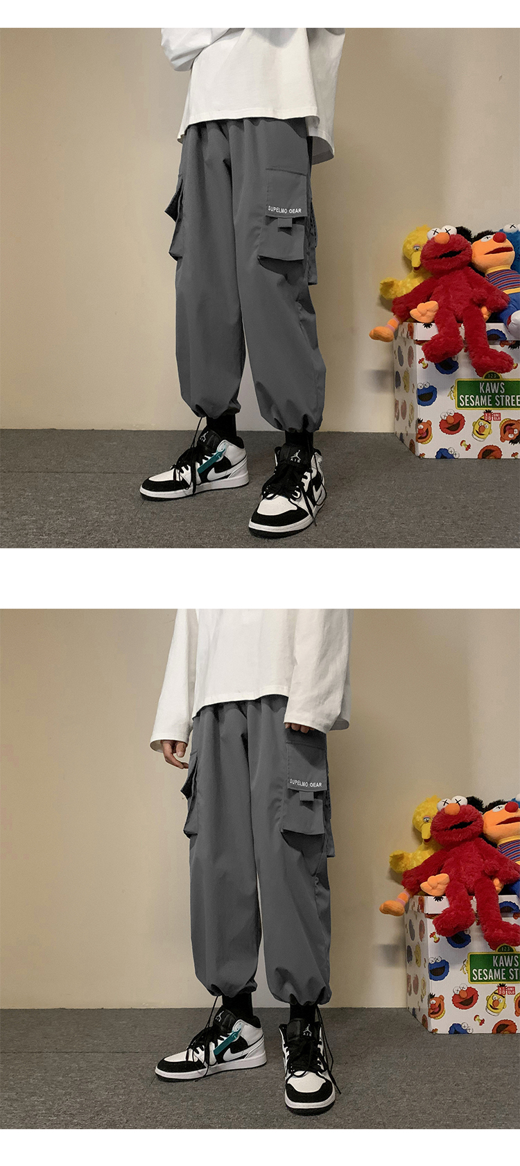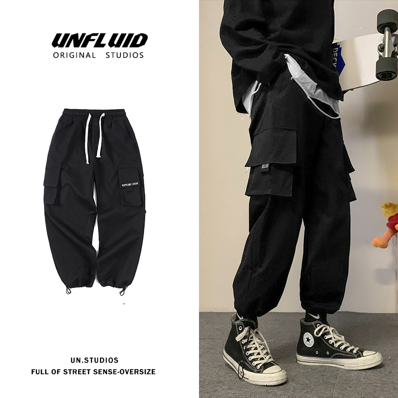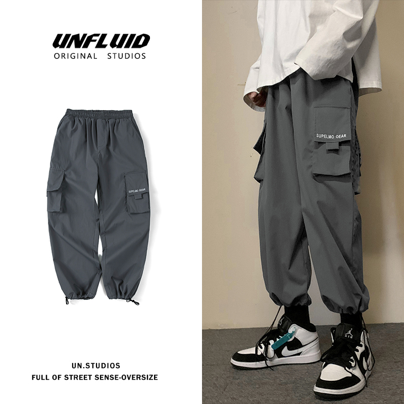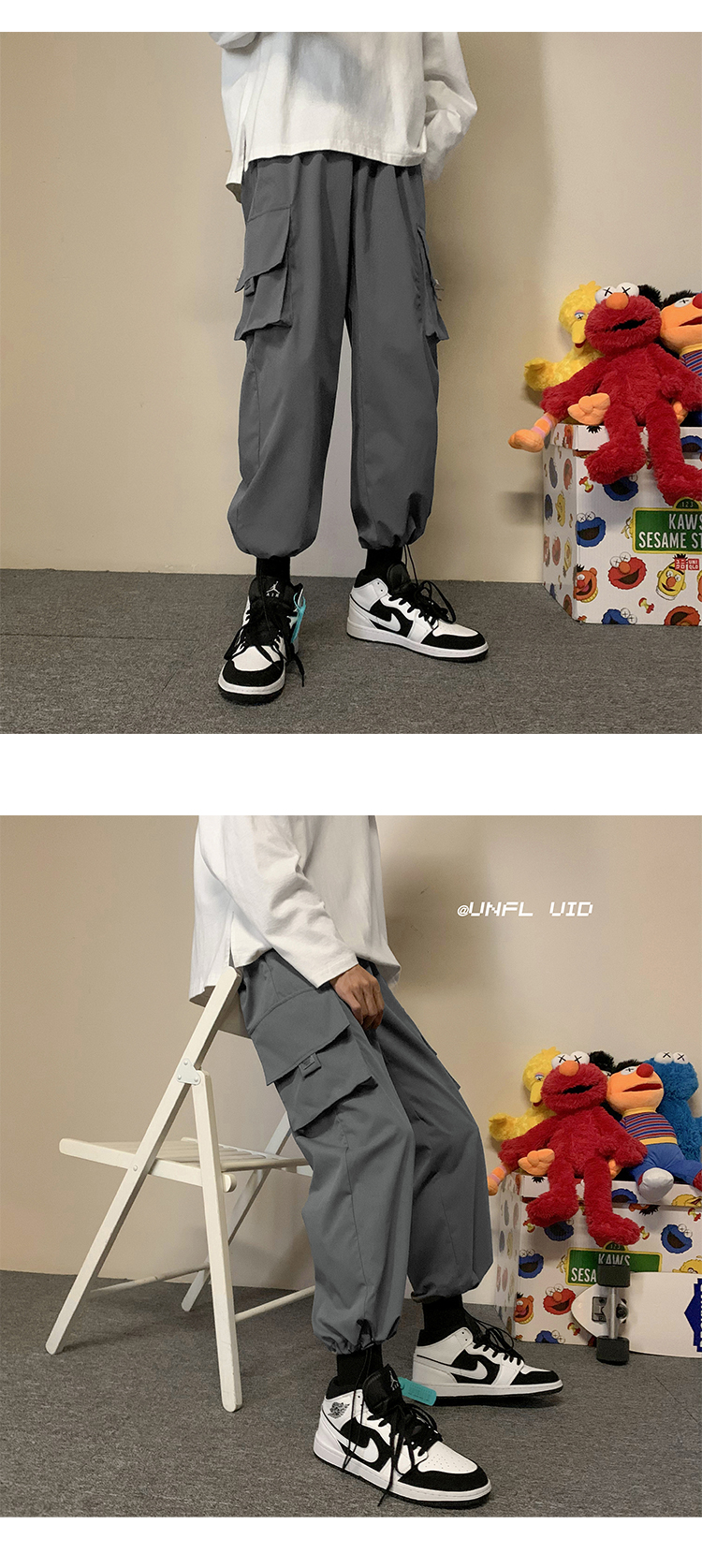 ins機能工裝褲男士潮牌港風寬鬆抽繩束口褲潮流痞帥休閒九分褲子