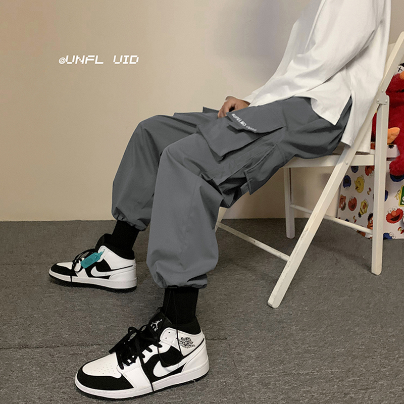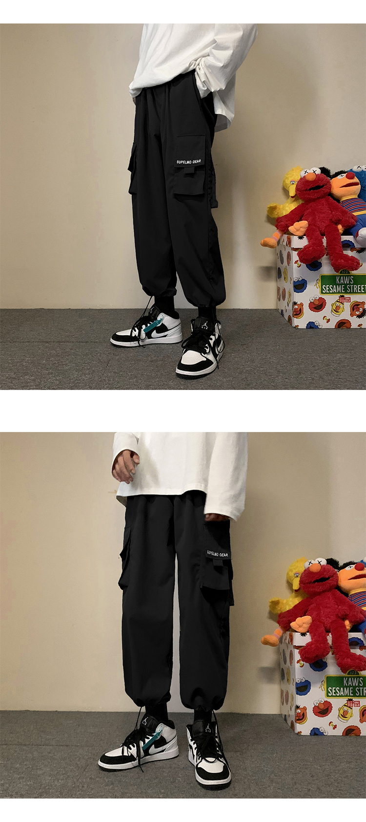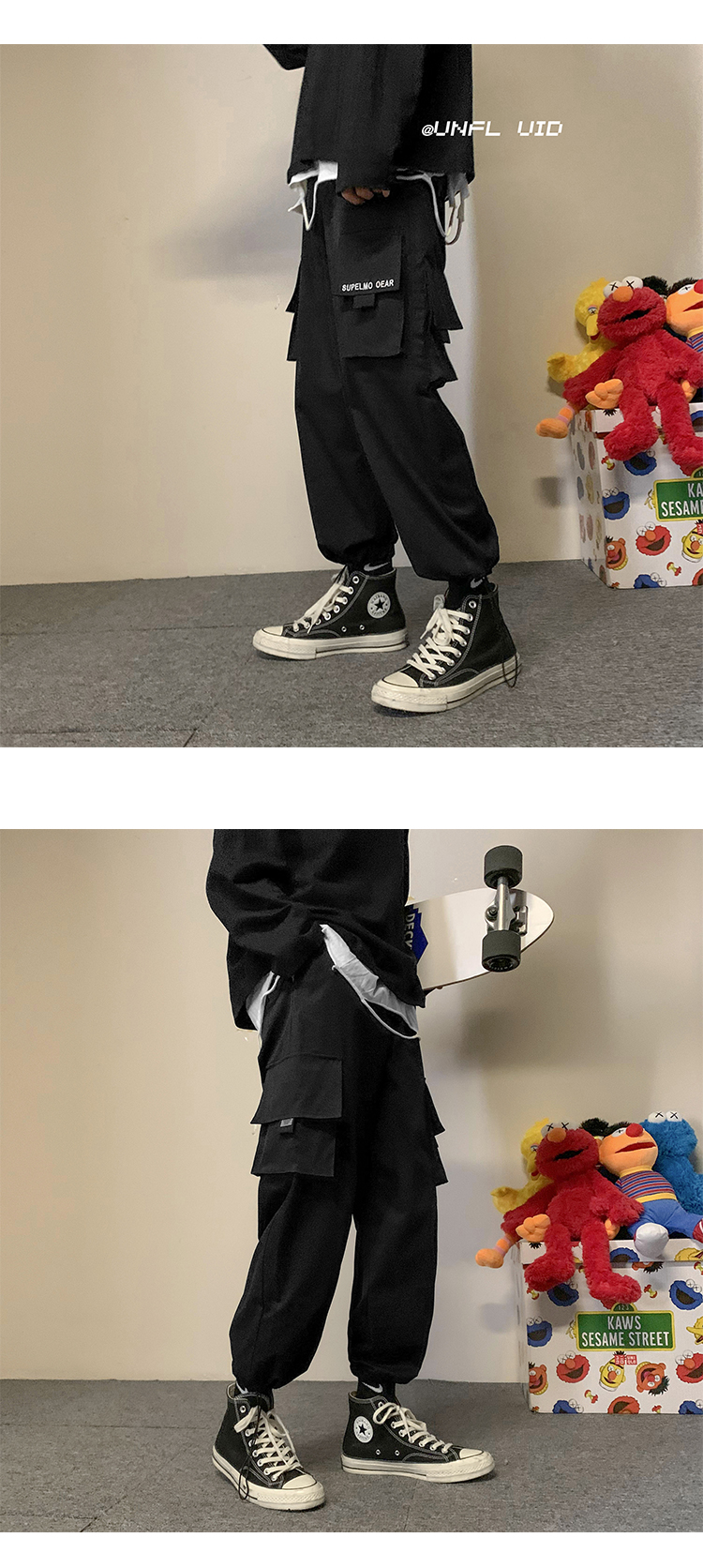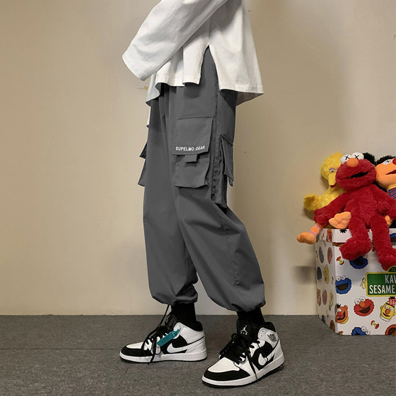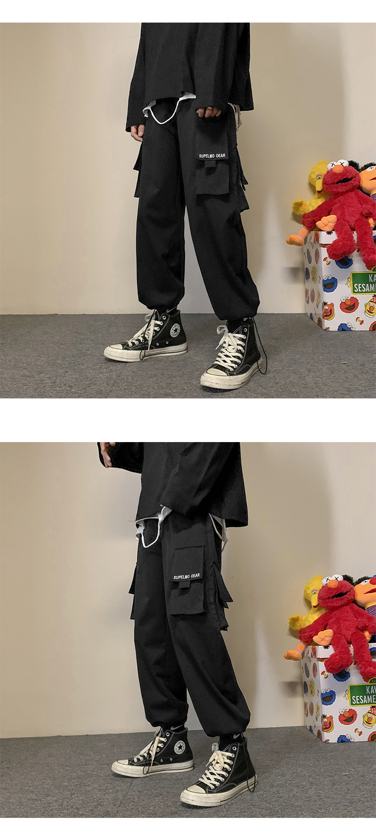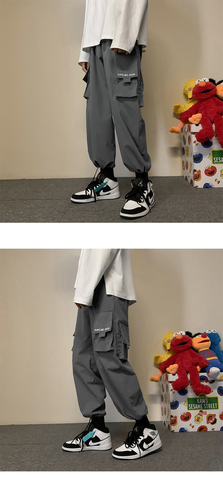 ins機能工裝褲男士潮牌港風寬鬆抽繩束口褲潮流痞帥休閒九分褲子