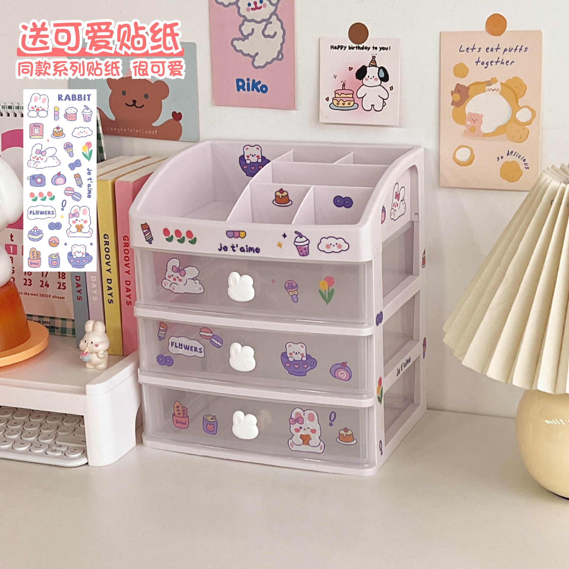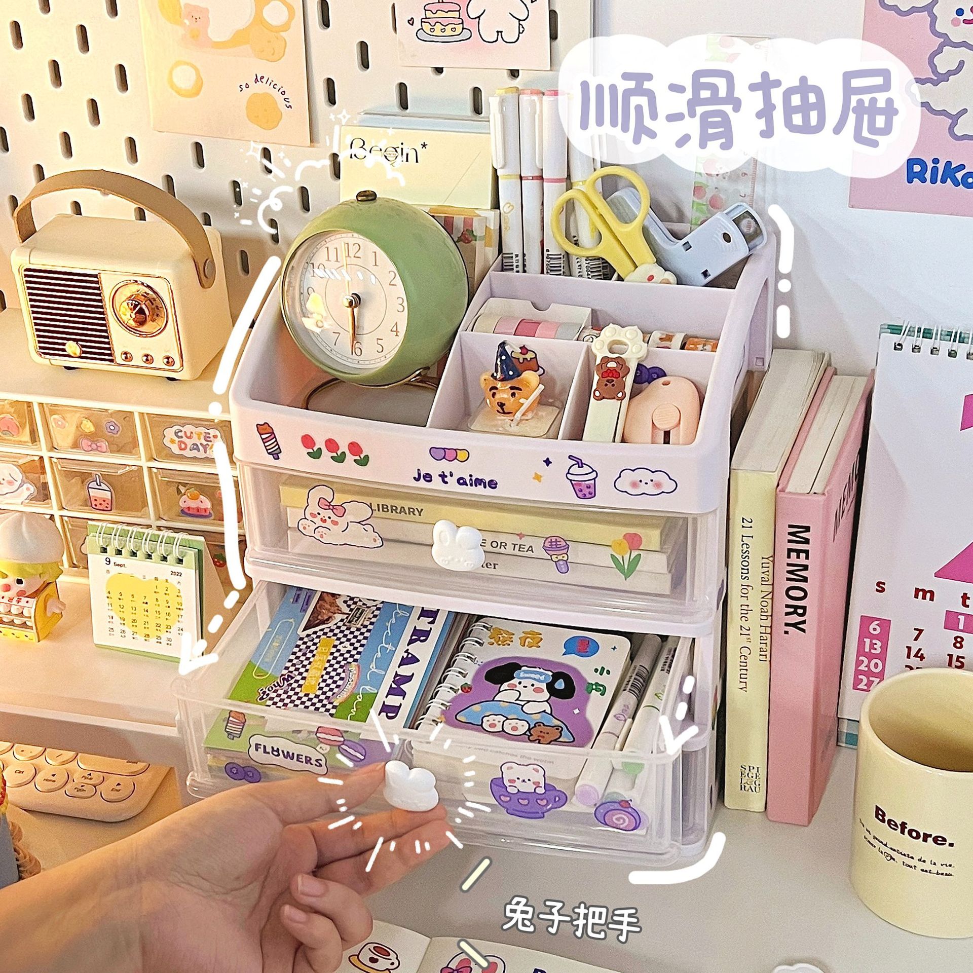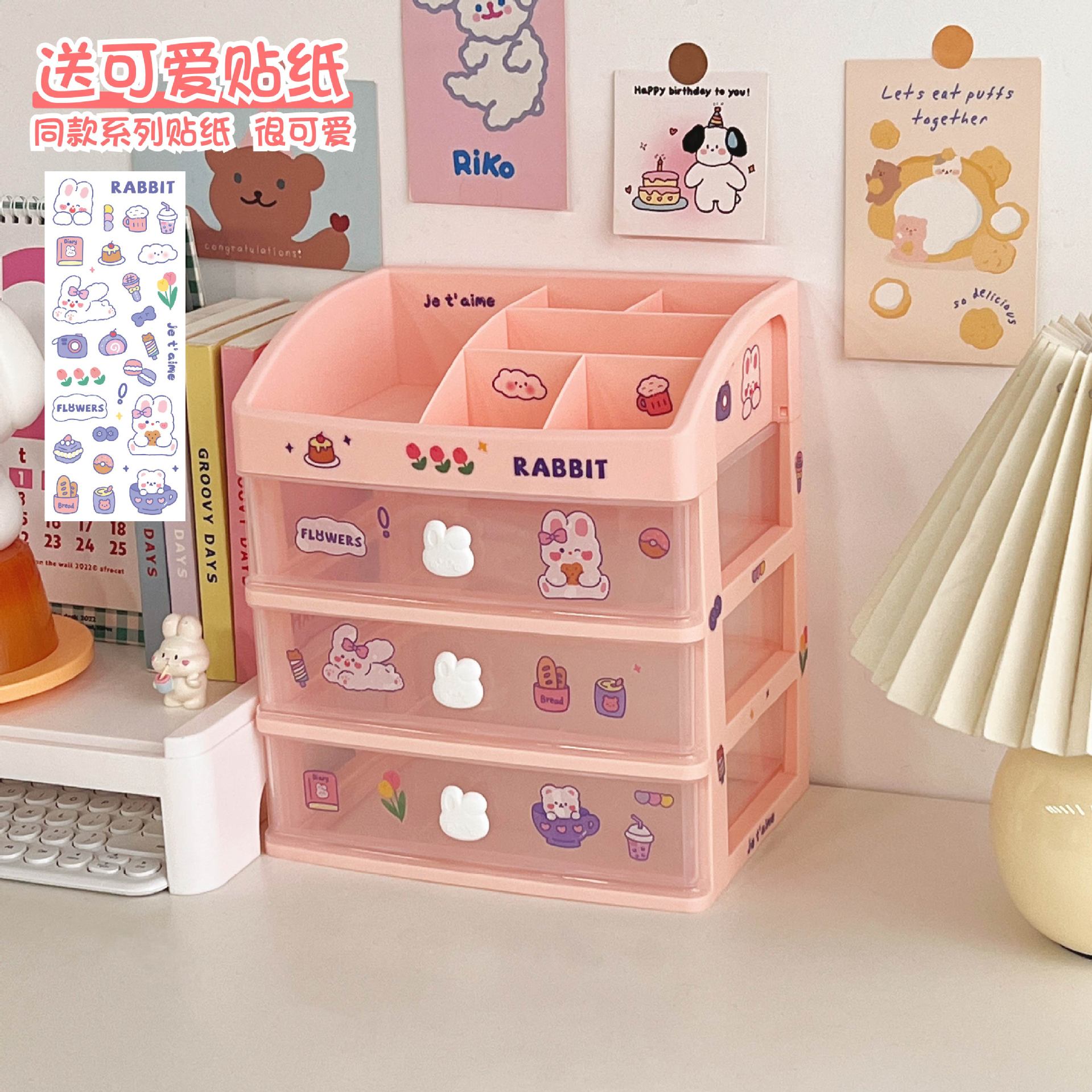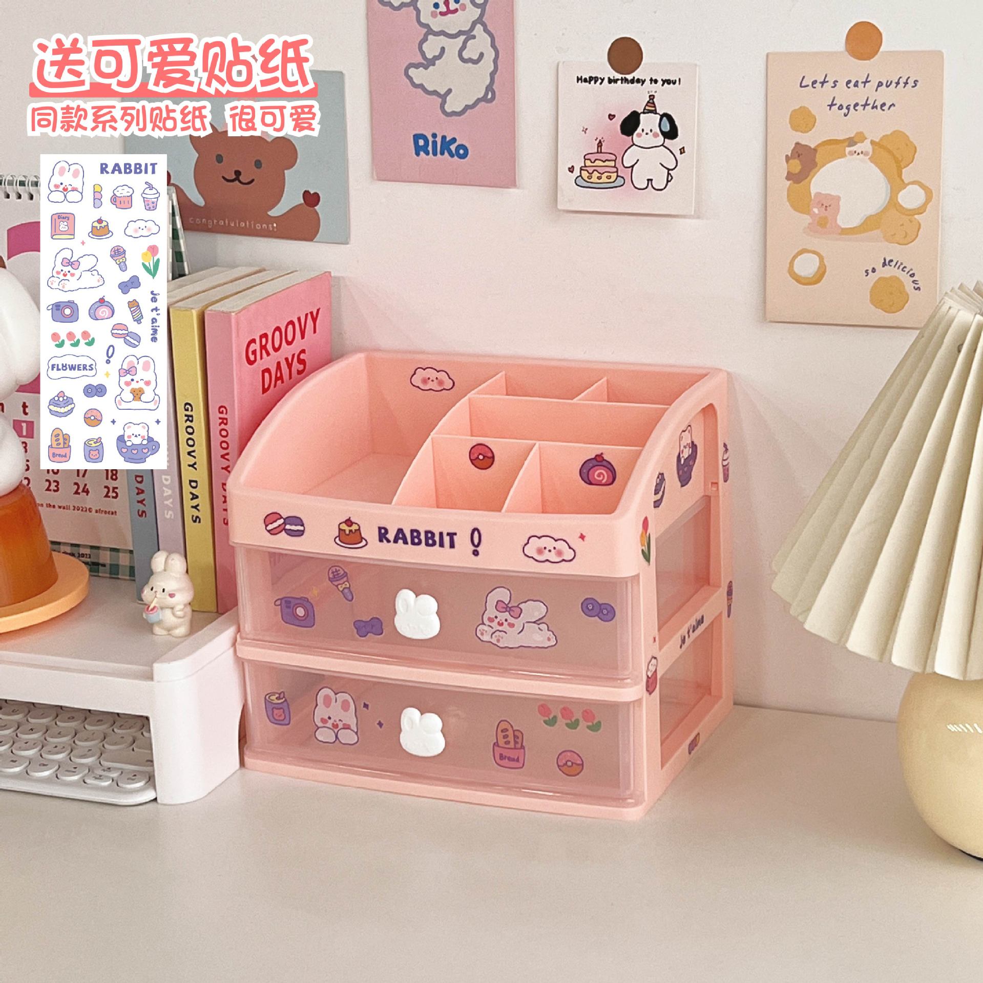 文具手帐学生桌面收纳盒抽屉式整理儿童发饰书桌上手账笔筒置物架