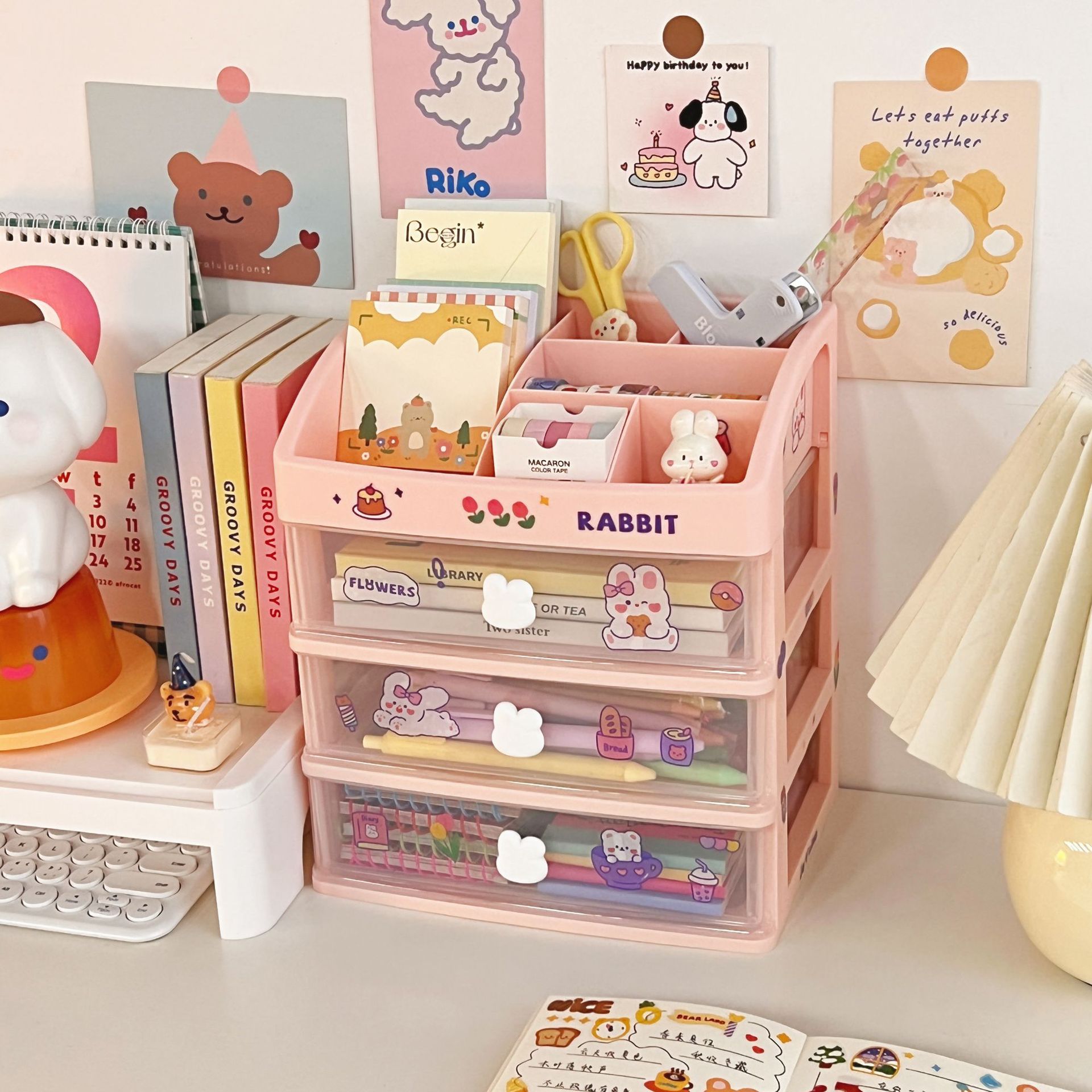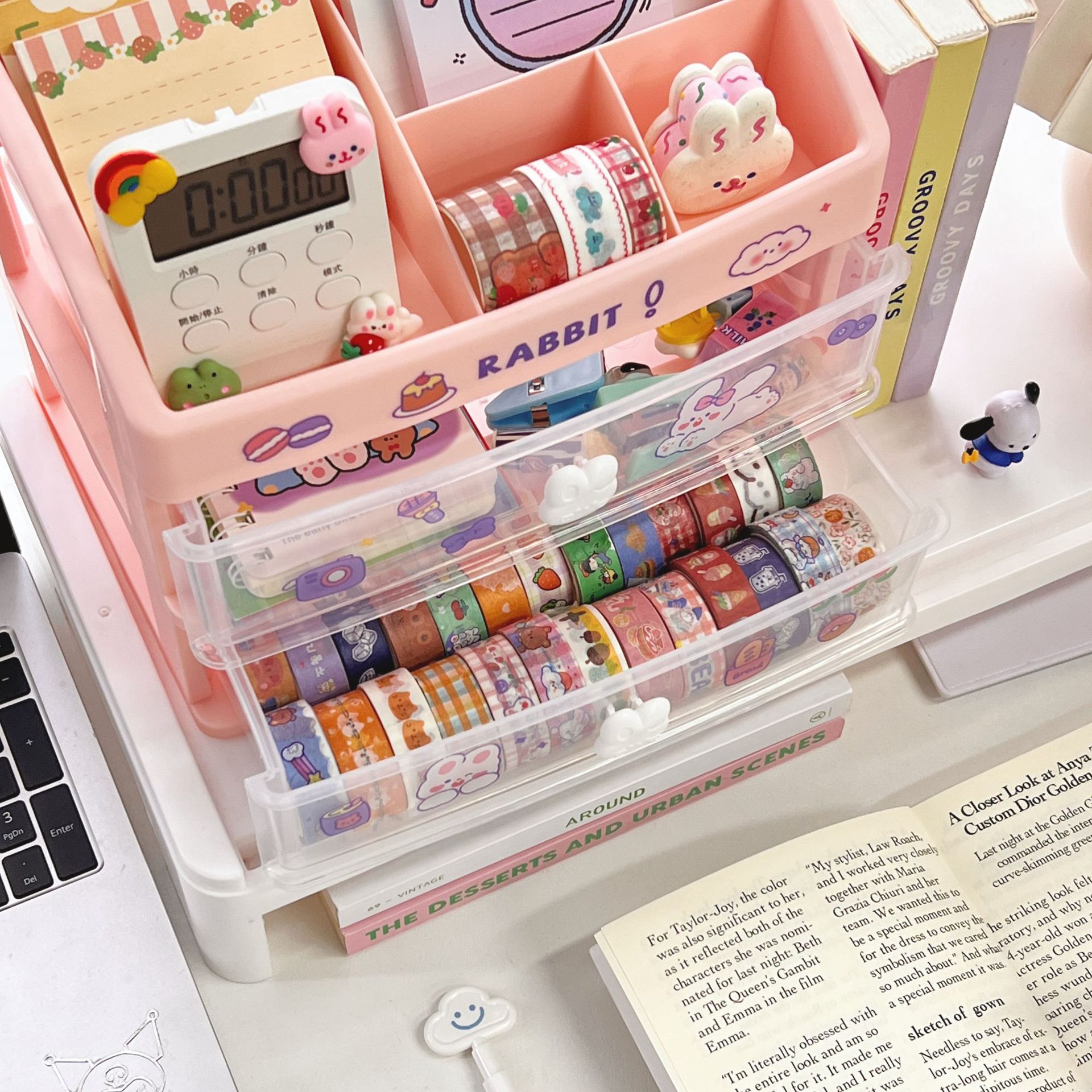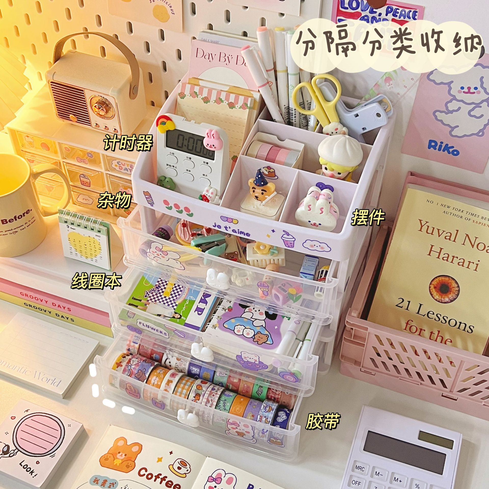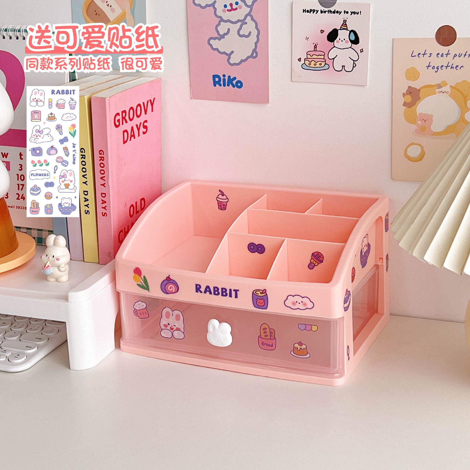文具手帐学生桌面收纳盒抽屉式整理儿童发饰书桌上手账笔筒置物架