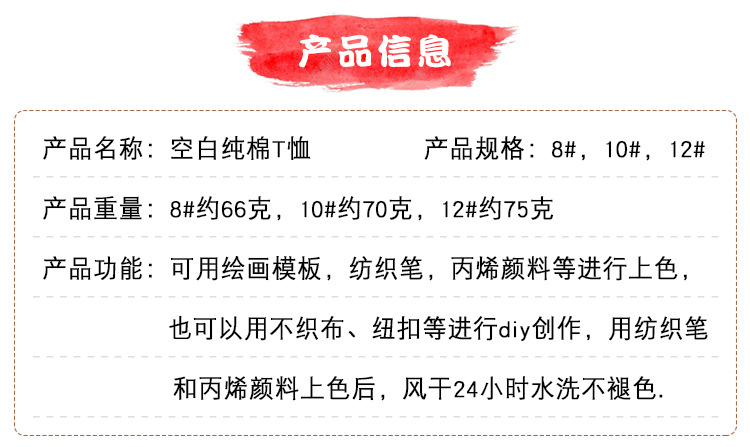 颜色 儿童空白款8码,儿童空白款10码,儿童空白款12码