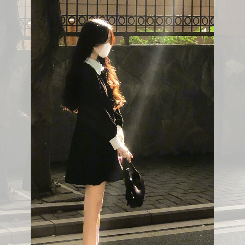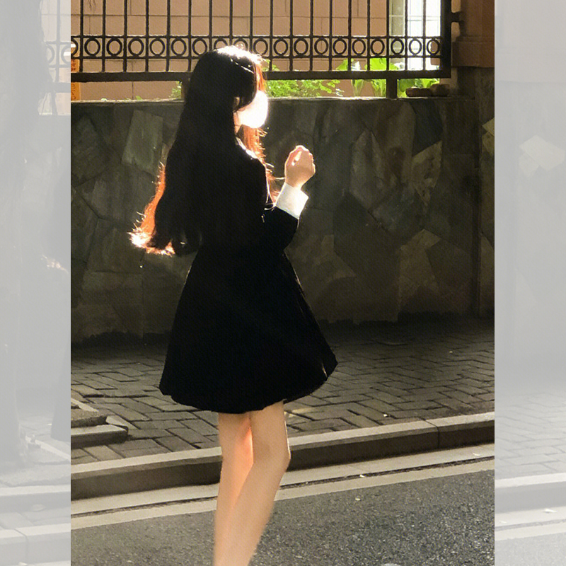 顏色分類 黑色【茶歇/桔梗/茶裏茶氣別致/氣質/早春季/長袖/收腰/溫柔赫本學院風/顯瘦/鹽系穿搭/古著vintage/a字/公主/質感/春裝女款2023年新款女裝】