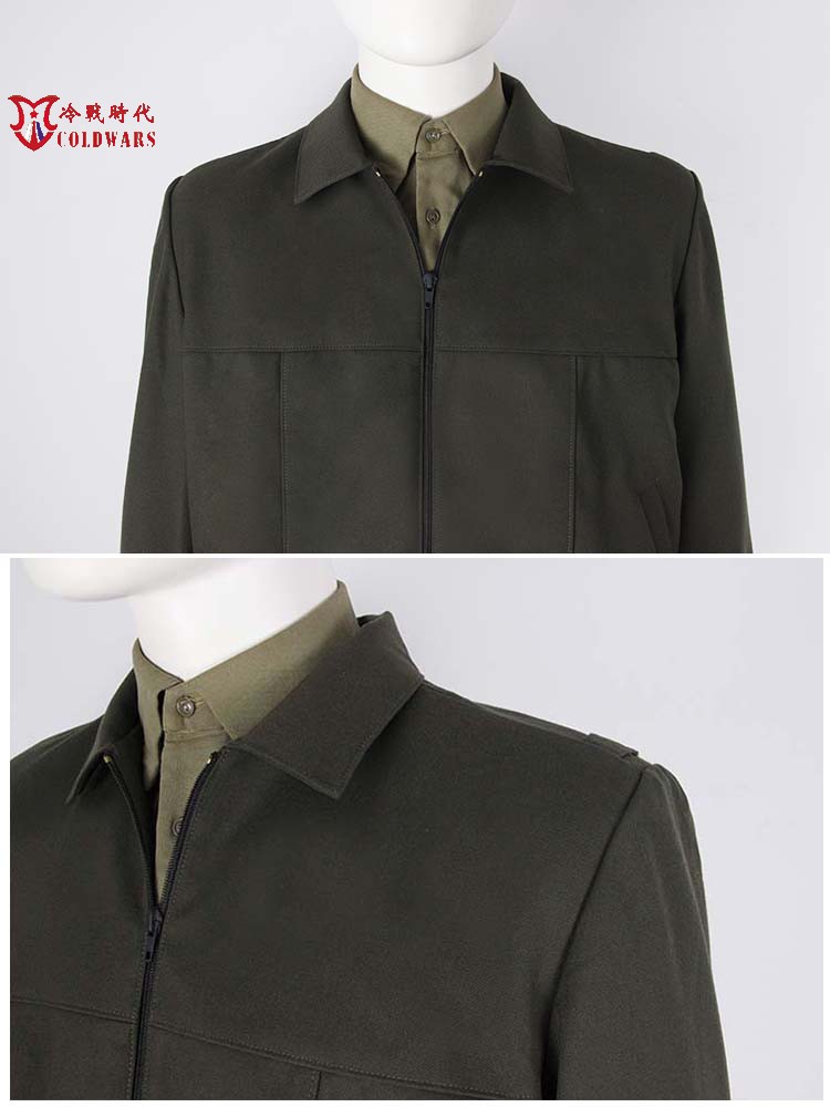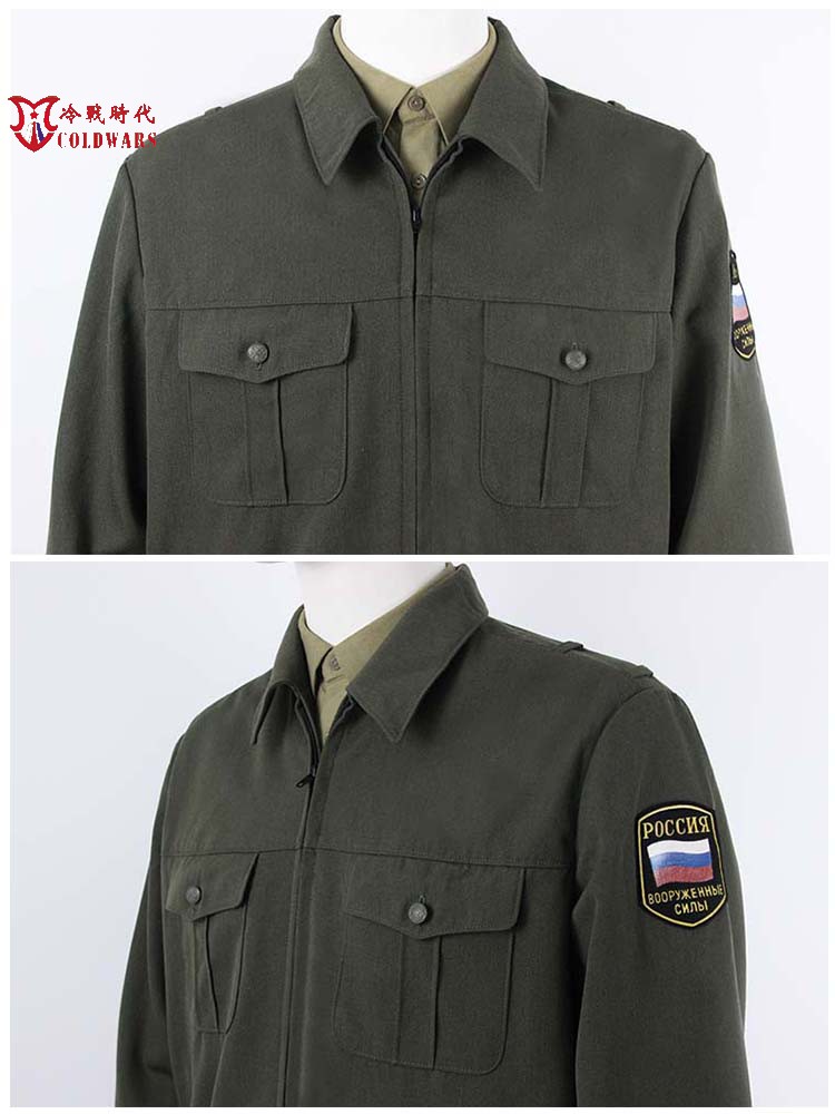 j夹克总体版型继承了苏军M81/M88条令中军官夹克式野战常服版型,为带松紧收腰的拉链前门小翻领夹克,上身简洁干练。里面根据不同场合要求可以搭配衬衣、毛衣等内衬。衣领为小翻领,前门拉链到头,可以通过拉链调节翻领大小,达到美观效果。肩上有肩章袢,可以搭配袢式常服肩章,店内销售的现在俄军的勤务肩章也可以搭配进去,这款正式现在俄军勤务服的鼻祖。97版军官夹克胳膊上的俄罗斯国旗臂章,是这个版本的一个专有特征之一,注意和早期版本不同,这个臂章中的俄罗斯国旗是飘动状态,这也是分辨94和97条令常服的一个重要区别。夹克的胸前有两个带盖贴兜,兜盖有纽扣固定。97条令夹克的所有扣子都是带有俄罗斯双头鹰徽的保护色塑料扣,这也是辨别97条令的一个重大特征,此时的俄军开始摆脱苏联解体后独联体时代的混乱,逐步恢复正规化。请注意,由于年代相对较久(目前发现最晚的生产年份也是2007年),个别塑料纽扣可能会出现老化变脆情况,此为极个别事件,属自然老化随机发出,请周知。大家可以考虑购买店里的金色双头鹰小扣对于整件衣服上的扣子进行替换,俄军军官作为机关常服夹克穿着时候也会采用金色扣,配金色肩章星,详情请询店内客服。除前门拉链外,在前片两侧还有两个斜插的拉链口袋。下摆处,有松紧弹力收腰。袖口为系扣式收口,有两粒纽扣收紧。内衬为人造丝全衬。请注意:不同厂家不同年份不同批次的内衬布颜色皆有不同,因此内衬颜色随机发出,以收到实物为准,请周知。