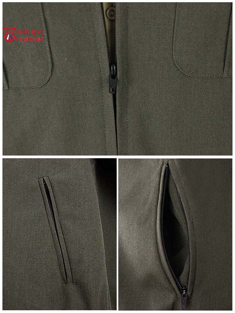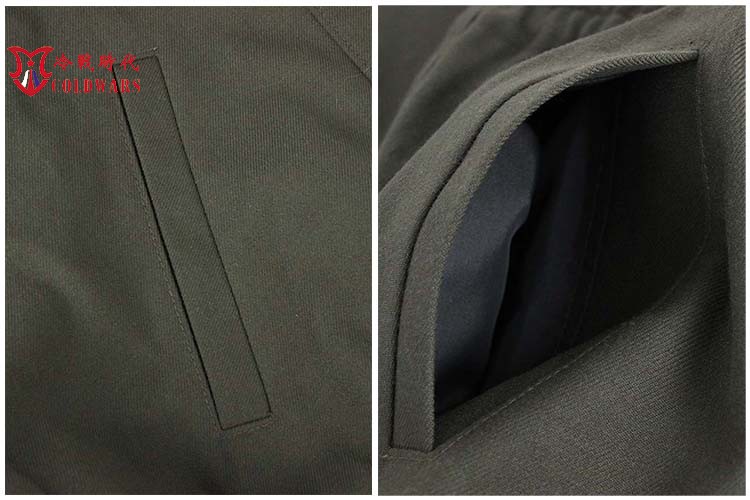 下面介绍一下,91M条例高级军官版夹克,这是一个比较少见的品种,这个版本的夹克应该是发给中校和上校专用的版本。和普通军官的版本主要区别在于是使用了更为高档的毛呢面料,内衬为整体人造绸内衬,以彰显身份不同。在版型上和普通军官版没有太大区别。91M高级军官版内衬。请注意:不同厂家不同年份不同批次的内衬布颜色皆有不同,因此内衬颜色随机发出,以收到实物为准,请周知。下面介绍另一个大系列,女军官版夹克。女军官版夹克和男军官版夹克在基础版型和用料材质等都相同,所区别不同是没有胸兜,前片设计了两道垂直的装饰下缝。女军官版夹克也根据不同年代批次等分为不同几种。下面以94条例女军官版为例,介绍一下女版夹克的细节。女军官夹克是在M81/M88条例中没有的新事物,夹克总体版型参照了男军官夹克,仅在细节上进行了微调,为带松紧收腰的拉链前门小翻领夹克,上身简洁干练。女军官夹克的主要区别在于取消了两个胸兜,并增加两道垂直向下的装饰性车线,更加凸显女性曲线。前门拉链到头,可以通过拉链调节翻领大小,达到美观效果。采用无拉链的普通斜插口袋,是女军官夹克的一大特征。袖口为纽扣收口,纽扣为苏军徽记图案保护色塑料扣。下摆有弹力收腰。内衬为人造绸半衬91M版本和上面94条例版本的区别就是有无臂章,91M版本没有臂章,其他外观基本相同。各种版本的各种吊牌,生产从1990年代初到2000年代都有,时间跨度近20年,各种厂家五花八门,随机发出无法挑选,且纸吊牌很多脱落不保证都有,请周知。