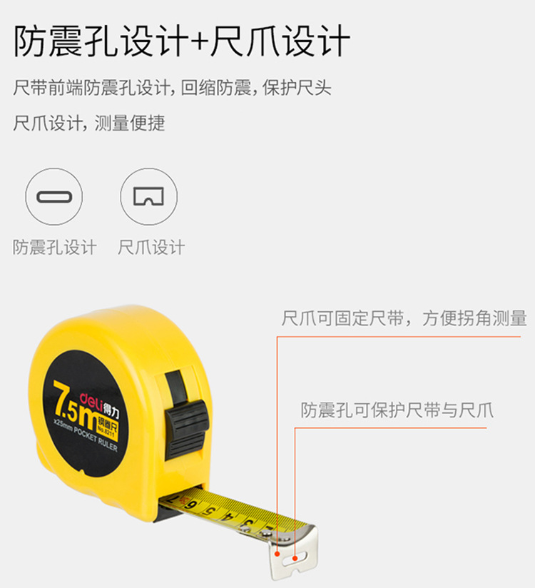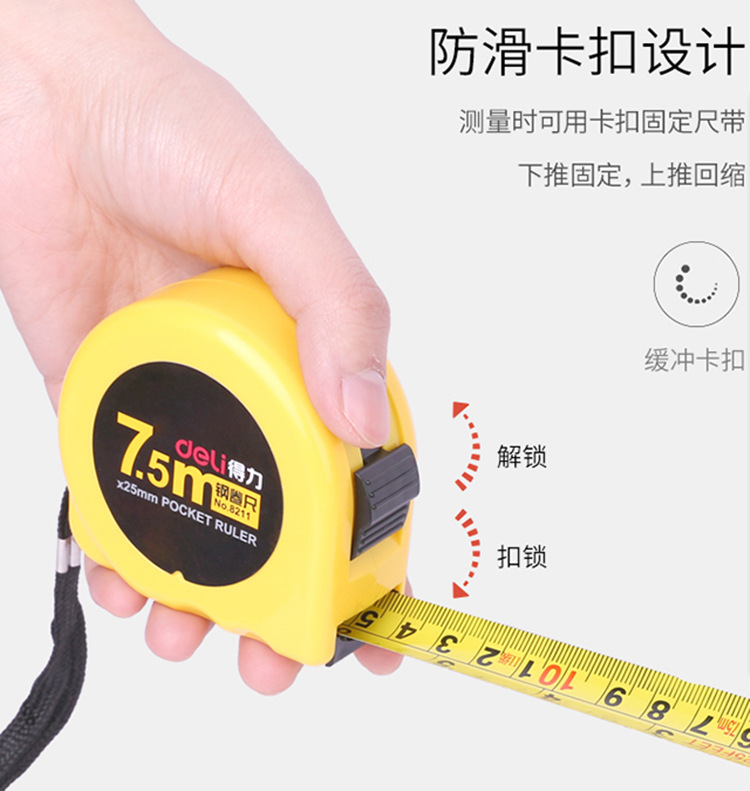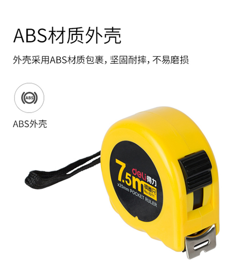 得力卷尺 5米尺子钢卷尺3米7.5米10米2米卷尺米尺盒尺测量高精度