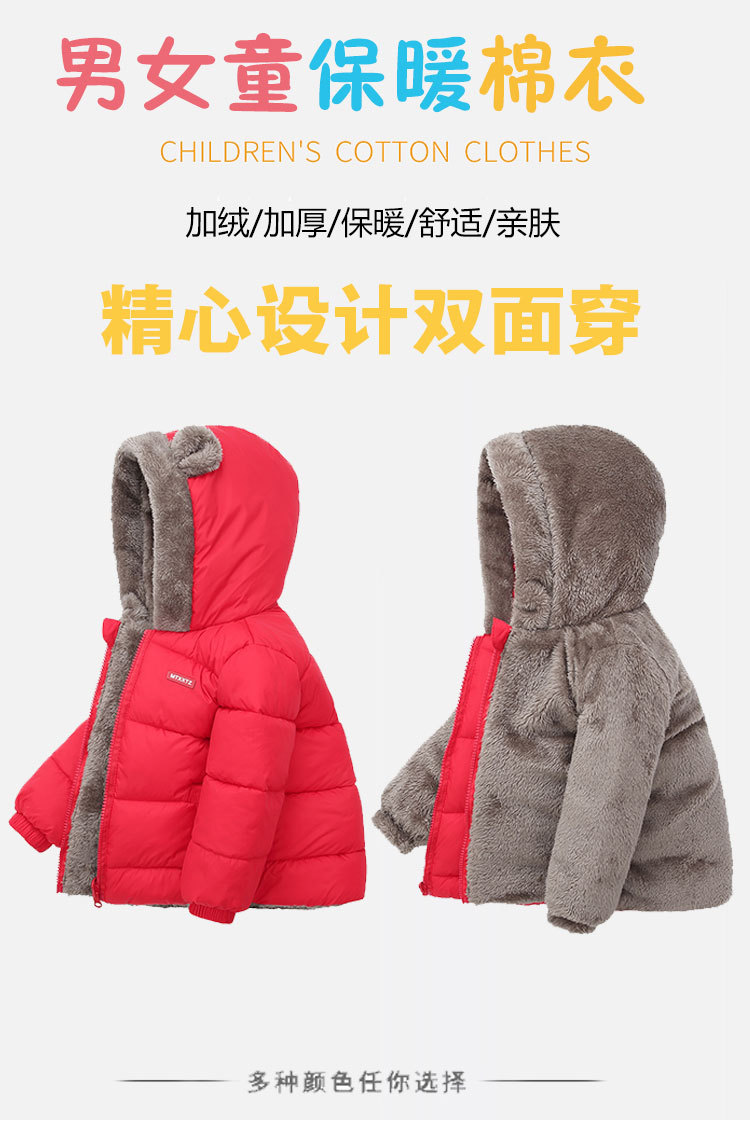 儿童羽绒棉服两面穿冬 反季新款儿童纯色羽绒棉服男女童宝宝短款加绒加厚棉袄连帽外套冬新款儿童纯色羽绒棉服男女童宝宝短款加绒款