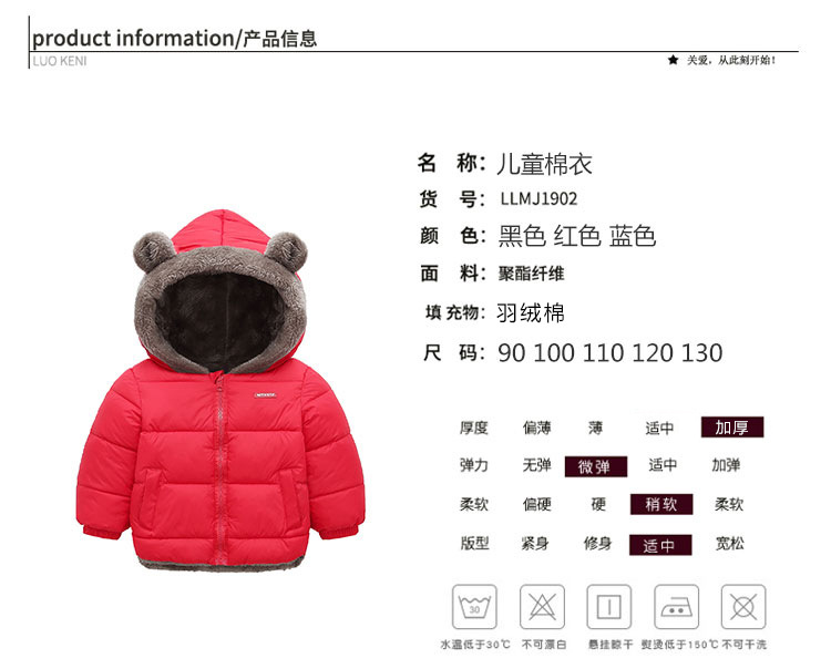 羽绒棉服男童棉袄加厚 连帽外套冬新款儿童纯色羽绒棉服男女童宝宝短款加绒款反季新款儿童纯色羽绒棉服男女童宝宝短款加绒加厚棉袄