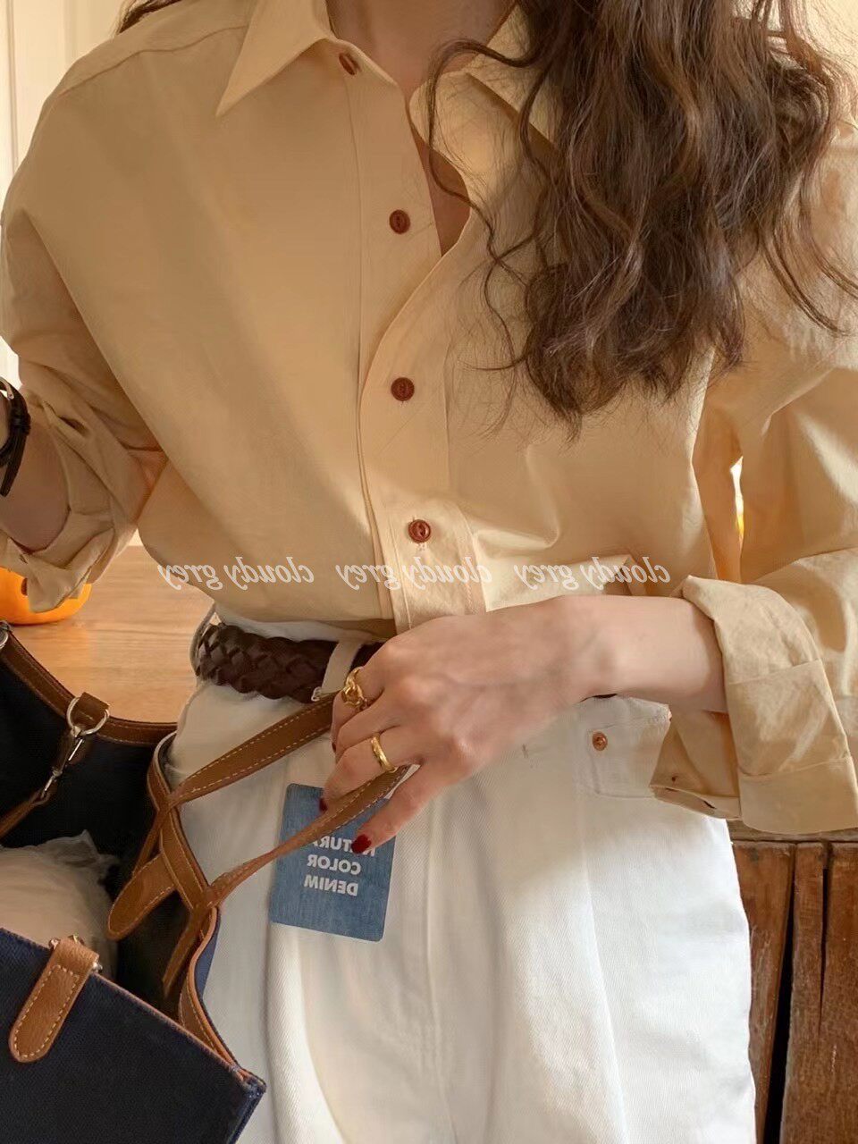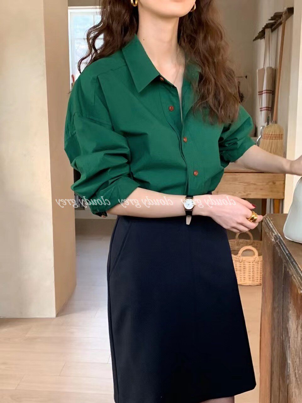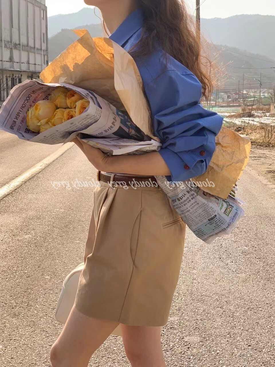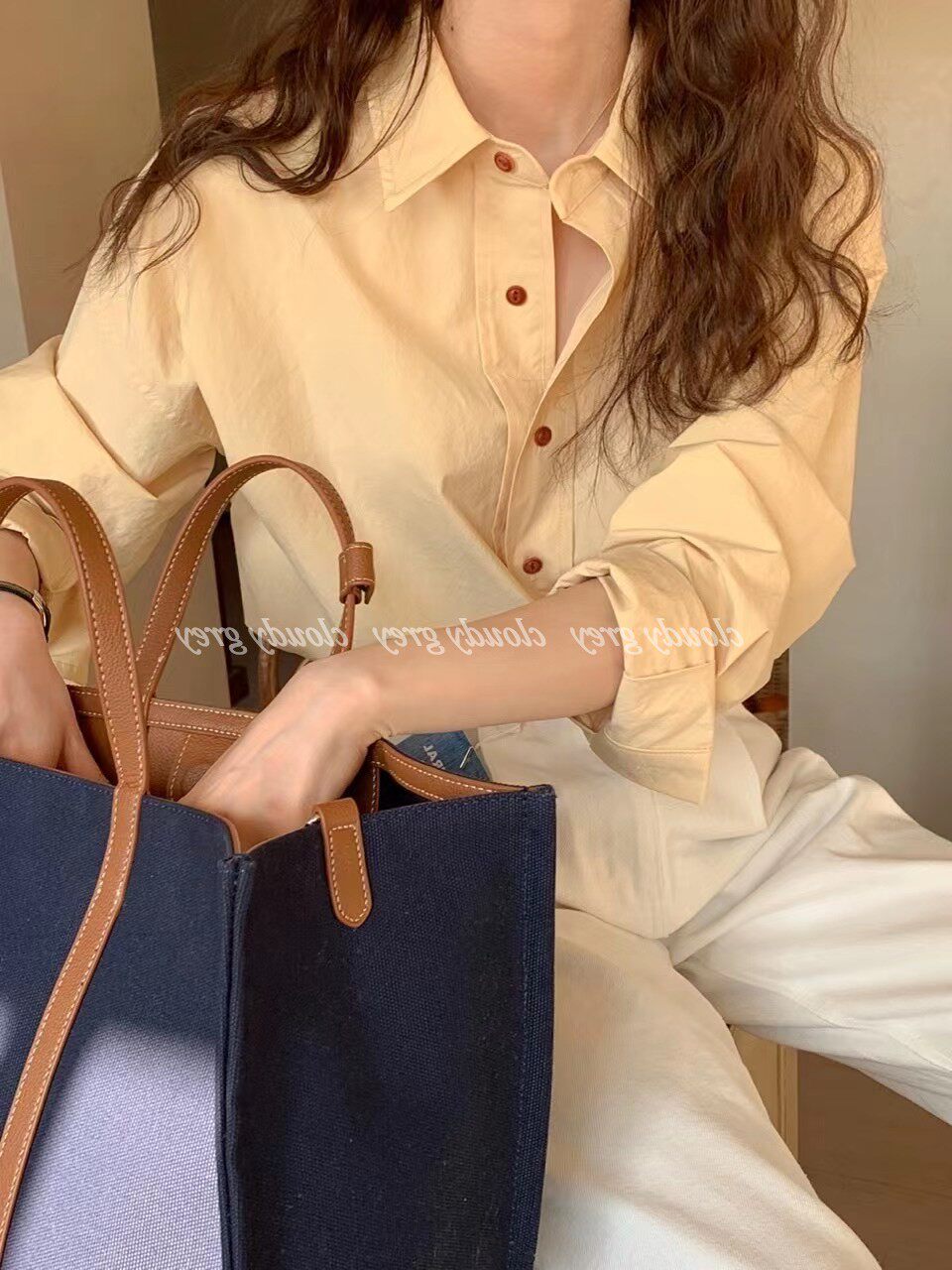 韓版高級感別致克萊因藍長袖襯衫女2023春秋新款純棉寬鬆襯衫上衣