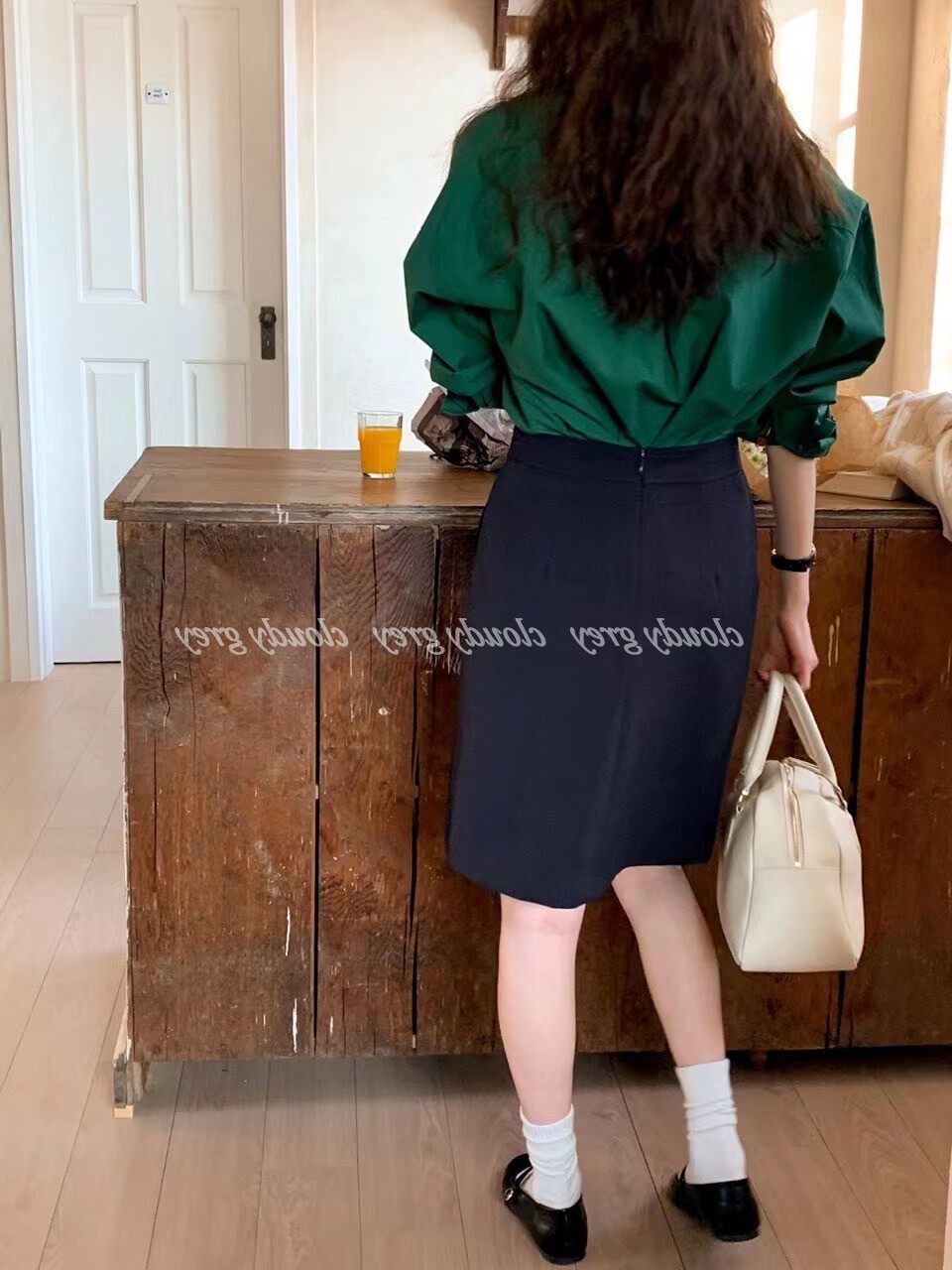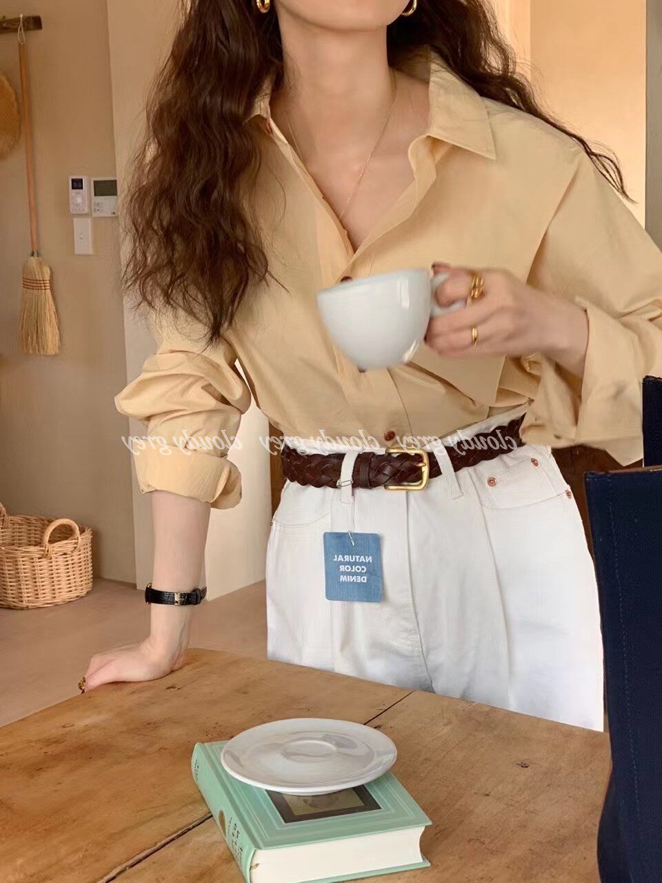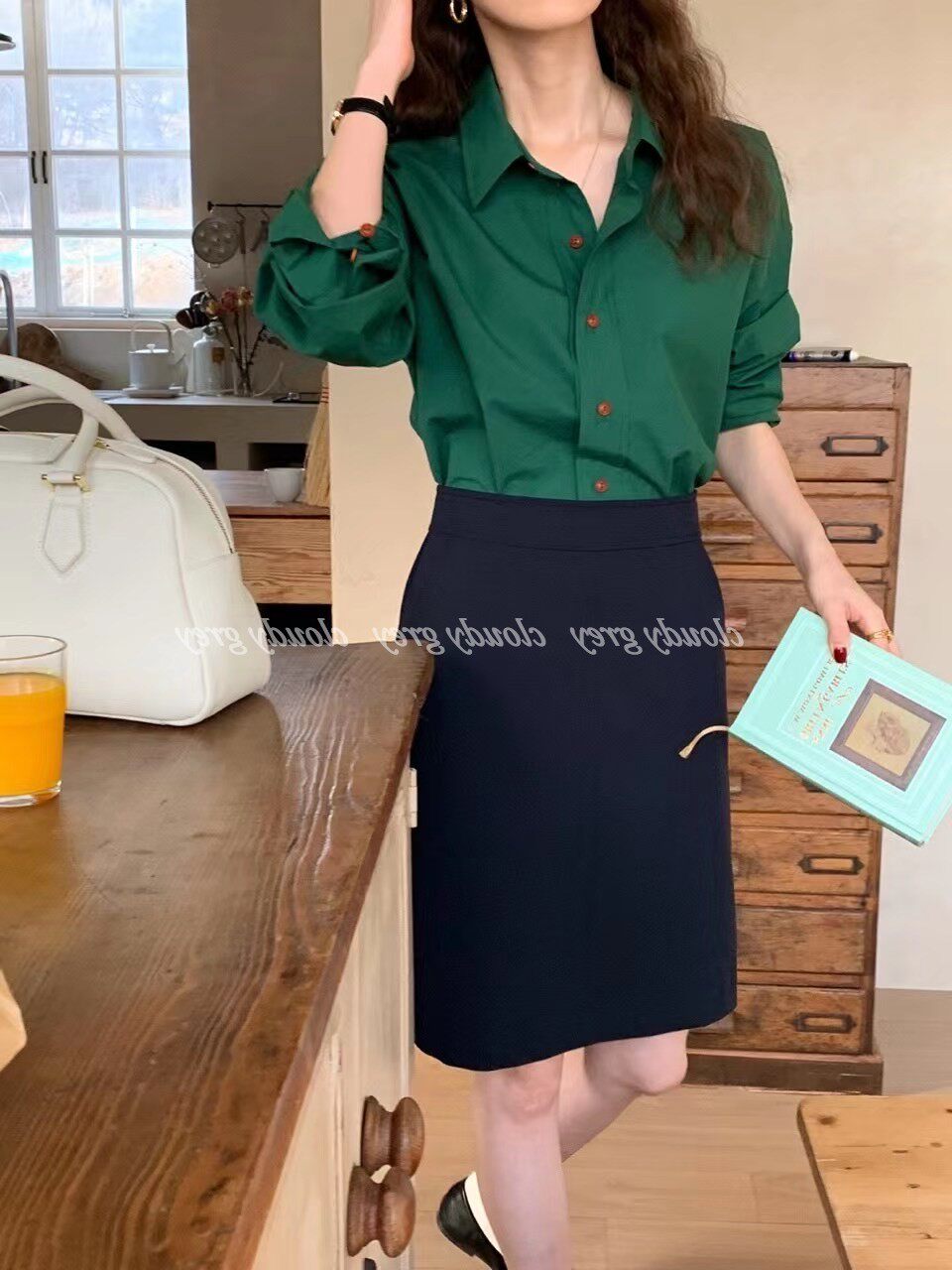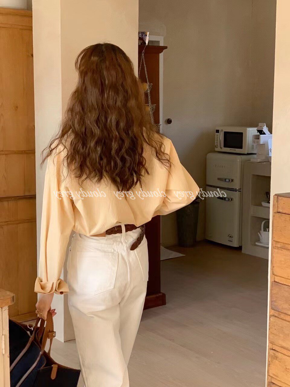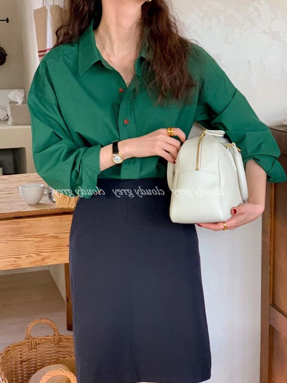韓版高級感別致克萊因藍長袖襯衫女2023春秋新款純棉寬鬆襯衫上衣