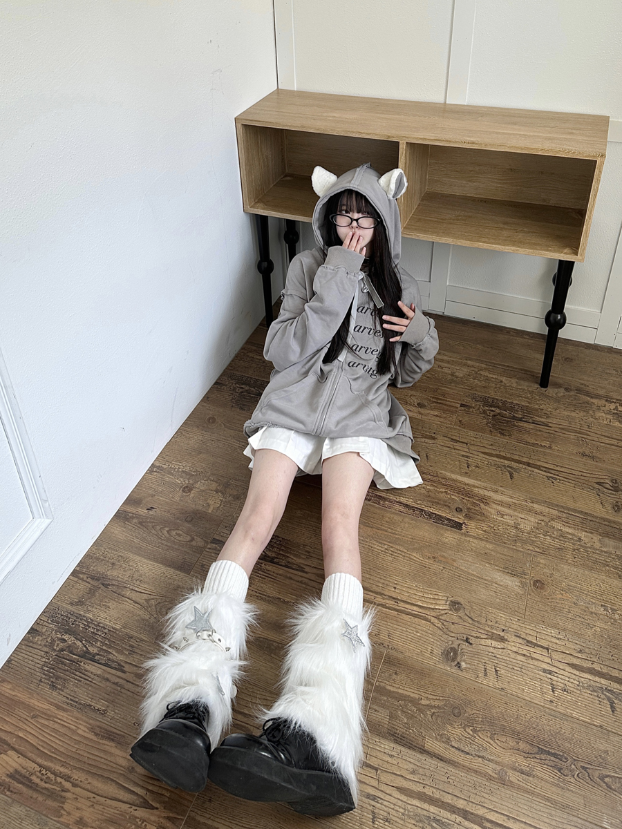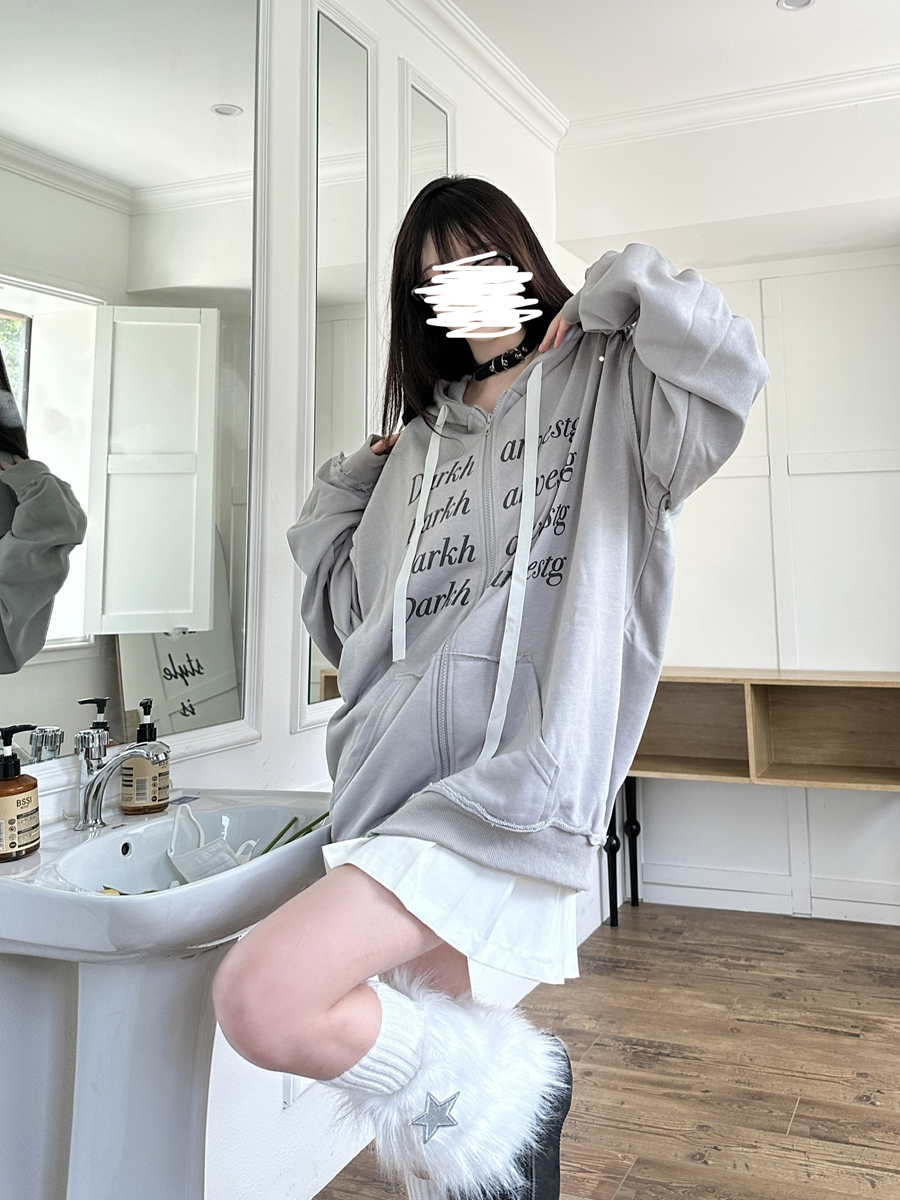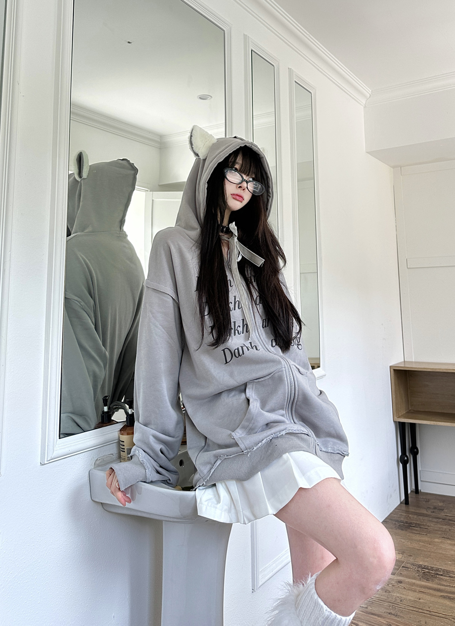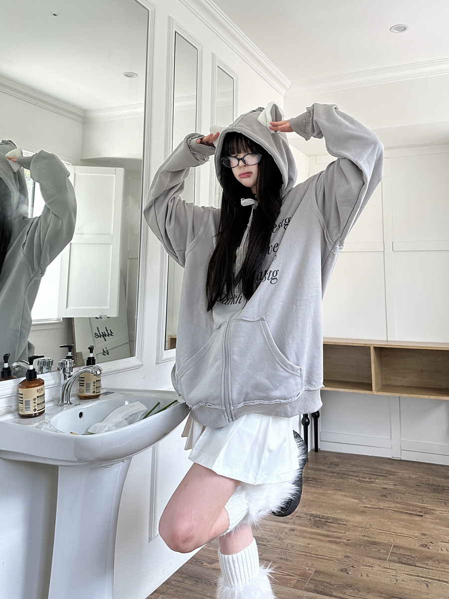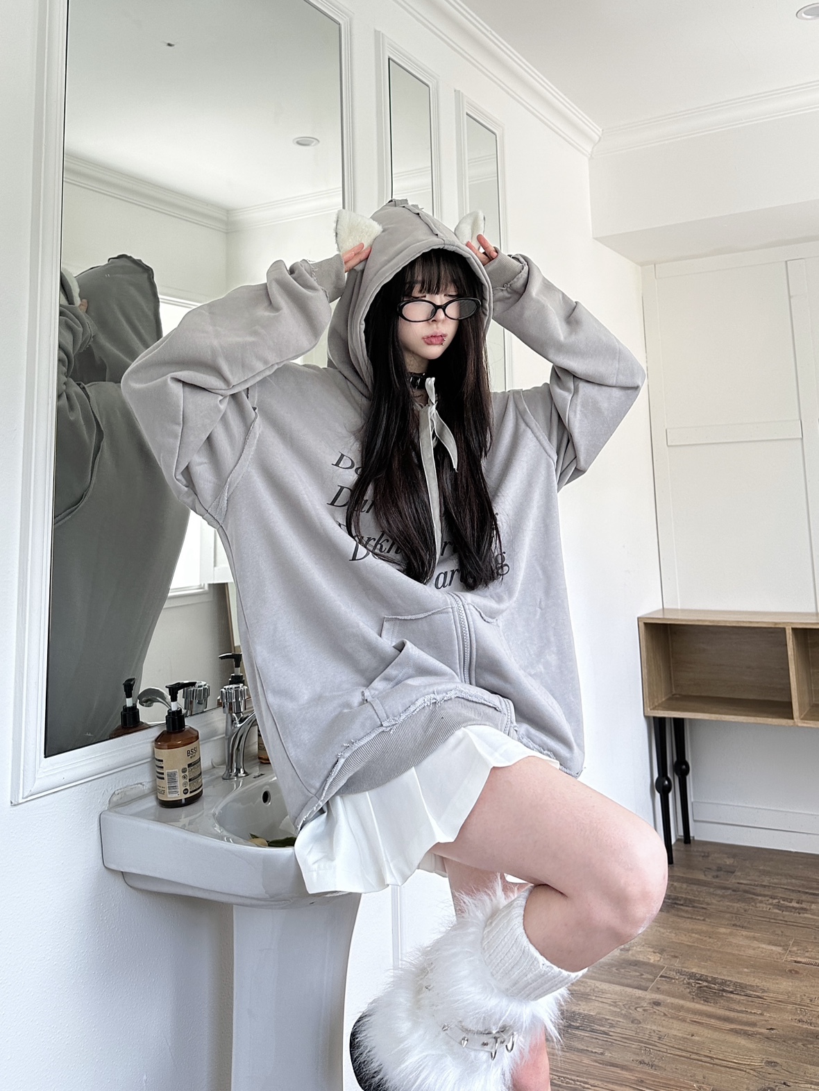 咖哩人秋新款貓耳連帽外套寬鬆男女長袖粉色印花字母寬鬆衛衣ins