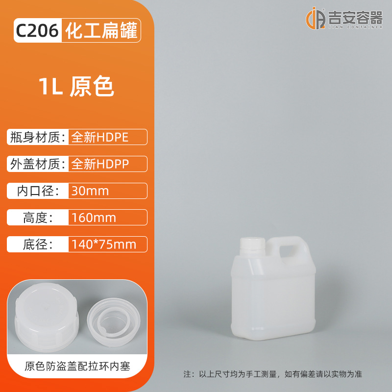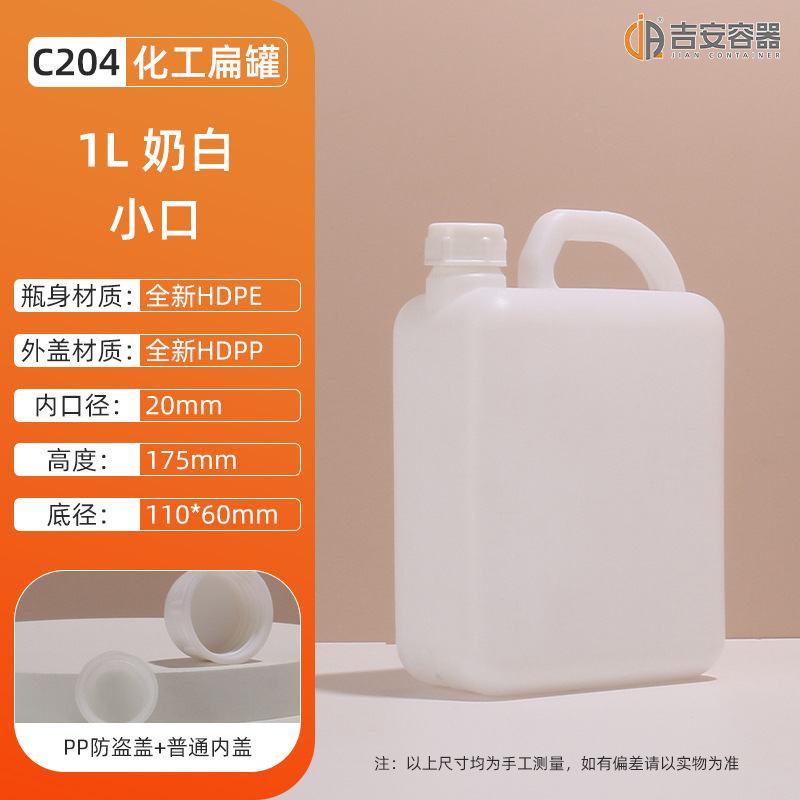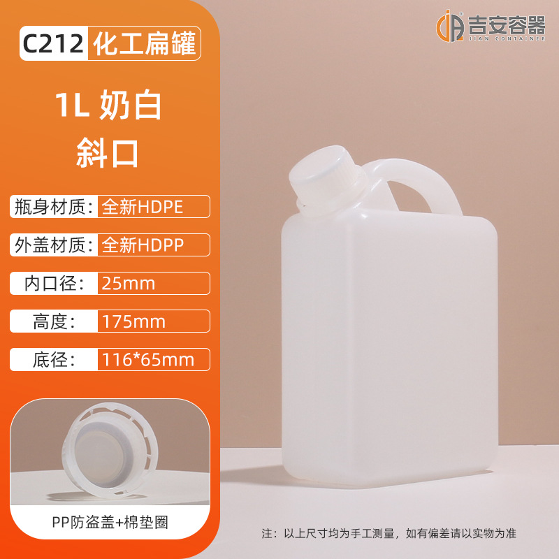 现货1L化工塑料瓶壶HDPE方形扁罐84消毒液水酒精试剂桶提手肥料壶