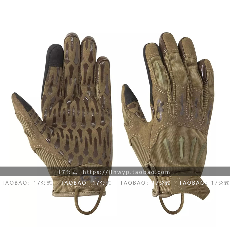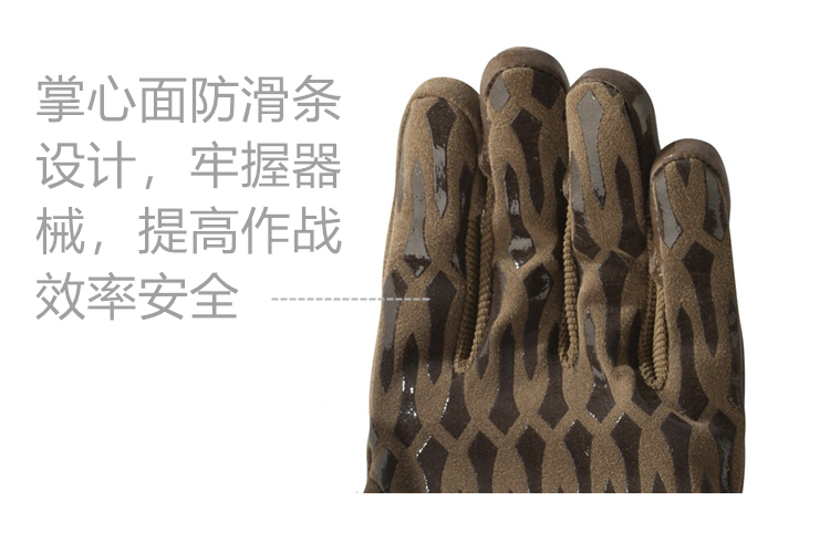 IronSight可定义为一款轻量化战术手套,适合在炎热环境下使用。手套由弹性尼龙面料与合成皮革拼接而成,其手掌部分正是采用了合成皮革面料,质地柔软,摩擦力与耐用性兼顾。这部分的最大亮点在于,为进一步提升摩擦力,此处配有若干长条状橡胶防滑涂层,均匀的分布在手掌表层位置。士兵在操控枪械、更换弹匣或使用夜视装备时,双手的抓握感很强,达到满意的防滑效果。IronSight腕部末端配有魔术贴搭扣,便于开合及调整舒适度。当士兵不需佩戴手套时,可通过手掌内侧的挂绳随意将其固定在服装或装备上。IronSight有黑色及狼棕色两个版本可选,分为S、M、L、XL、XXL5种尺码。以L尺码为例,其净重为66g。S掌围:长约18-19cm长度(中指-手腕):约17-18cmM掌围:长约20-22cm长度(中指-手腕):约19-20cmL掌围:长约23-24cm长度(中指-手腕):约22-23cmXL掌围:长约24-25cm长度(中指-手腕):约23-24cm