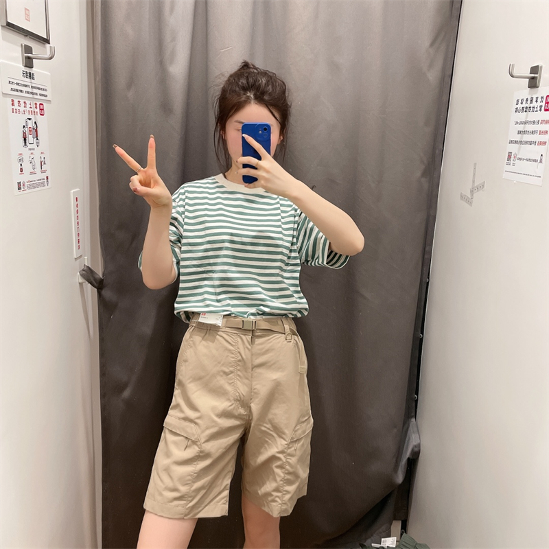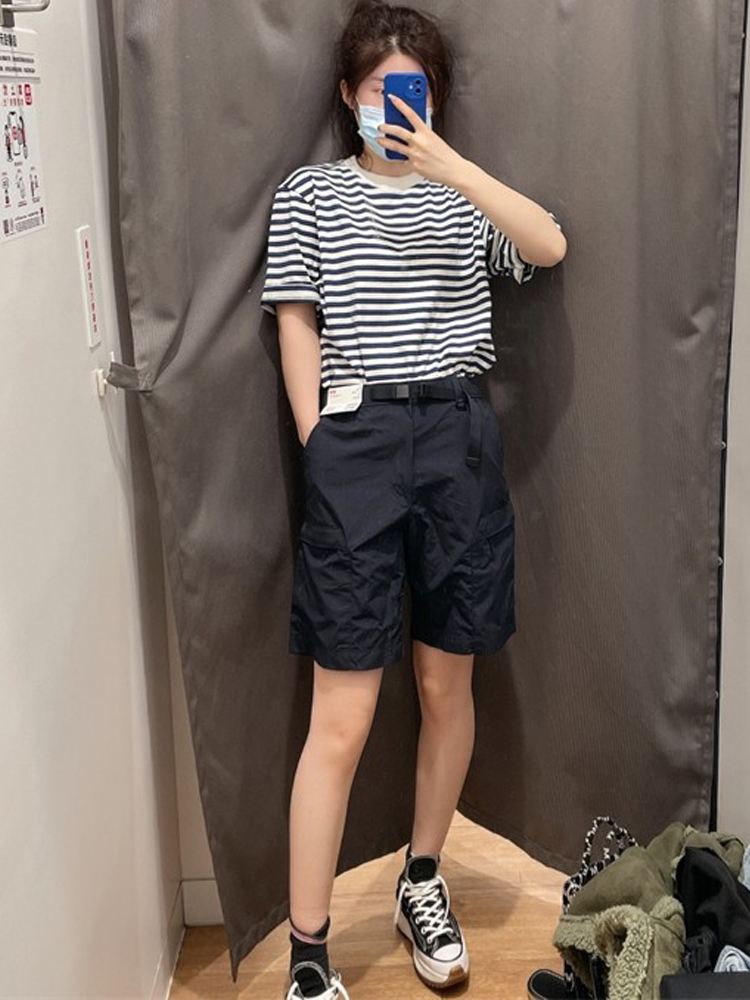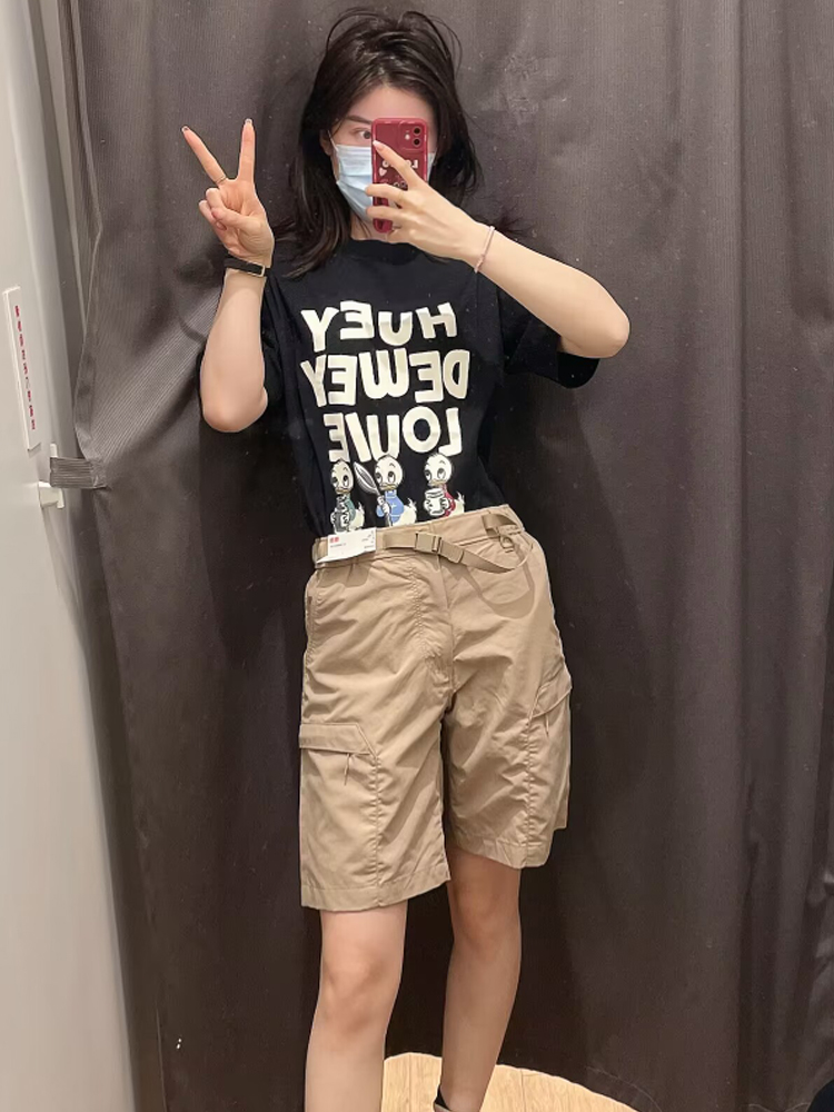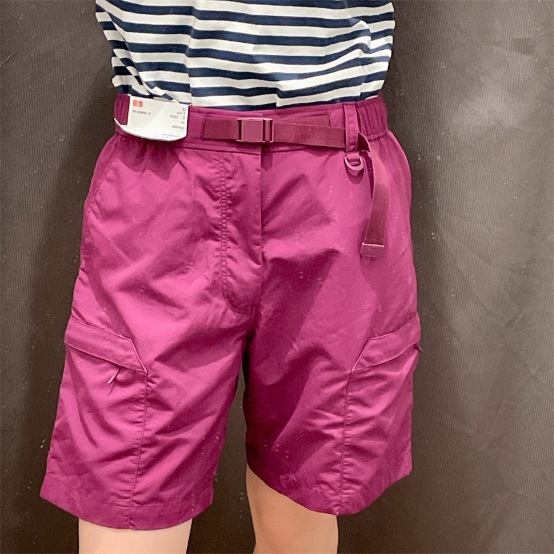 U原單男裝/女裝紫色卡扣休閒工作服短褲戶外露營五分褲防潑水455505