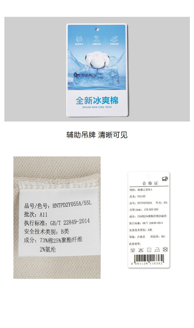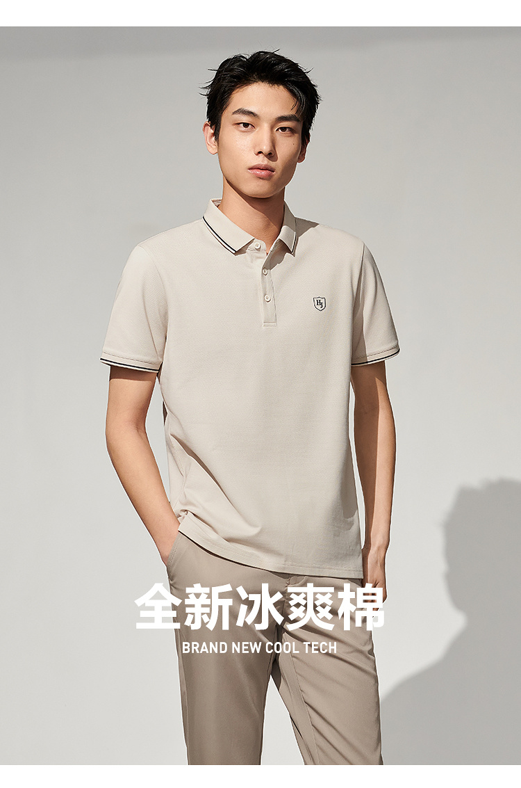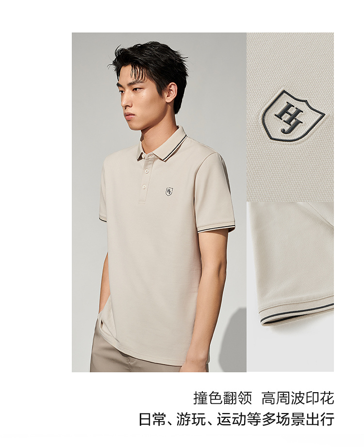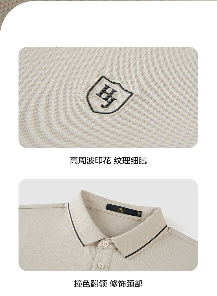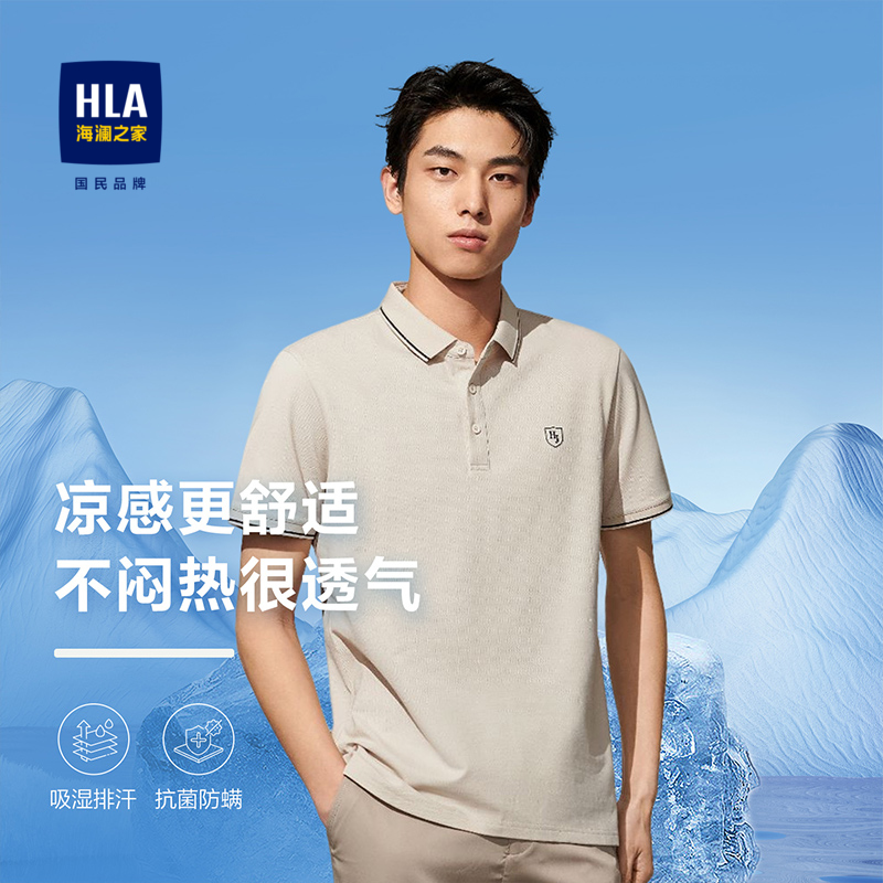 HLA海瀾之家冰爽棉涼感POLO衫23春夏新款撞色翻領凹凸印花短袖男